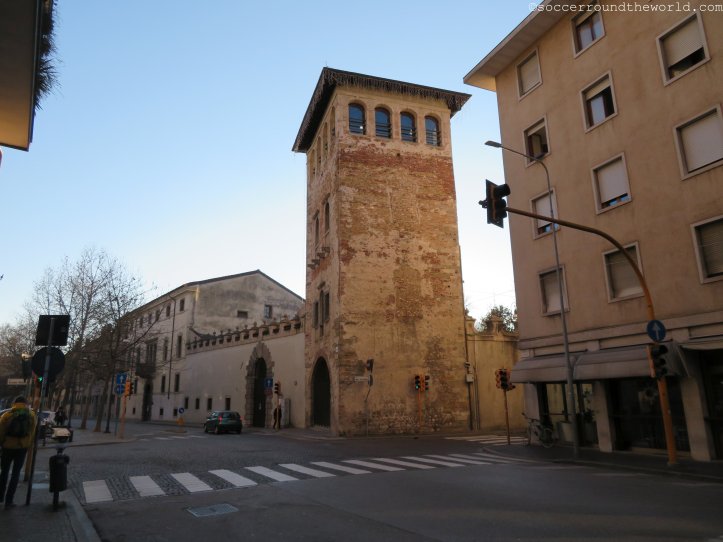 Lediglich rund um das frühere Stadio Friuli ist an Tagen wie diesen überdurchschnittlich viel los, wenn Udinese Calcio eines seiner Heimspiele austrägt. Nachdem der Bahnhof leider über keine Gepäckaufbewahrung verfügt, haben wir uns auf gut Glück mit dem Taxi hierher bringen lassen, um vielleicht doch noch eine Lösung für die in Stadien meistens weniger gern gesehenen Rucksäcke zu finden. Genau hier kommen die alpinen Eigenschaften zum Tragen: Mehrere Ordner nehmen sich sofort unser an, finden im Nu eine Verstaumöglichkeit und fragen interessiert über den Grund für unseren Besuch.