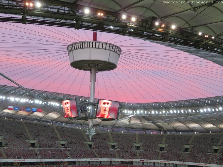 Die Warschauer Innenstadt bietet früh schon einen ersten Einblick auf die abendliche Spielstätte am anderen Ufer der Weichsel. Vom Altstadtmarkt mit dem Königsschloss und zahlreichen historischen Gebäuden ist das Nationalstadion Polens mit seinen über 58.000 Plätzen gut und in voller Pracht zu sehen. Eine ähnliche Dominanz im Stadtbild hat vielleicht nur noch der auf Anordnung Stalins errichtete Kultur- und Wissenschaftspalast direkt am zentralen Hauptbahnhof.
