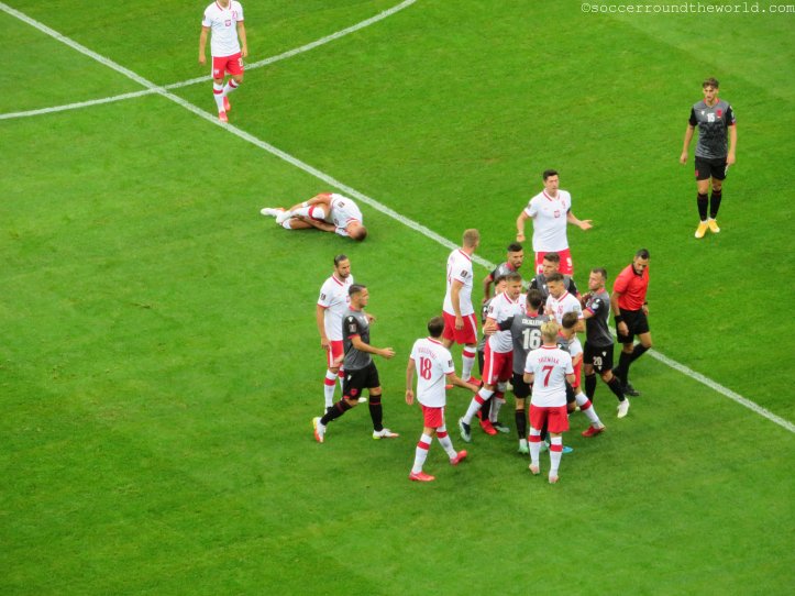 Die Ausgangsposition für das polnische Nationalteam ist eigentlich ziemlich klar: Verlieren verboten. Vor dem Spiel rangiert man hinter Ungarn und Albanien nur auf Platz vier der WM-Qualifikationsgruppe. Die frühe Führung der Gastgeber lässt auch durchaus darauf hoffen, dass ihnen an einem attraktiven Spiel an diesem Abend gelegen ist. Doch weit gefehlt. Polens Auftritt wirkt über die gesamten 90 Minuten völlig erratisch und führt in der ersten Halbzeit zu einem Erstarken Albaniens, das so auch zum völlig verdienten zwischenzeitlichen Ausgleich kommt. Erst eine glückliche Fügung bei einem letzten Angriff in der ersten Halbzeit bringt die Hausherren doch wieder mit 2:1 in Front. Gegen dann bei Weitem nicht mehr so aggressiv agierende Albaner reichen den Polen zwei gut zu Ende geführte Konterläufe, um doch noch ein auf dem Papier sehr deutliches Ergebnis herzustellen.