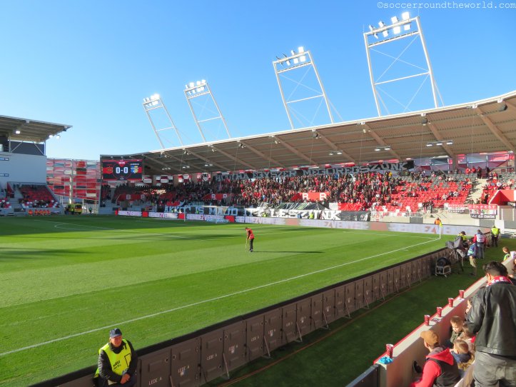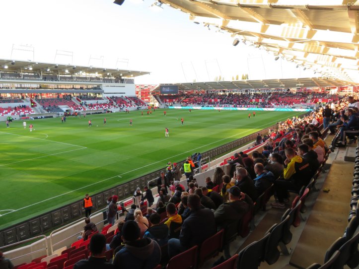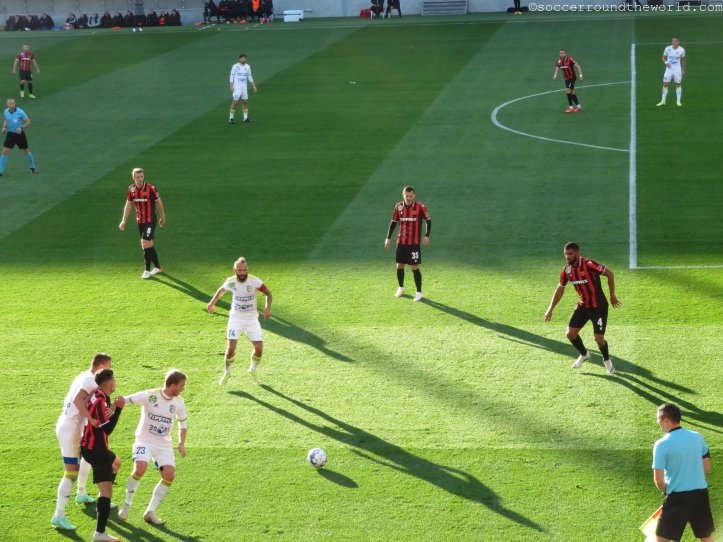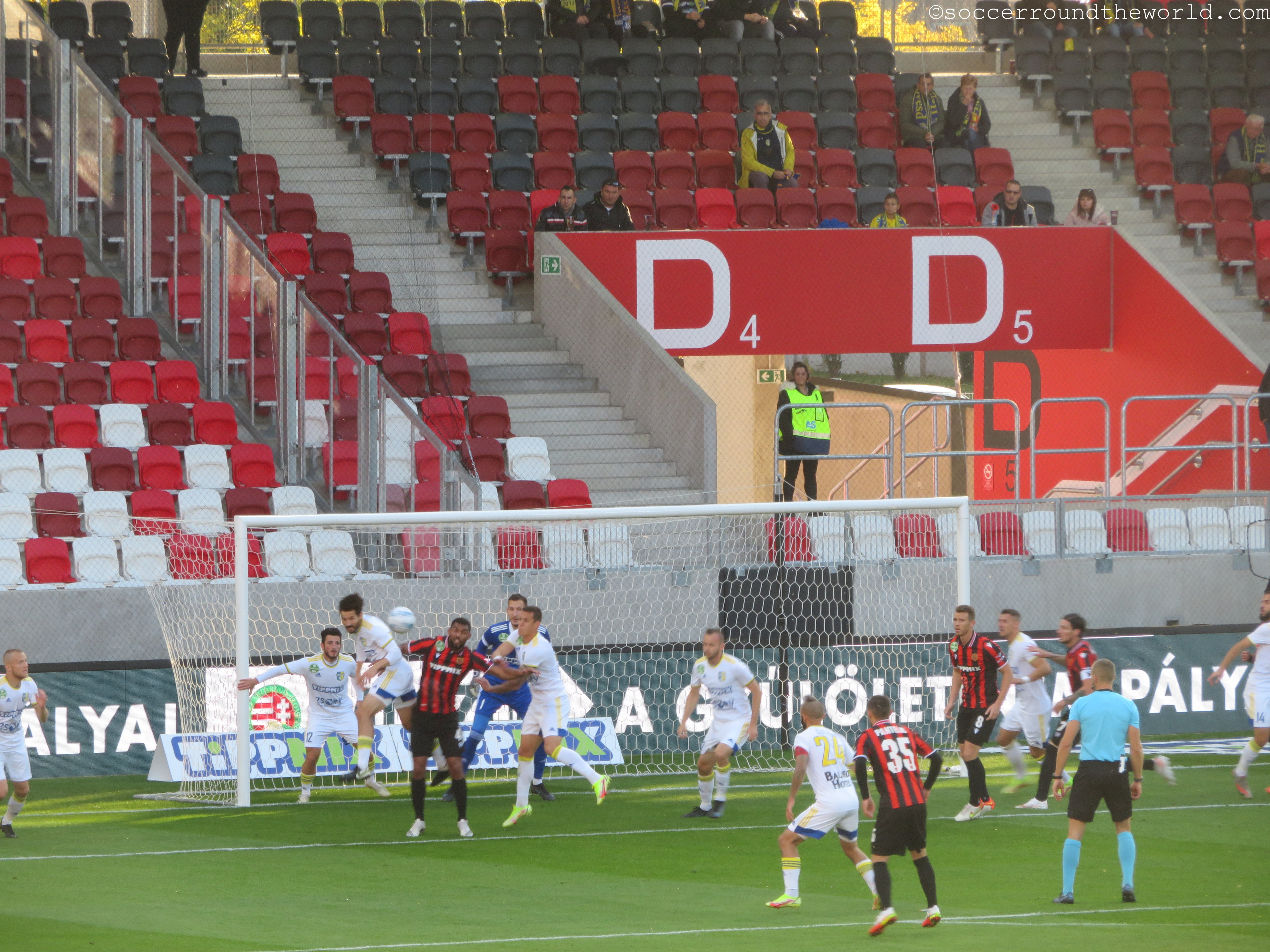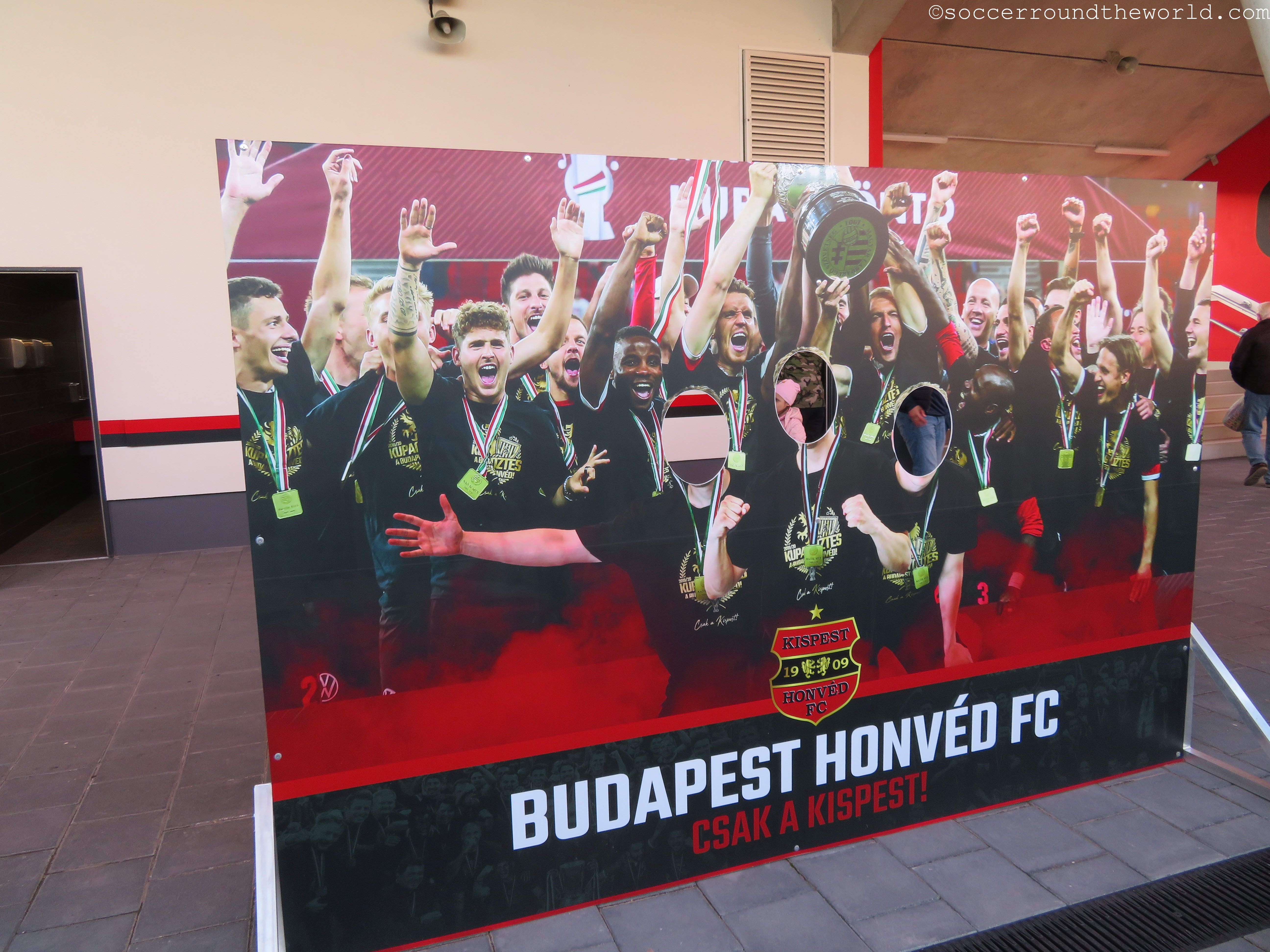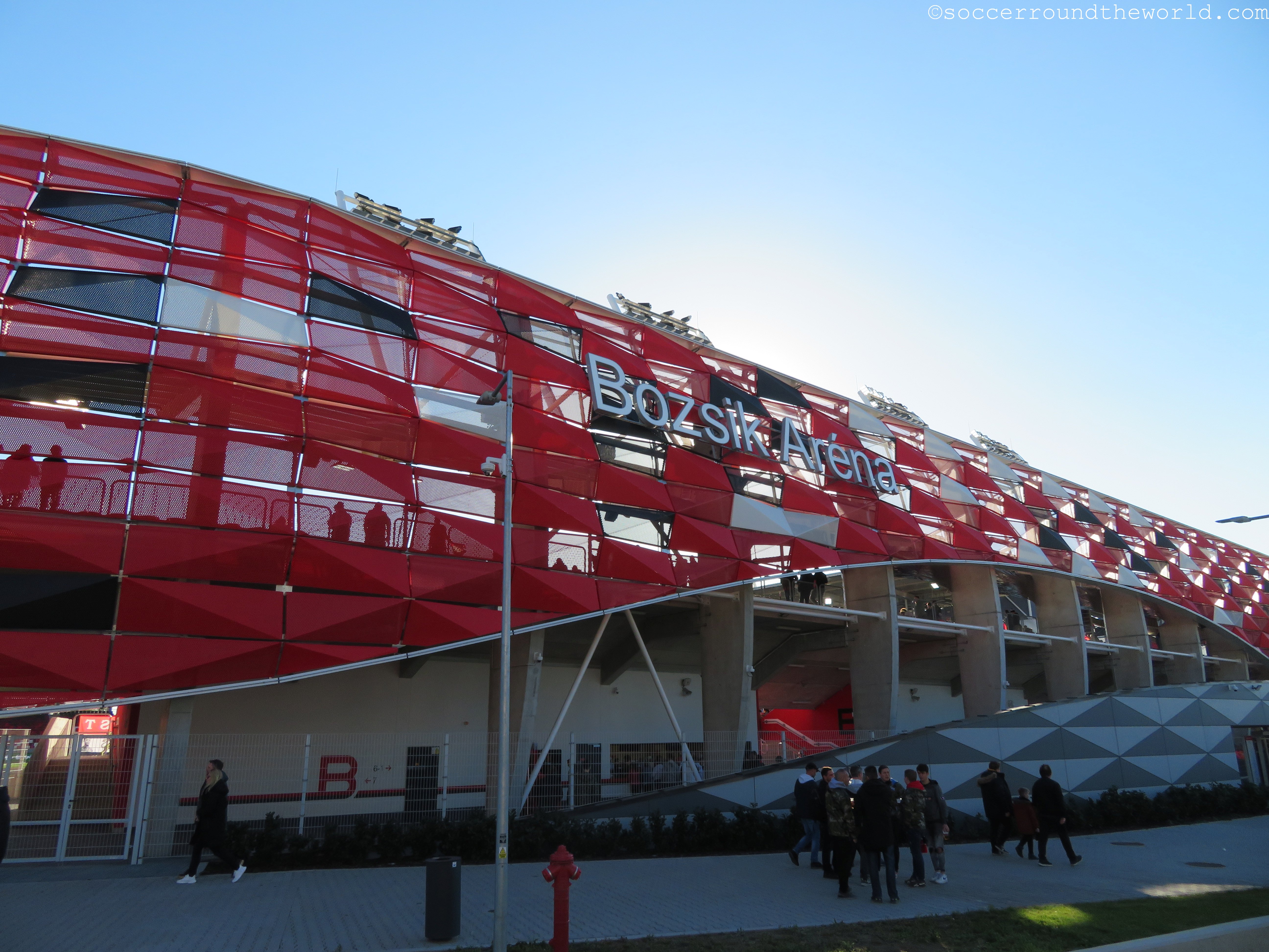 Seit meinem letzten Besuch vor ziemlich exakt zehn Jahren hat sich zwar in der Umgebung des Stadions wenig getan, die Heimstätte von Honved wurde dafür aber um so radikaler verändert. Seit März 2021 wird hier die völlig neu errichtete Bozsik Arena bespielt. Und wie sooft in Ungarn ließen sich die Bauherren bei der Errichtung nicht lumpen. Trotz einer Kapazität von lediglich 8.200 Zuschauern – die für den Ligabetrieb freilich völlig ausreichend ist – besticht das Stadion durchaus mit seinem Außenauftritt und bietet dem ehemaligen Armeeklub eine würdige Heimat. Beim Umbau wurde dabei sogar die ursprüngliche Gestaltung mit markanter Haupttribüne berücksichtigt und in den Neubau integriert.