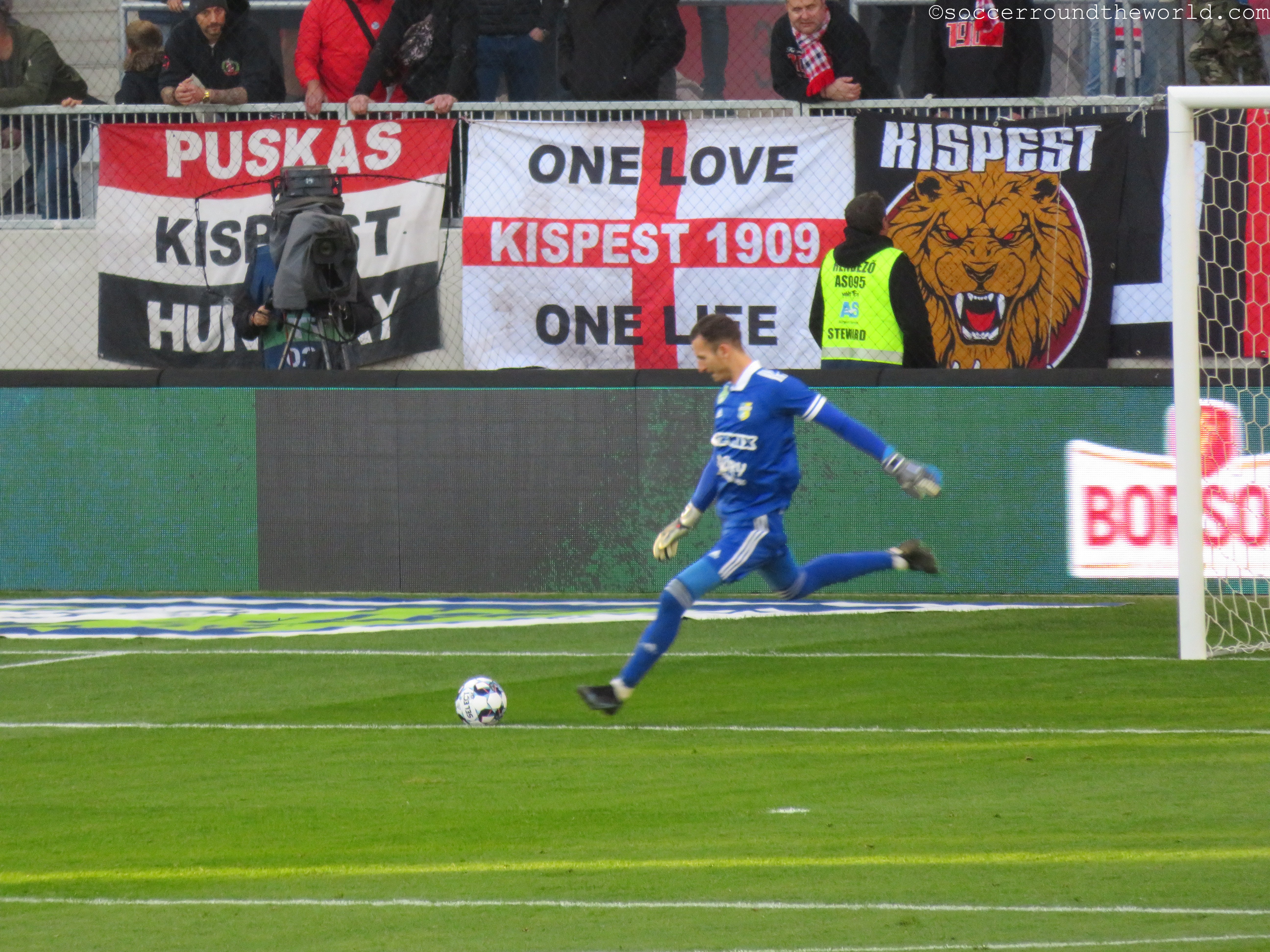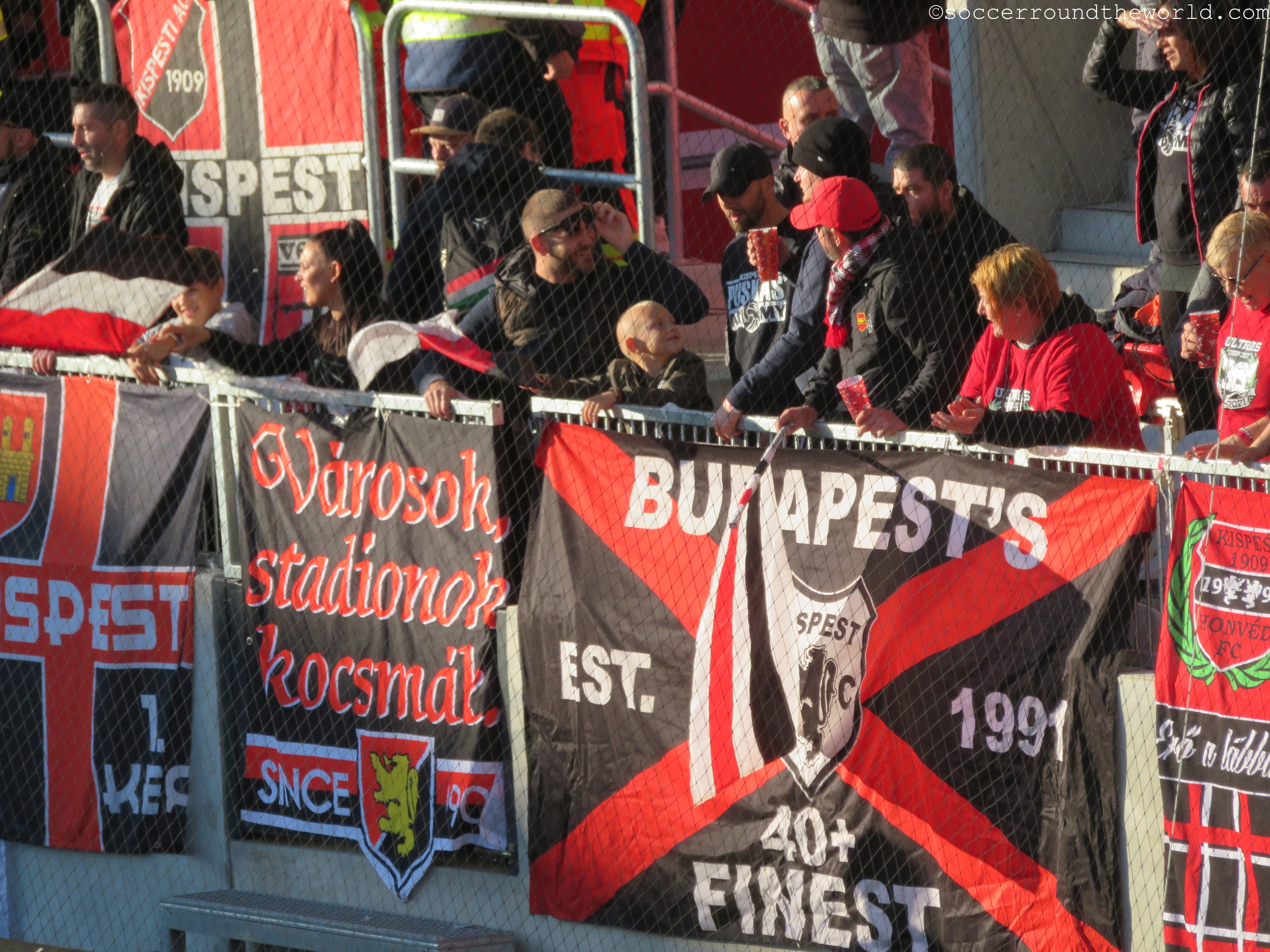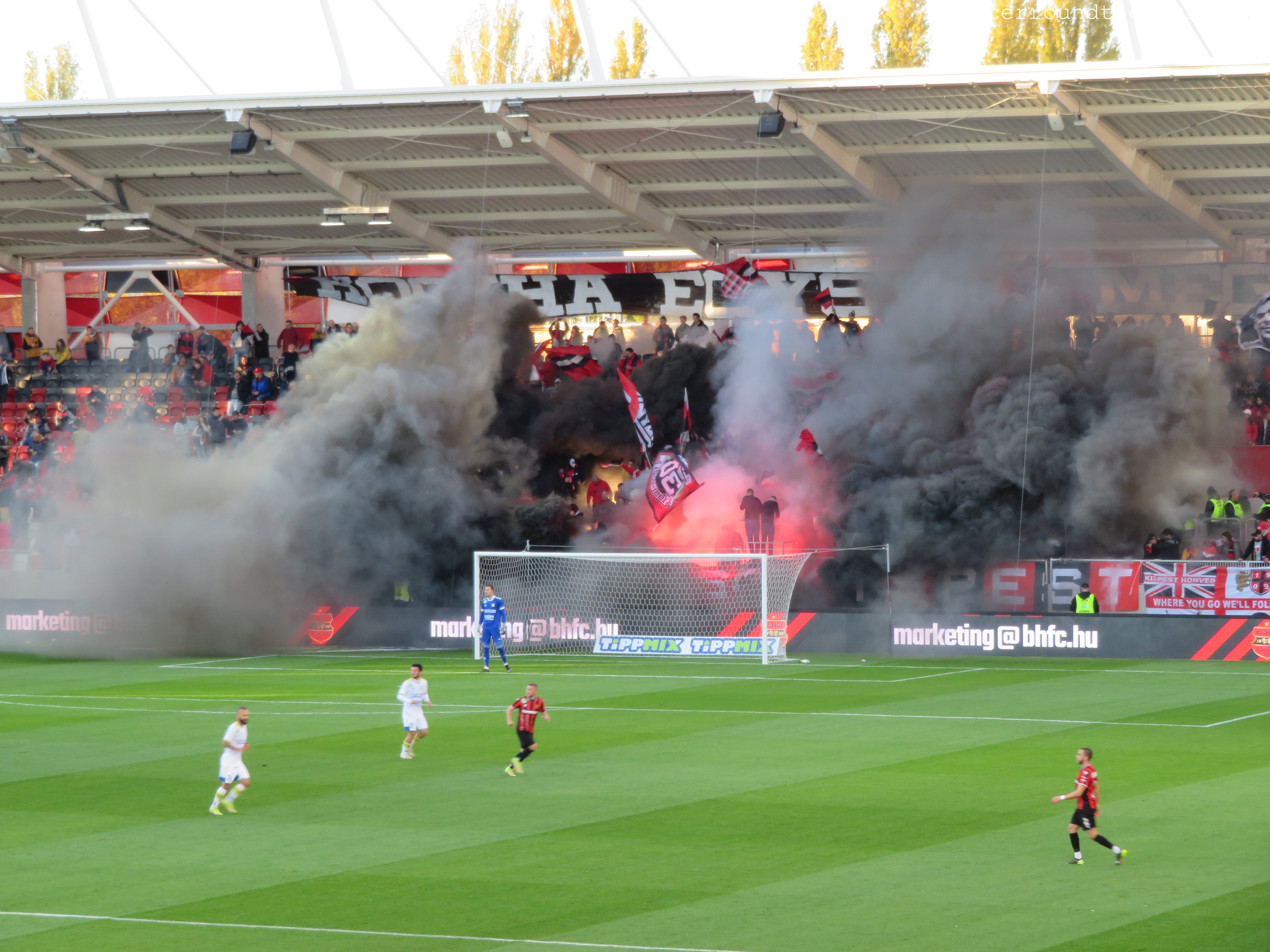 Die Heimfans haben heute das 30-jährige Jubiläum ihrer Ultras-Gruppierung zu feiern, und zelebrieren dies auch mit eigener Choreographie sowie reichlich Rauch und Pyrotechnik. Auf dem Rasen entwickelt sich derweil ein Spiel, das durchaus das Prädikat verrückt verdient: Zwar können die Gäste aus dem nordungarischen Mezökövesd bereits in der 8. Minute in Führung gehen, schwächen sich nur neun Minuten danach allerdings selbst mit einer Roten Karte. Nach zehn Minuten Schockstarre folgt Sturm und Drang von Honved, den die Rot-Schwarzen aber wie durch ein Wunder nicht in Tore ummünzen können. Das 1:0 zur Pause ist somit höchst schmeichelhaft für die Gäste, allerdings ob der erschreckenden Unfähigkeit von Honved auch nicht völlig unverdient.