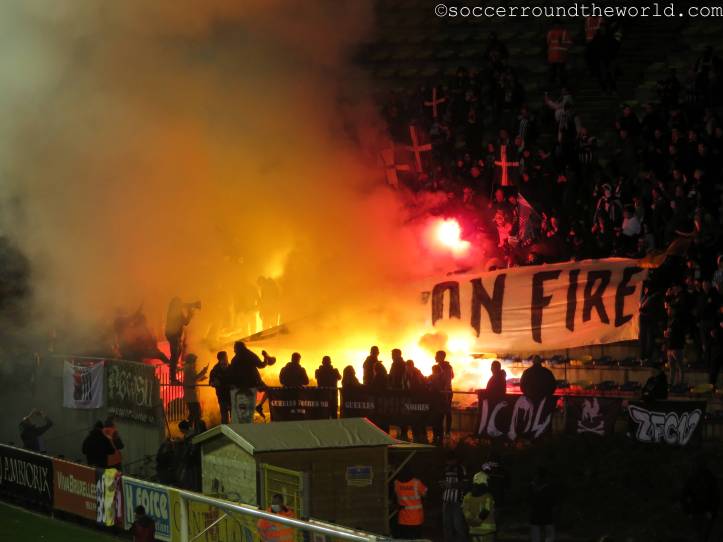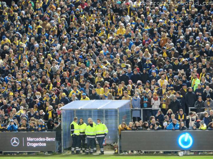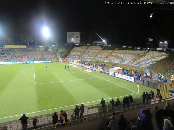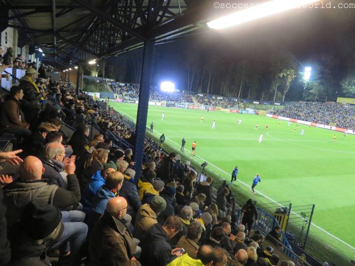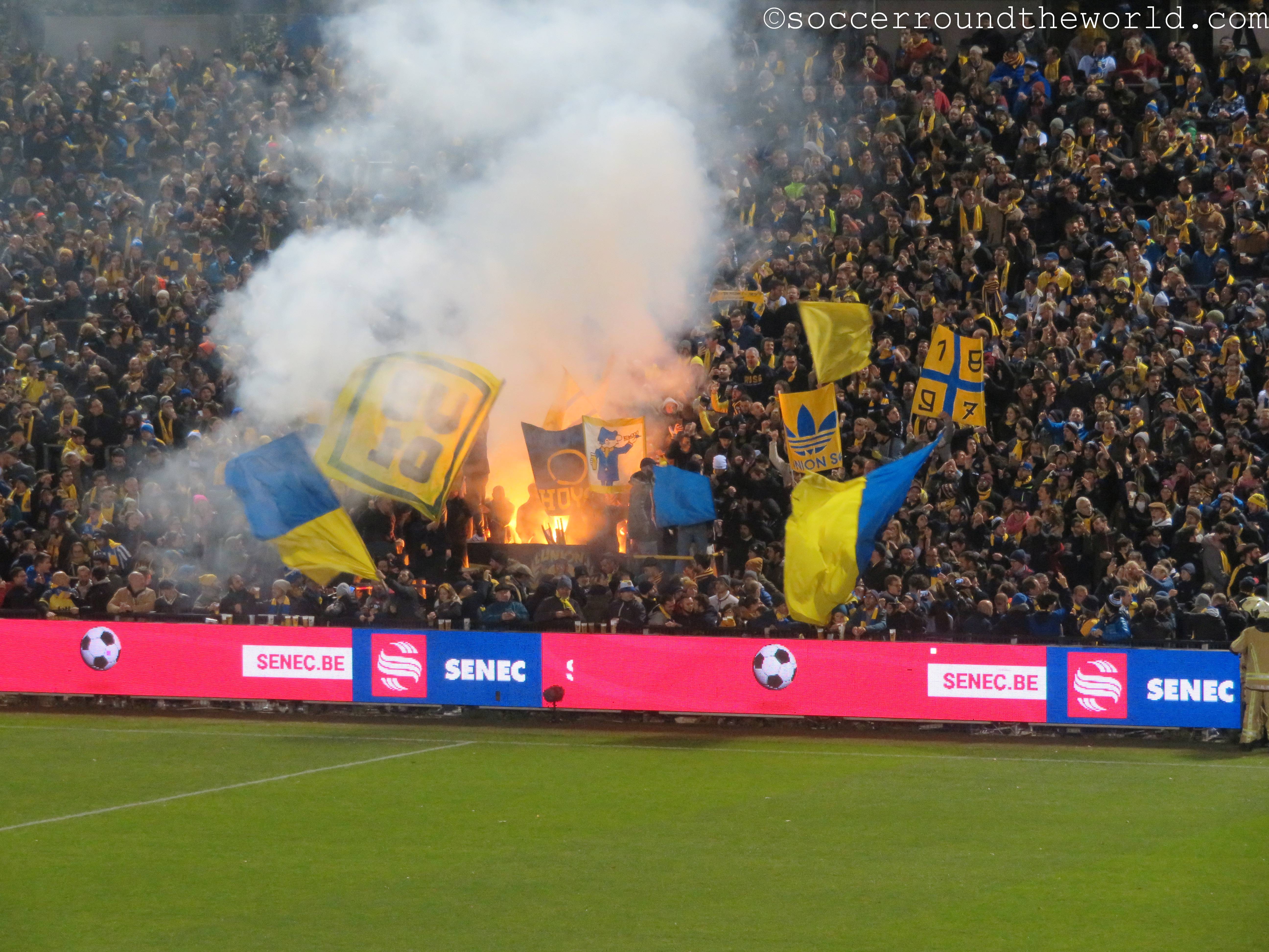 Dementsprechend gut ist auch die Stimmung auf den Rängen. Abgesehen von einigen Auseinandersetzungen mit den Charleroi-Fans wird das gesamte Spiel über durchgesungen und gefeiert. Hauptantreiber ist hier dabei die gewaltige Gegengerade, die direkt in einen Hügel hineingebaut wurde. Der Funke springt aber auch immer wieder auf die Haupttribüne über, die ebenso mit singfreudigen Fans besetzt ist. Mit etwas Glück haben wir heute jedenfalls eine der zahlreichen Zwischenfeiern des künftigen belgischen Meisters gesehen.
