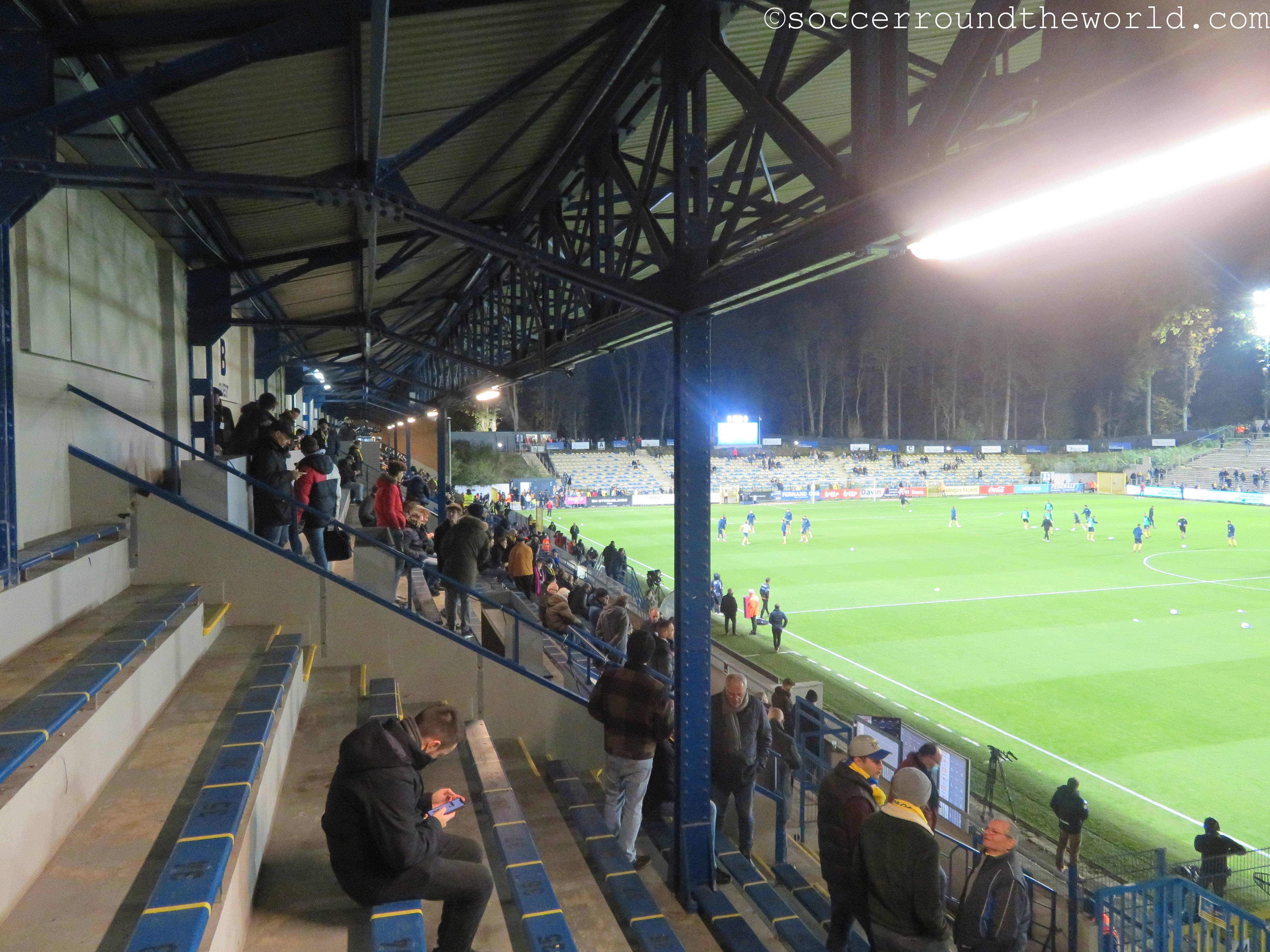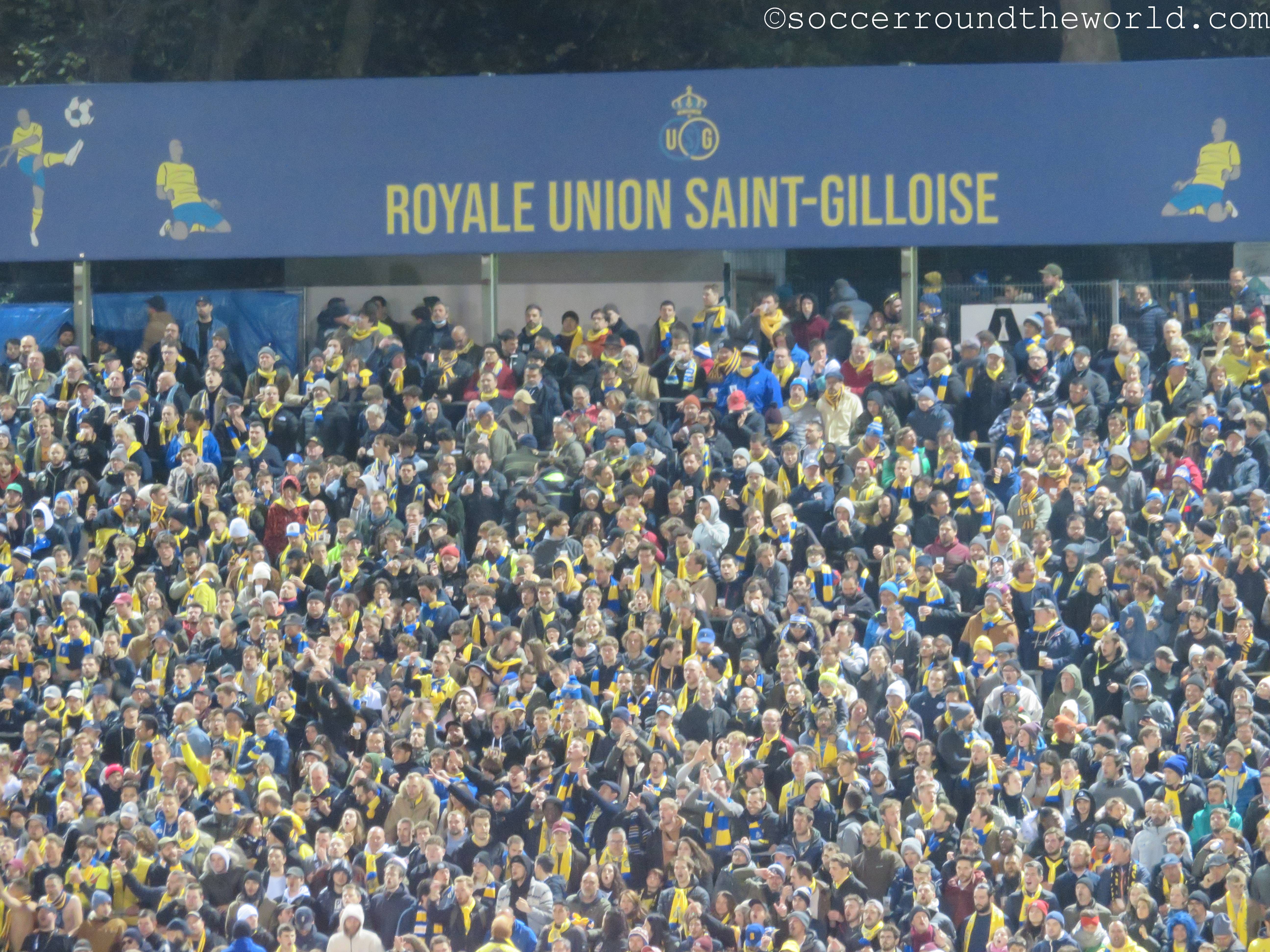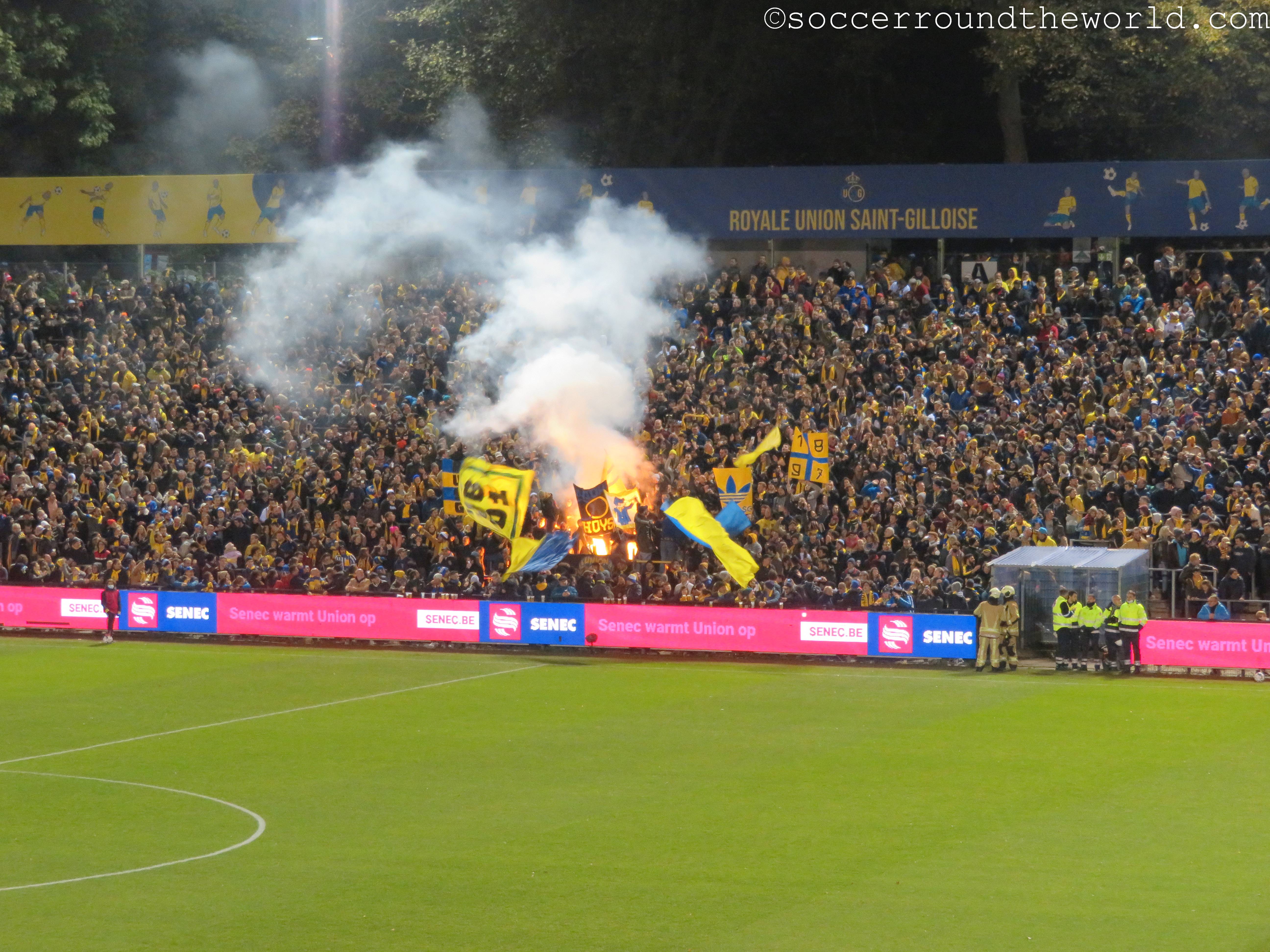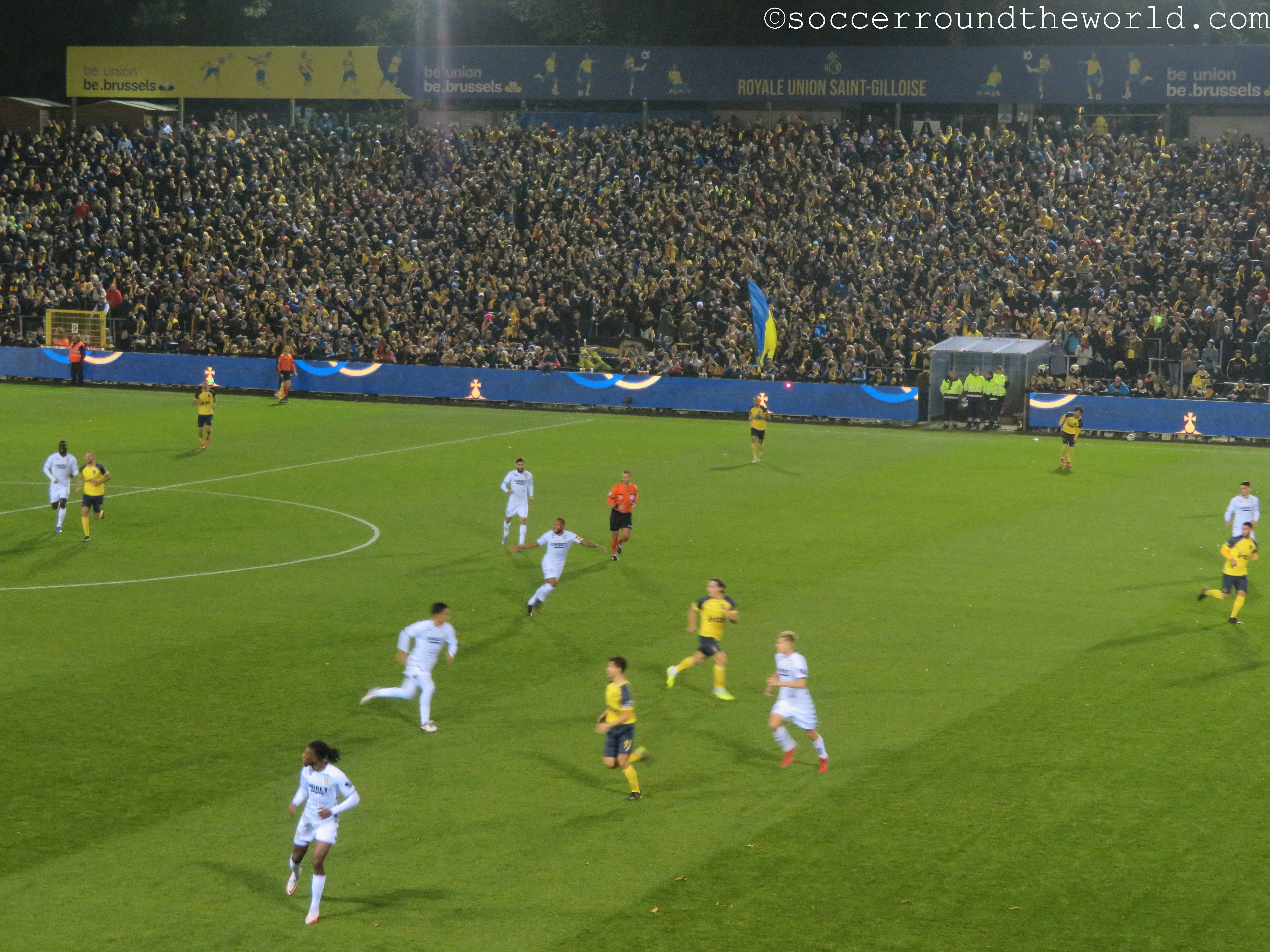 Union ist für Brüssel in etwa ein „Derby of love“, aber in einem Verein vereint, also der Sportclub in den Farben der Vienna. Seit meinem letzten Besuch vor knapp fünf Jahren, bei dem das Spiel allerdings im für den Verein viel zu großen Nationalstadion ausgetragen wurde, war die Heimstätte von St. Gilloise ganz oben auf meiner Wunschliste. Mittlerweile wurde das Stade Joseph Marien runderneuert und kann bis zu 8.000 Zuschauer beherbergen. Heute ist es also bis auf den letzten Platz ausverkauft.