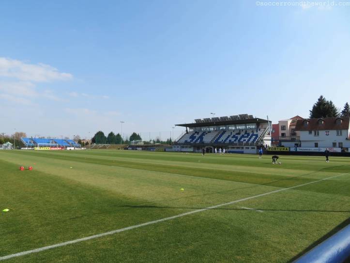 Der SK Lisen wurde 1924 als sozialistischer Sportklub gegründet und spielt heuer um den Aufstieg in die höchste Spielklasse mit. Im momentanen Zustand ist das Stadion dafür aber wohl nicht wirklich geeignet, die Ausbaumöglichkeiten halten sich auch eher in Grenzen. Für die zweite Liga ist das aus einer steilen Haupttribüne, einer Stahlrohrtribüne und behelfsmäßigen Sitzplätzen hinter einem der Tore zusammengestückelte Gesamtkunstwerk aber allemal ausreichend.