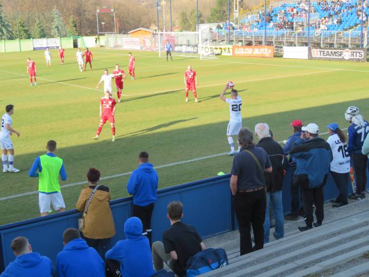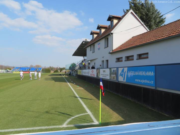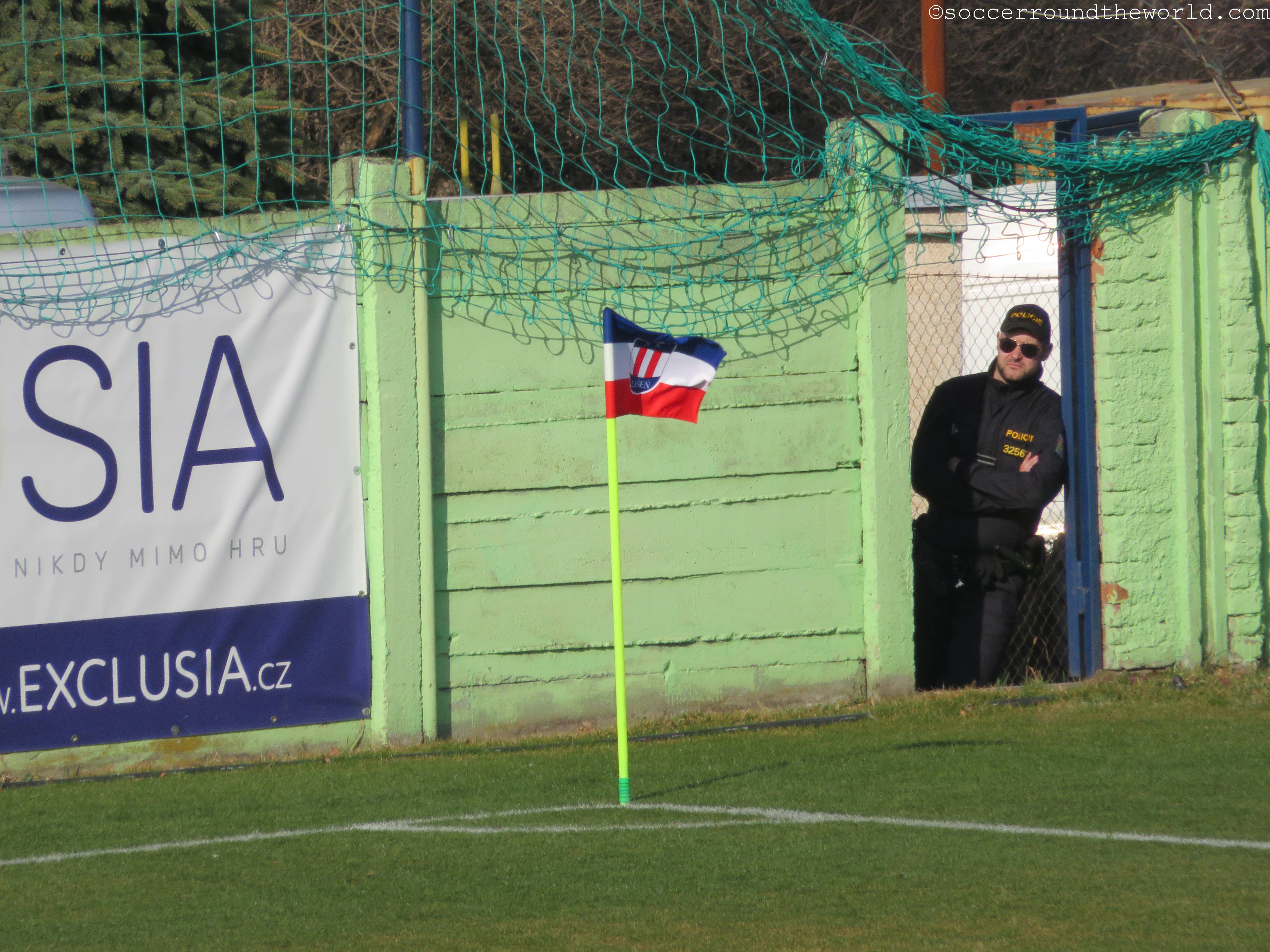 Etwas zu zuversichtlich hatten wir uns auf dem Weg von der Straßenbahnstation zum Stadion einen Bankomaten erwartet: Es gibt schlicht keinen. Mit den letzten Kronen-Reserven von den vorherigen Reisen ist es dennoch möglich, zwei Karten zu erstehen. In Tschechien ist Fußball halt weiterhin ein sehr billiges Vergnügen.