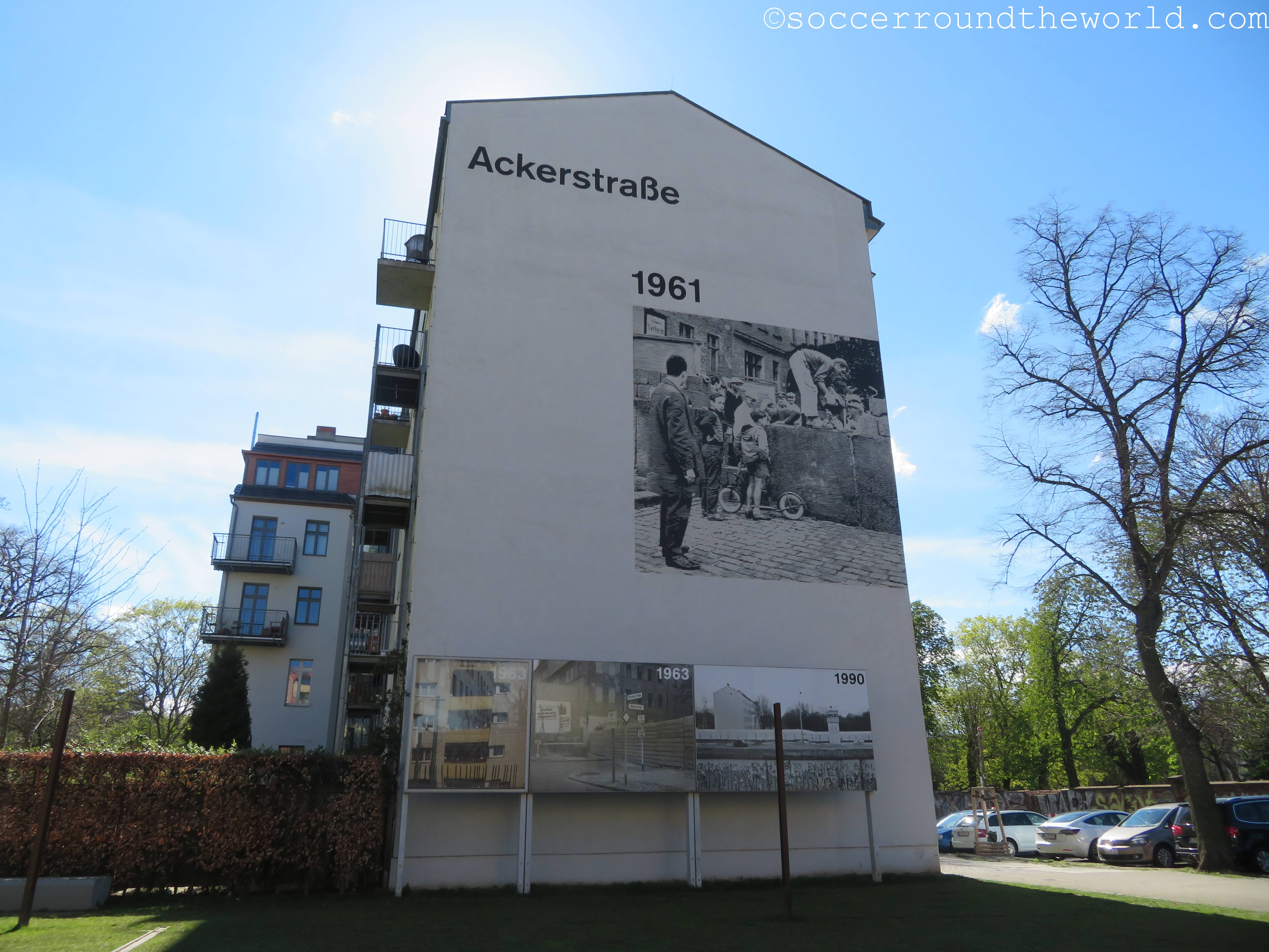 Im angrenzenden Mauerpark, der damals ebenfalls Grenzstreifen zwischen Ost- und Westberlin war, liegt der Friedrich-Ludwig-Jahn-Sportpark. Hier feierte der Stasi-Klub und DDR-Rekordmeister BFC Dynamo Berlin neun seiner zehn Meistertitel und trug auch die meisten seiner Europacupspiele aus. Heute fasst das Stadion knapp 20.000 Zuschauer, ist aber lediglich für rund 11.000 zugelassen.