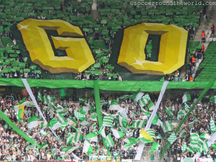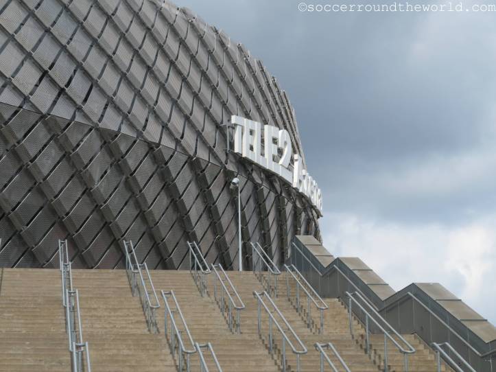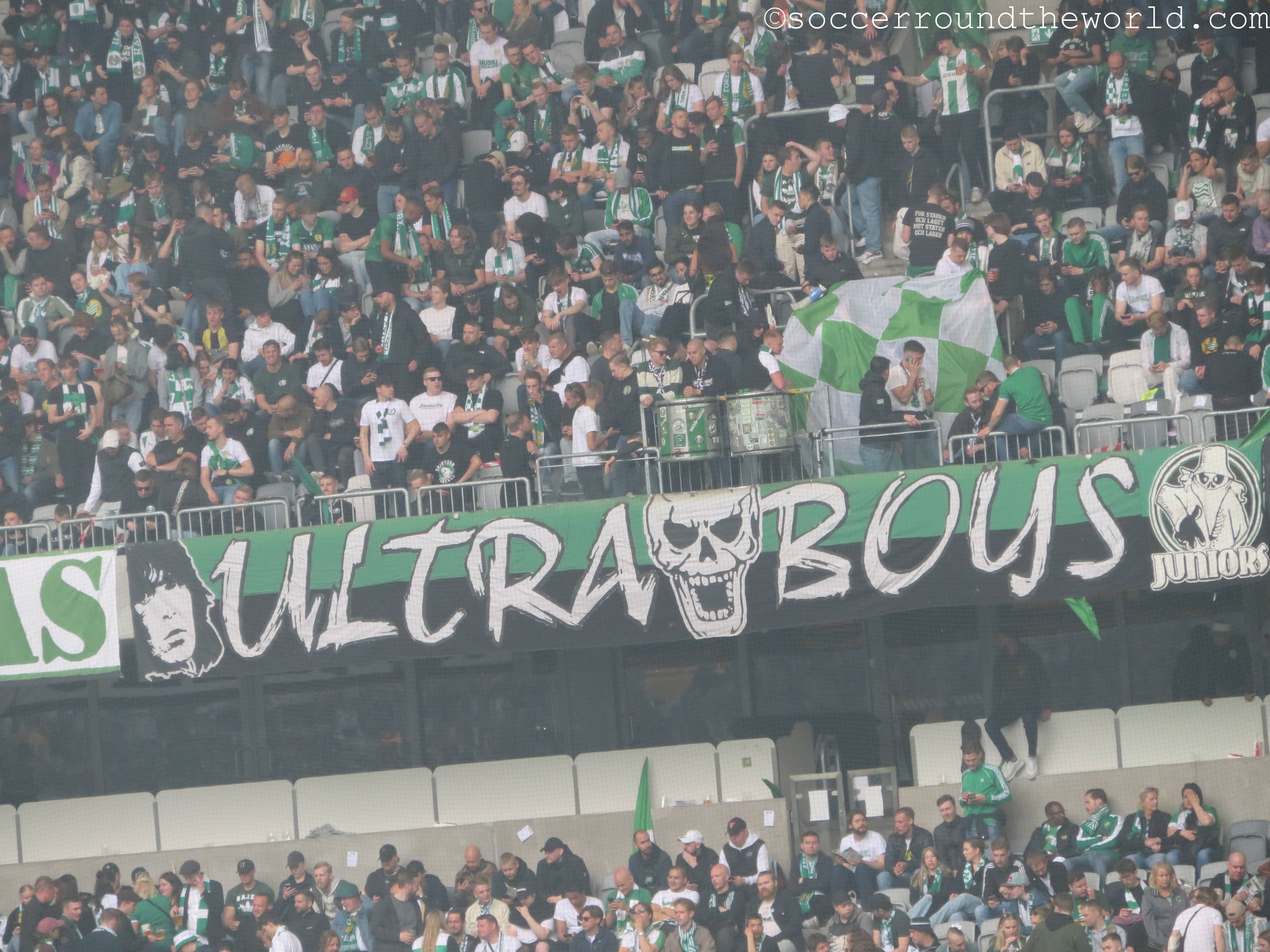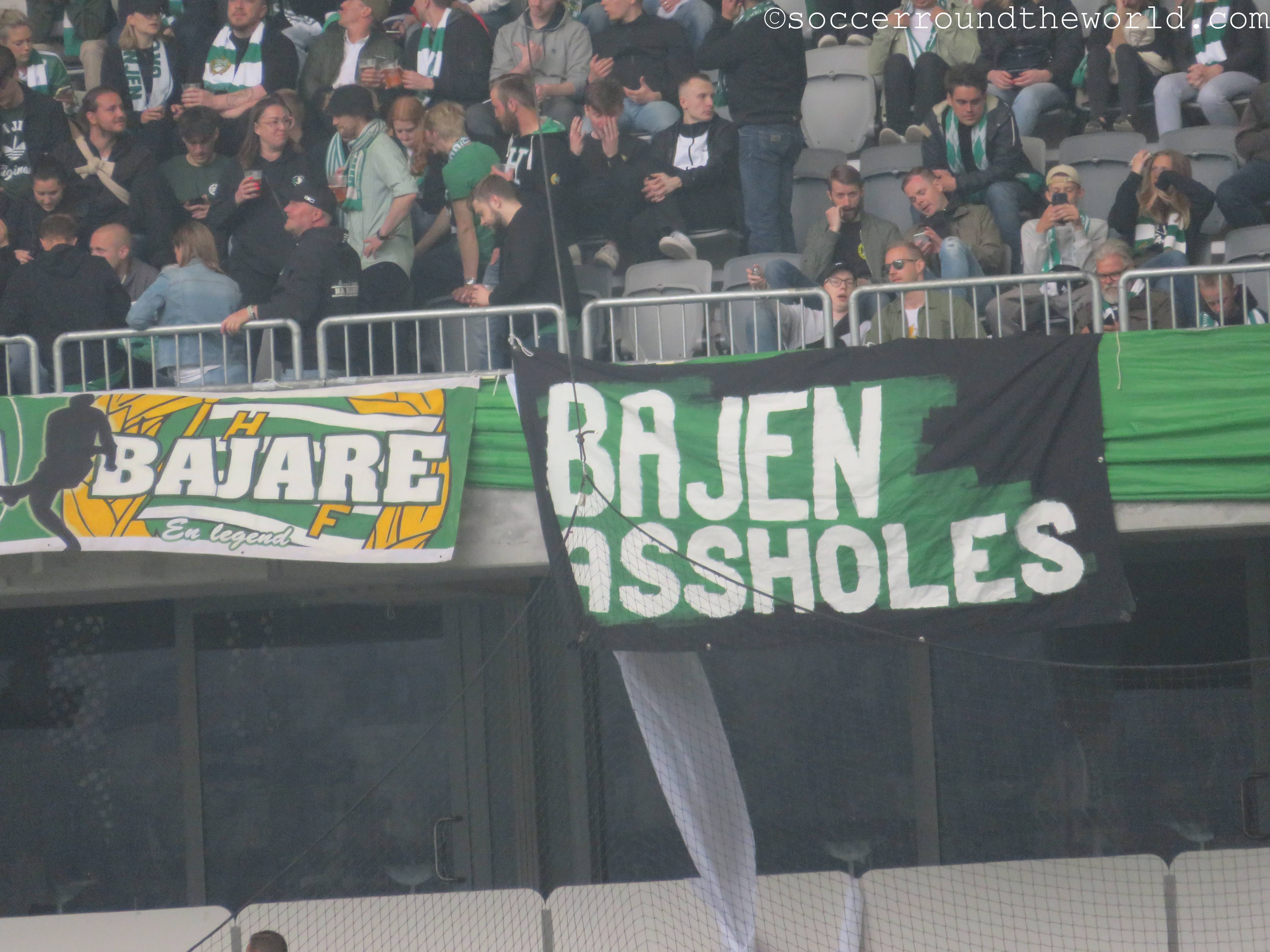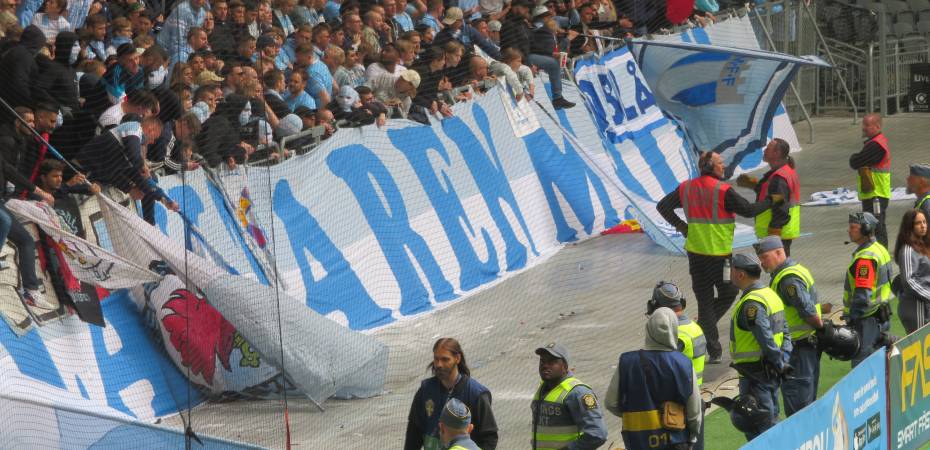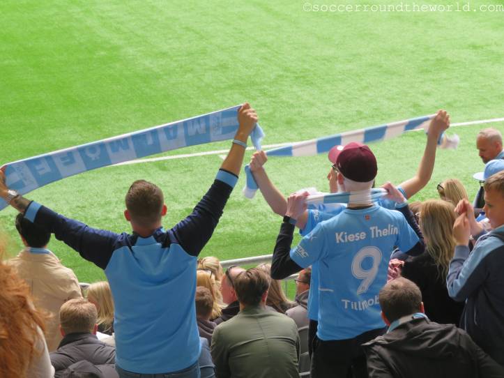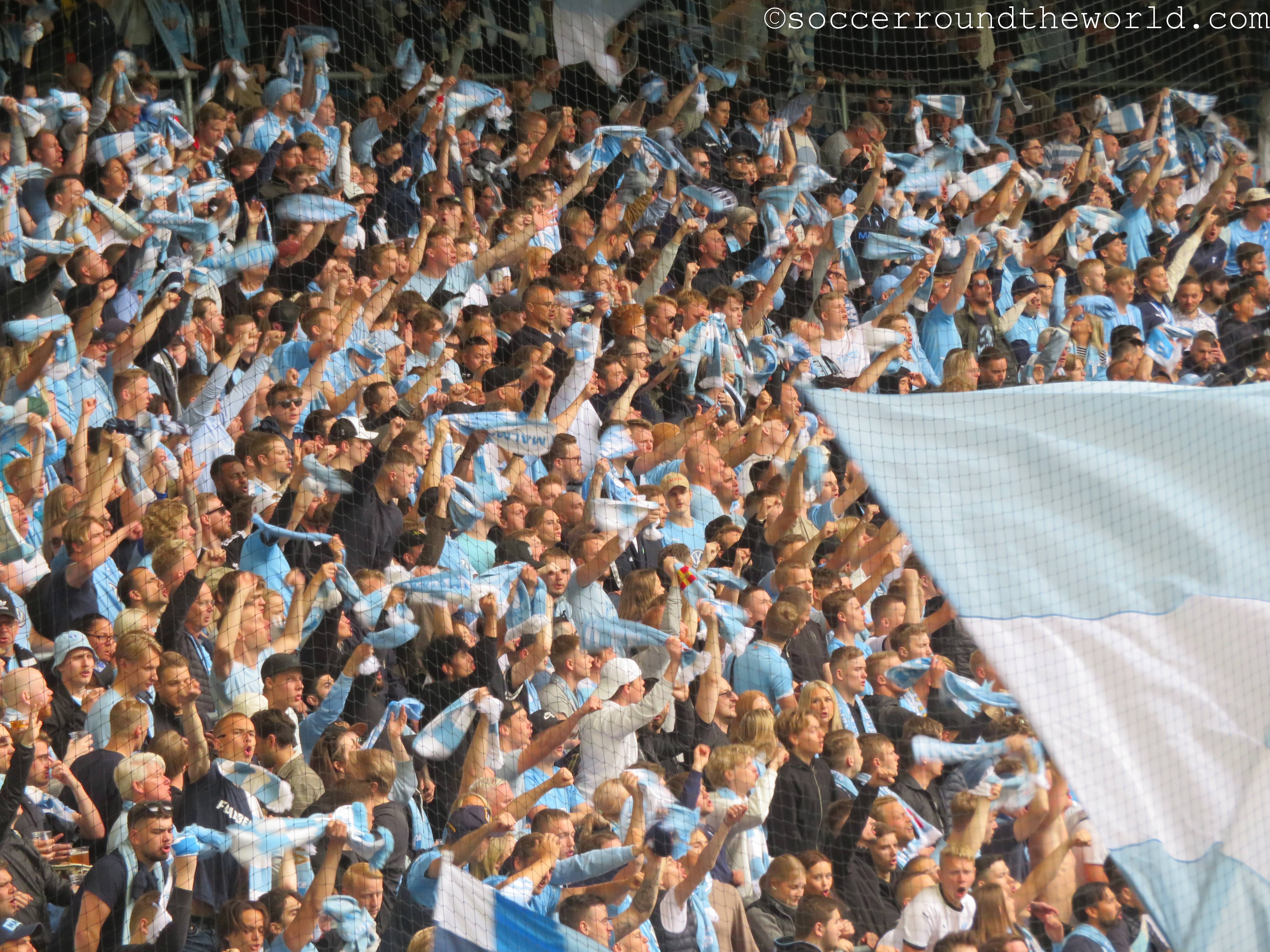 Den Pokal konnten die Grün-Weißen zuletzt – und auch zum ersten Mal – im Vorjahr gewinnen und spielen zudem heute auch noch im Heimstadion, dass sie sich mit dem Lokalrivalen Djurgardens IF teilen. Dadurch wurden ihnen auch mehr als 20.000 der verfügbaren Karten zugesprochen, die innerhalb kürzester Zeit vergriffen waren. Für mich blieb daher „nur“ mehr eines der rund 6.900 Tickets, die Malmö in den Verkauf geben konnte. Und selbst im Sektor der Himmelblauen sitzen nicht gerade wenige Hammarby-Anhänger.