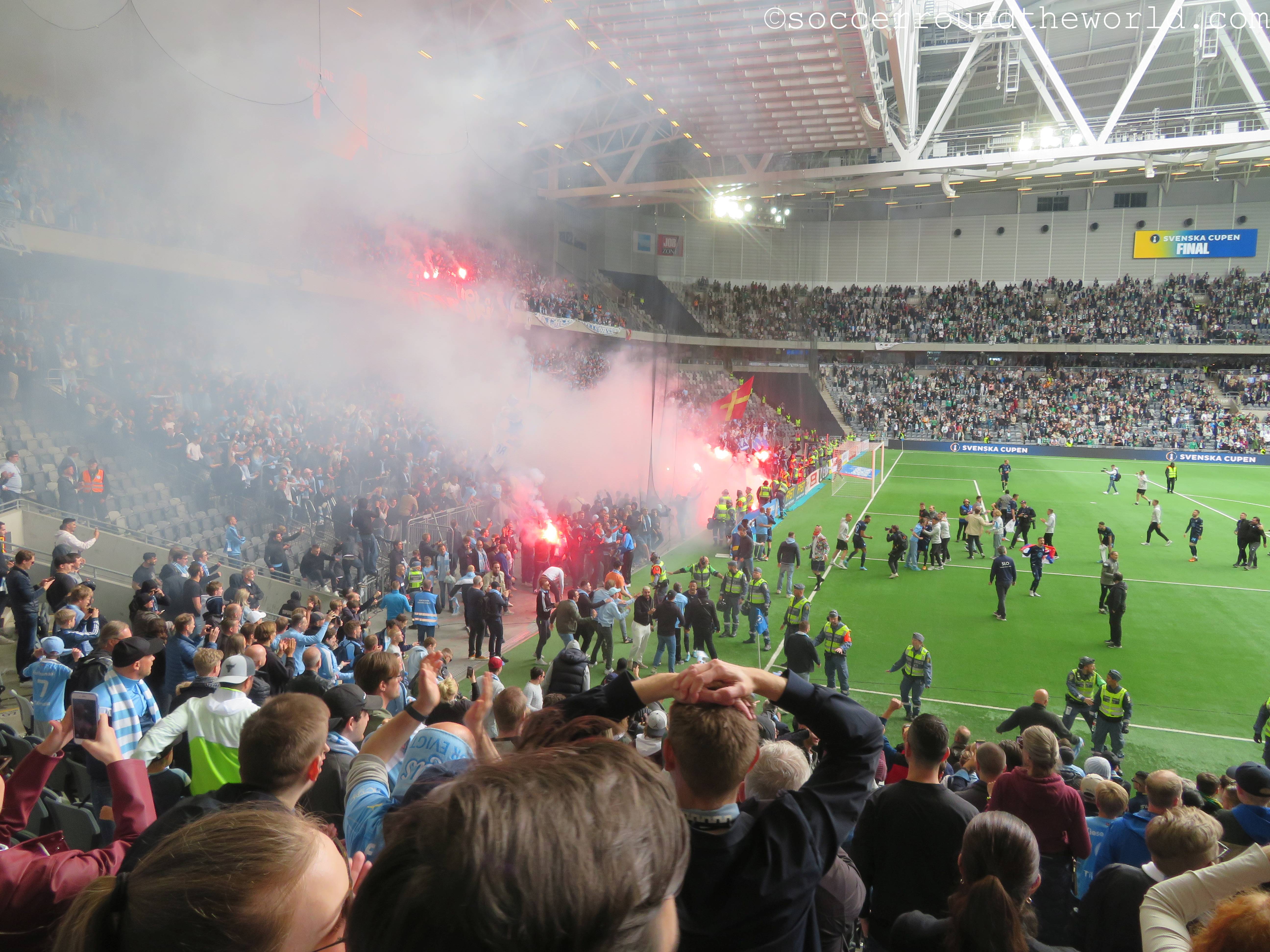 Zwar startet das Match sehr dynamisch umkämpft, flacht aber mit zusehendem Verlauf immer mehr ab. Das 0:0 nach der Verlängerung ist daher nur die logische Folge. Das Elferschießen startet dann für Malmö ausgenommen schlecht, wird doch gleich der erste Antritt vergeben. Die restlichen Penalties sitzen aber, während Hammarby insgesamt zwei Mal am Torhüter scheitert. Dem Pokalgewinn der Himmelblauen folgt noch ein Platzsturm beider Fankurven, der von den rasch eingreifenden Robocops aber schnell wieder unter Kontrolle gebracht wird.