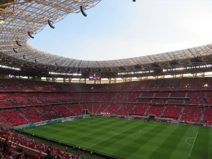 Die Puskas Arena wurde ab 2016 an der Stelle des abgerissenen Ferenc-Puskas-Stadions (davor Nepstadion) errichtet und 2019 eröffnet. Im vergangenen Jahr war sie Austragungsort von drei Gruppenspielen und einem Achtelfinale bei der EURO 2021. Das Stadion fasst 67.155 Zuschauer und ist heute – aufgrund der sehr spärlich erschienen deutschen Fans – dennoch ausverkauft.