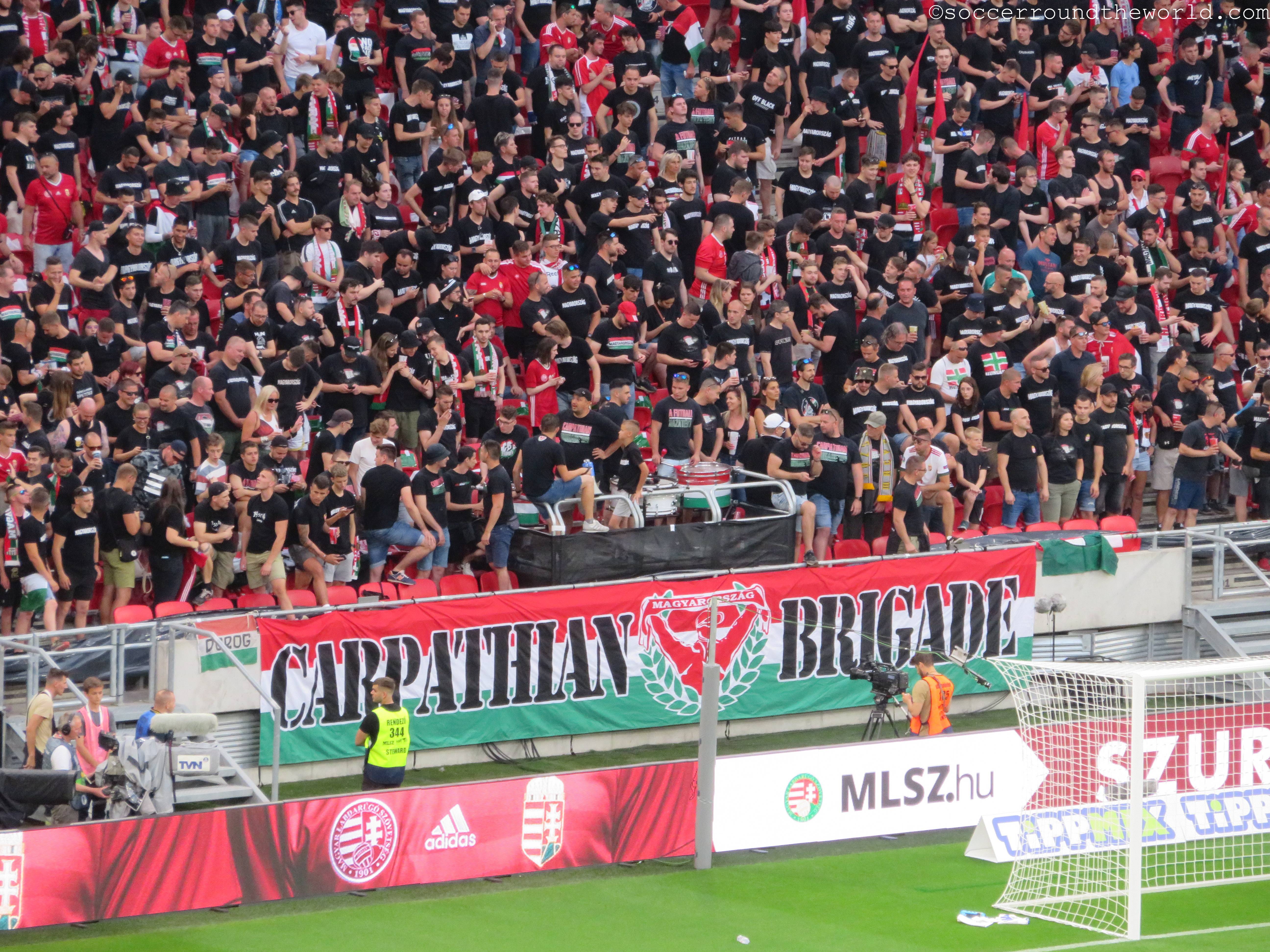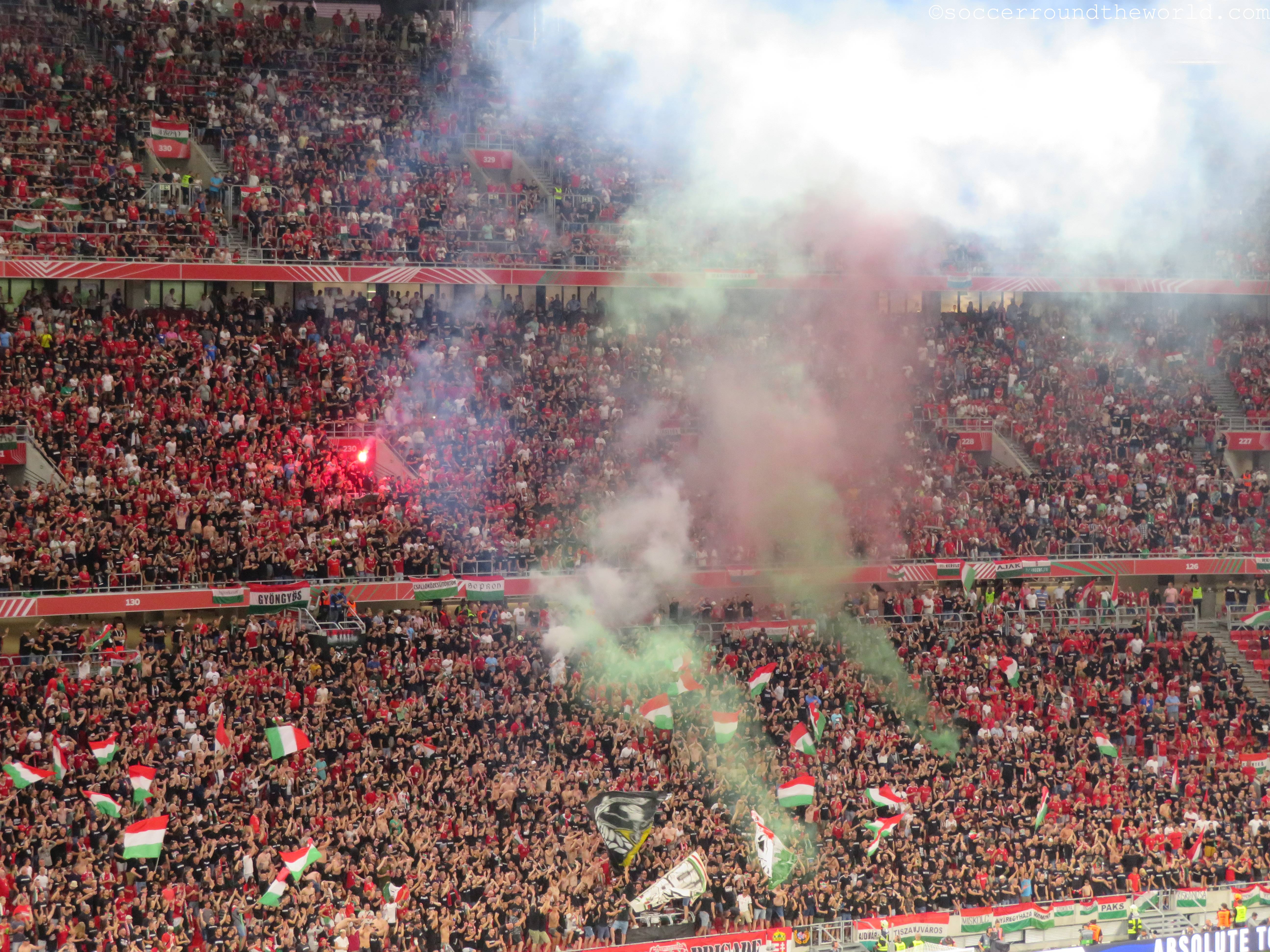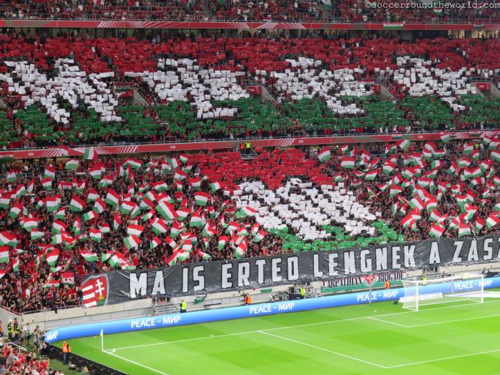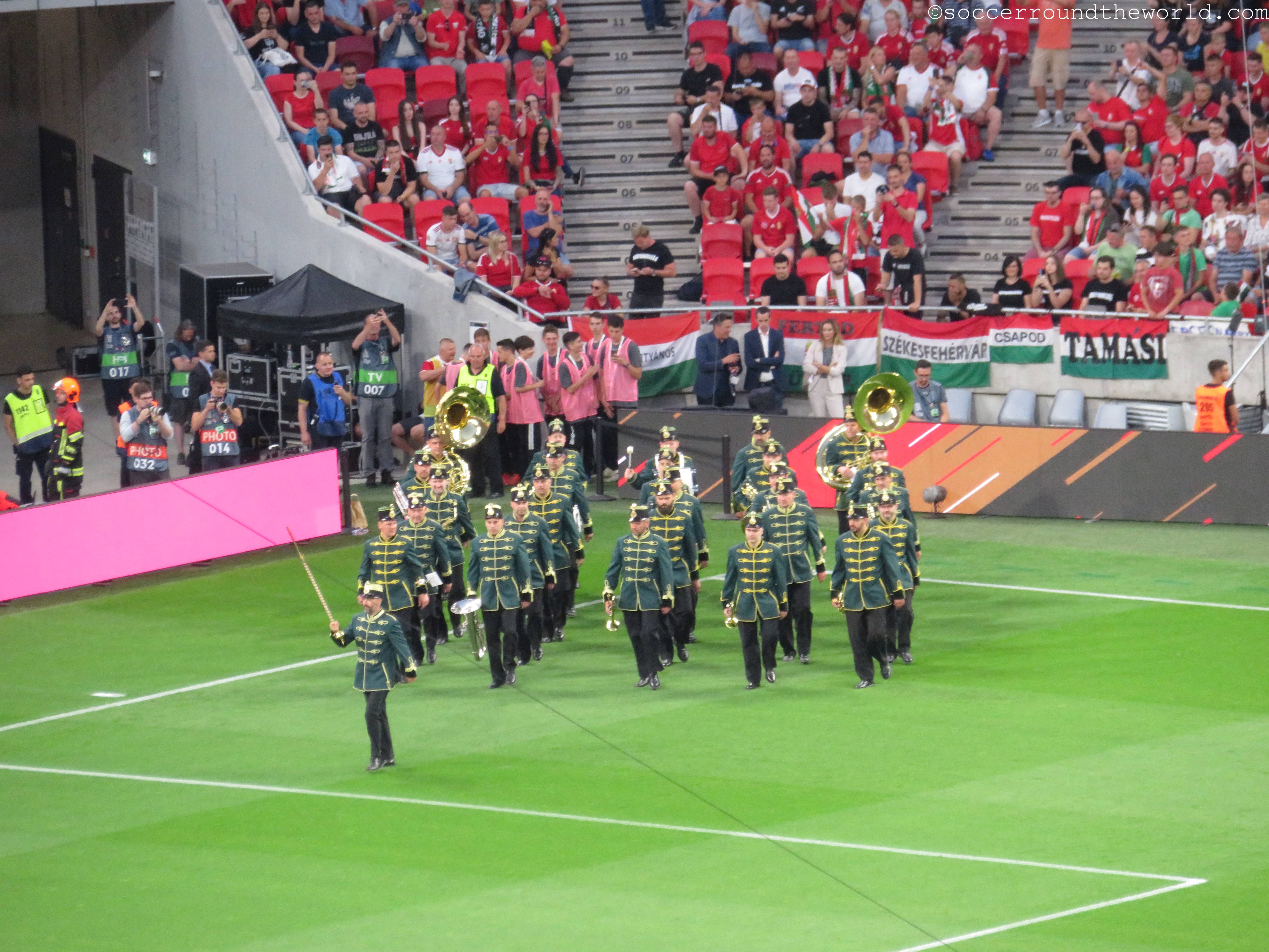 Die Puskas Arena scheint generell über eine sehr gute Akustik zu verfügen: Selbst eine knappe Stunde vor Spielbeginn erzeugen die knapp zu einem Viertel gefüllten Ränge bereits eine sehr annehmbare Stimmung. Den Höhepunkt erreicht diese Entwicklung in der sechsten Minute, als Ungarn nach einem Blitzstart mit 1:0 in Führung geht. Der kurz darauf eingefangene Ausgleich versetzt den zu diesem Zeitpunkt bereits hochfliegenden ungarischen Träumen aber auch gleich wieder einen Dämpfer. Die Charakteristik des Spiels bleibt danach gleich: Phasen mit extrem niedrigem Tempo werden von Sturm-und-Drang-Perioden auf beiden Seiten abgelöst. Bemerkenswert ist dabei, wie sich beide Abwehrreihen bei etwas Gegendruck locker umspielen lassen oder sogar bereitwillig selbst auflösen.