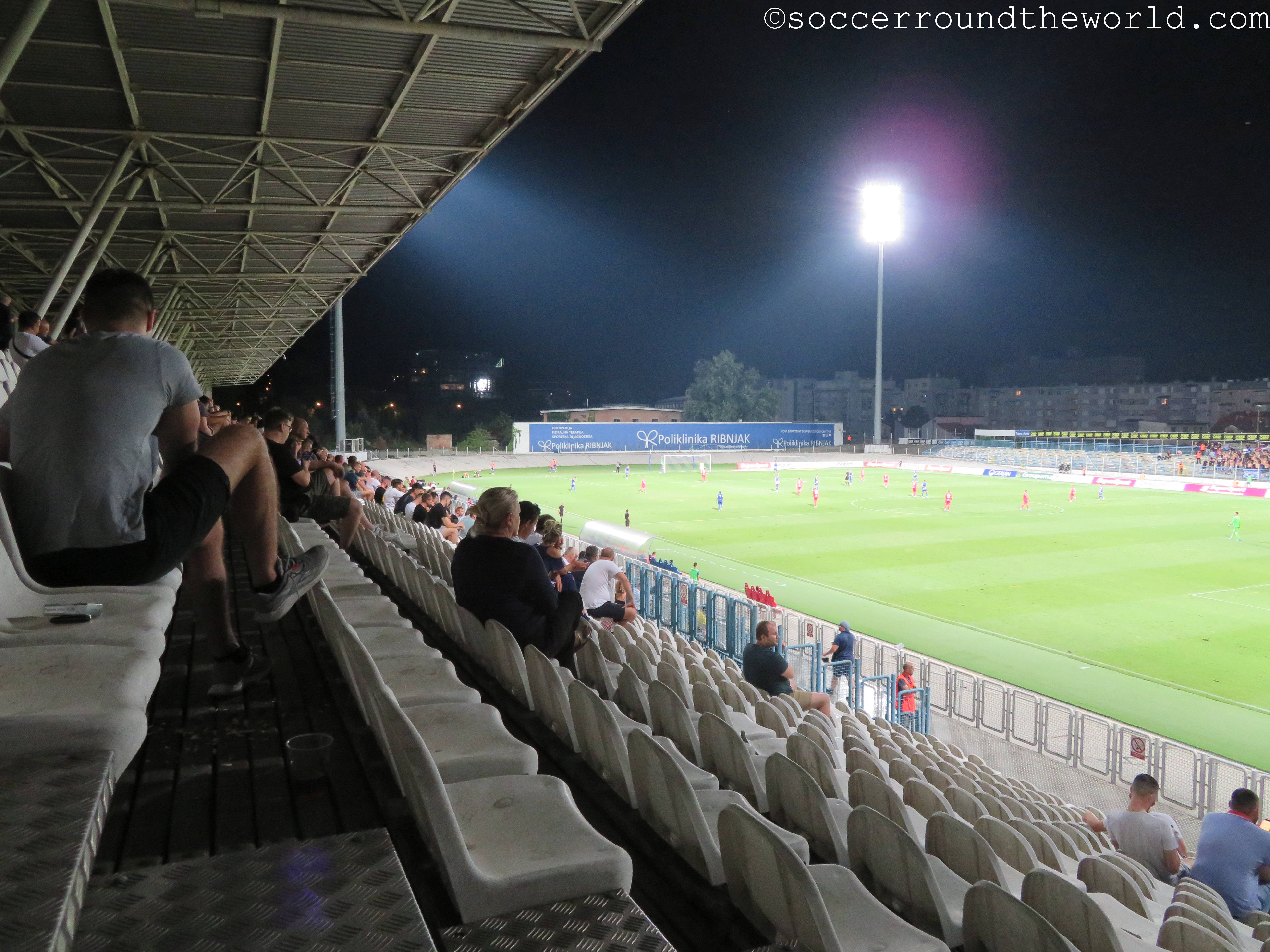 Das Stadion war bis 2018 eigentlich das Heimstadion von NK Zagreb. Da Lokomotiva aber auf der Suche nach einer tauglichen Heimstätte war, zog es ebenfalls hier ein. Das aus einer Haupt- und einer kleineren Nebentribüne bestehende Stadion verfügt über eine Kapazität von 5.350 Zuschauern und neben dem Spielfeld auch über eine Radrennbahn rund um den Rasen. Die heutige offizielle Besucherzahl halte ich persönlich für stark untertrieben, hätte zumindest auf eine dreistellige Anzahl getippt gehabt.