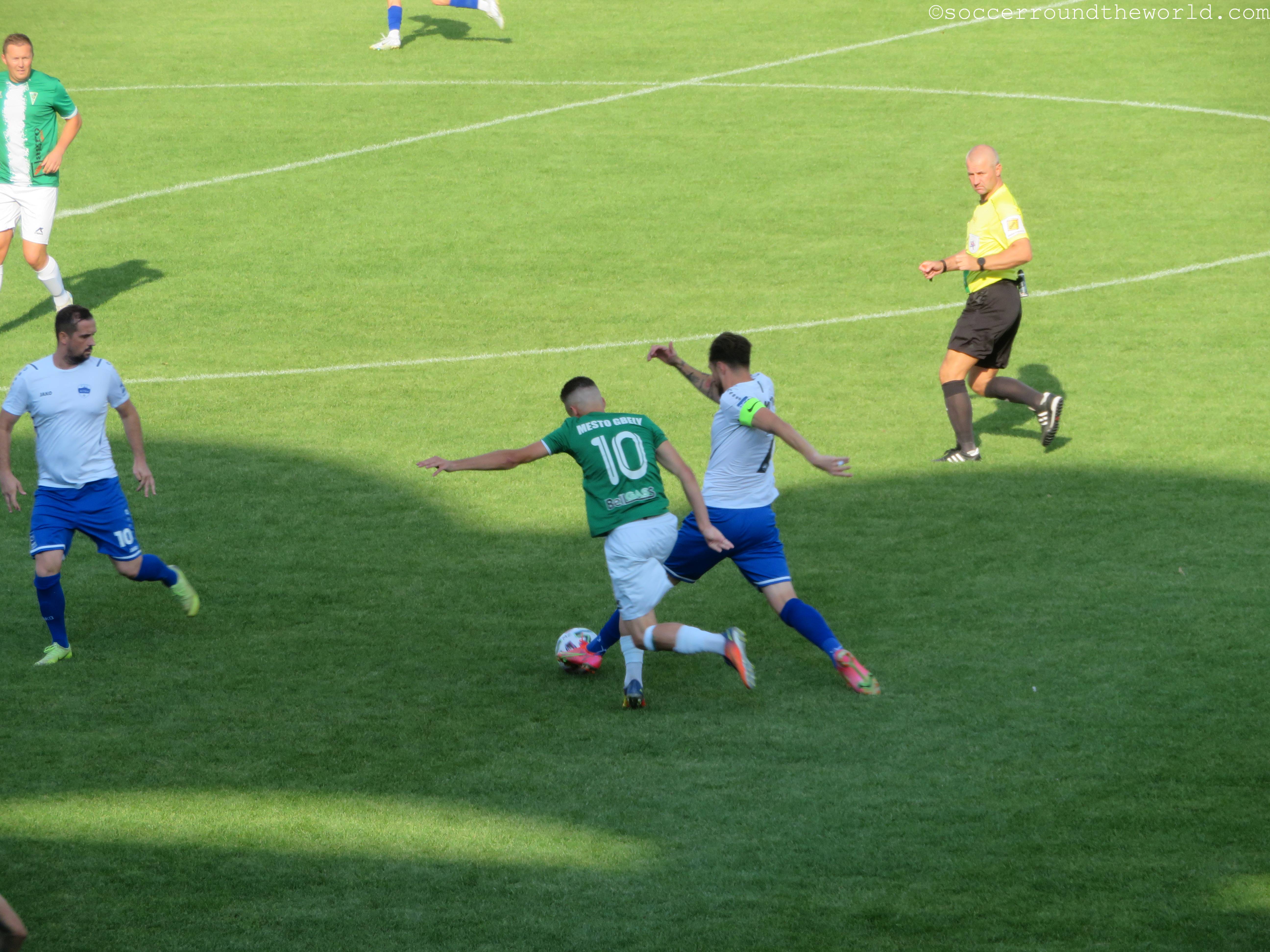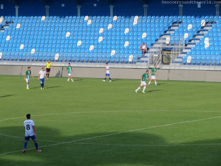 Von der beim letzten Besuch noch zu erlebenden aktiven Fanszene ist diesmal nichts mehr zu erahnen. Und die selbst jetzt noch ins Stadion pilgernden Anhänger werden auch eher gequält als mit gutem Spiel versöhnt. Über 90 Minuten ist die Heimmannschaft heillos überfordert mit einem solide spielenden Gegner, die Niederlage eine logische Konsequenz daraus. Ein weiterer Absturz für den FC Nitra ist so nicht nicht nur nicht auszuschließen sondern absolut wahrscheinlich.
