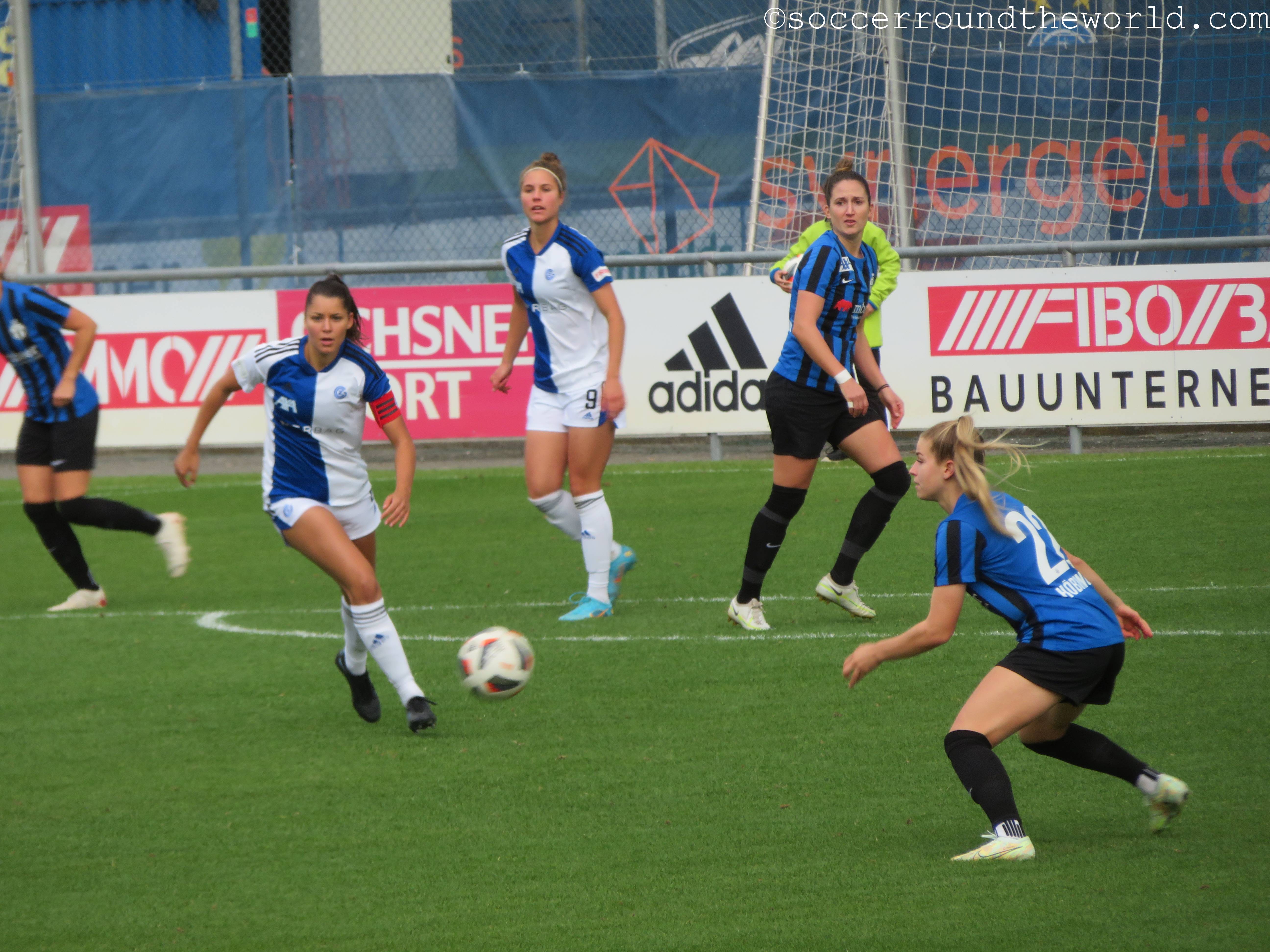 Unter regem Austausch verfolgen wir das Spiel, das an sich von keiner Mannschaft wirklich dominiert wird. Das 1:0 für Grasshopper fällt aus einem direkt verwandelten Eckball, das 2:0 aus einem schönen Weitschuss in Hälfte zwei. Die Frauen des FC agieren bis zum Schluss in Strafraumnähe einfach zu unentschlossen, womit für mich das Ergebnis auch völlig in Ordnung geht.