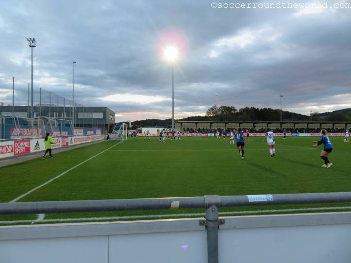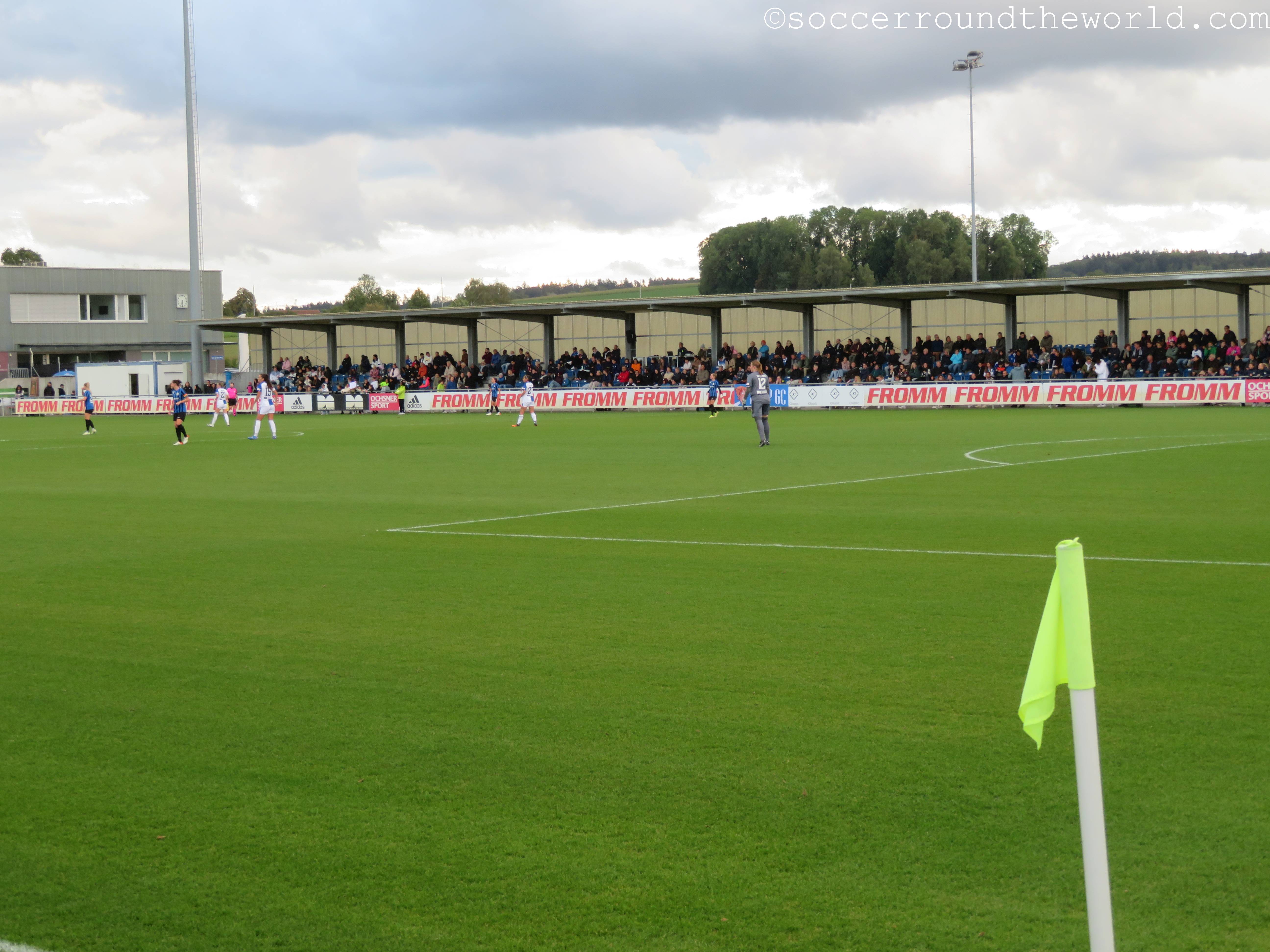 Die Vorzüge des Schweizer S-Bahn-Systems nutzend, geht es dann am frühen Samstagabend nach Niederhasli, wo sich der Campus von Grasshopper Zürich befindet. Dort empfängt heute das Frauen-Team des Schweizer Rekordmeisters den FC zum Stadtderby. Letzteren hatte ich ja vor drei Jahren zuletzt beim Meisterschaftsfinale am Letzigrund gesehen. Damals war der FC auch noch das Maß aller Dinge im Schweizer Frauenfußball. Wie der heutige Tag zeigt, beginnen sich aber auch hier die Zeiten zu ändern.