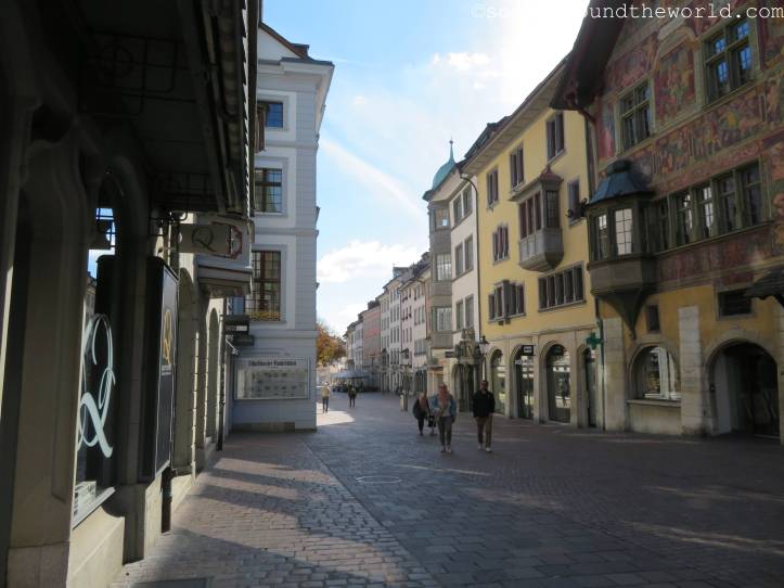 Die rund 37.000 Einwohner zählende Stadt ist die nördlichste der Schweiz. Die liebliche Innenstadt ist geprägt von Gebäuden aus der Renaissancezeit, die sich bis hinunter zum Rheinufer ziehen. Wenige Kilometer außerhalb der Stadt befindet sich mit dem Rheinfall der größte Wasserfall Europas – ihn darf ich bei der Heimreise nach Zürich dann sogar noch bestaunen.