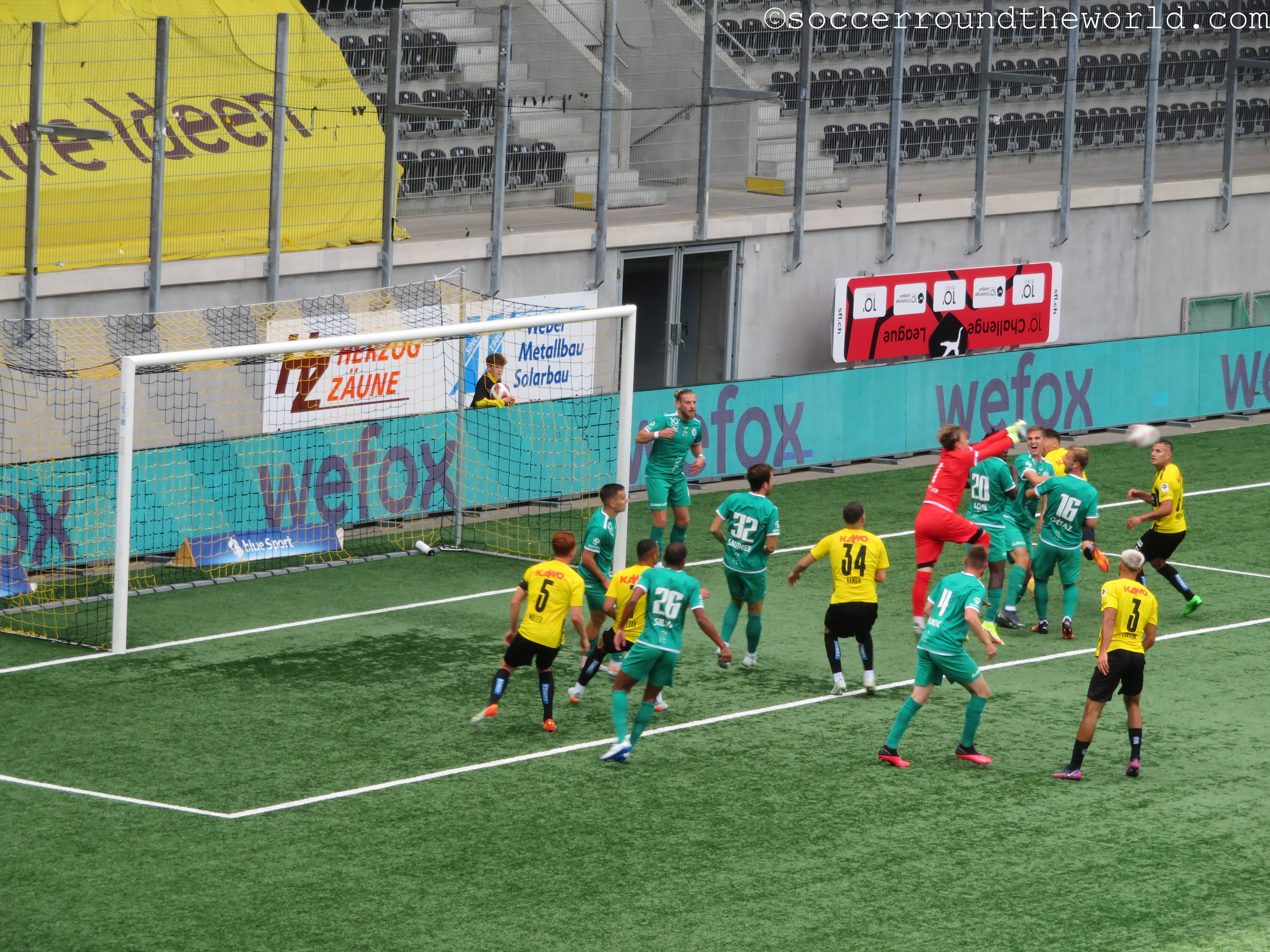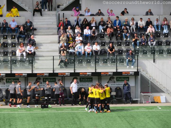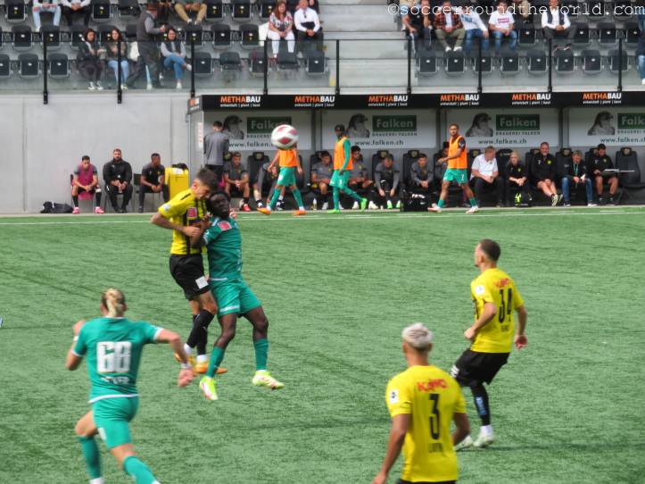 Die Gäste aus der französischsprachigen Schweiz versetzen den Schaffhausener Hoffnungen allerdings früh einen ersten Schock: Bereits mit dem ersten Angriff geht Yverdon in Führung und bleibt auch danach am Drücker. Angetrieben von ihrem Schlüsselspieler Raul Bobadilla (früher unter anderem bei Gladbach und Basel) drehen die Gelb-Schwarzen das Spiel jedoch noch vor der Pause und gehen mit einem komfortablen 3:1 in die Kabinen. Das Spiel bleibt auch in Hälfte zwei höchst unterhaltsam, ein weiteres Tor fällt allerdings erst in der Nachspielzeit.