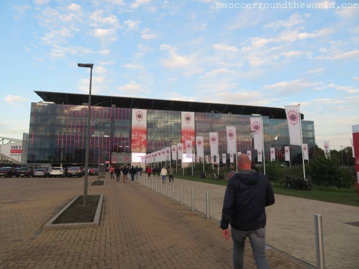 Das Bosuilstadion sollte eigentlich schon seit 2019 völlig runderneuert sein und 23.000 Menschen UEFA-konform Platz bieten. Stattdessen befindet es sich noch immer in halbfertigem Zustand, nur zwei Tribünen sind mittlerweile total modernisiert. Dies bietet immerhin noch die Möglichkeit, eine der älteren Längstribünen zu bestaunen, für die aber bereits keine Karten mehr verkauft werden. Die Anbindung des Stadions an den öffentlichen Verkehr ist absolut katastrophal. Eine einzige Straßenbahnlinie hält in direkter Nähe. Für das Spiel wurde das Intervall aber eher ausgeweitet als verdichtet.