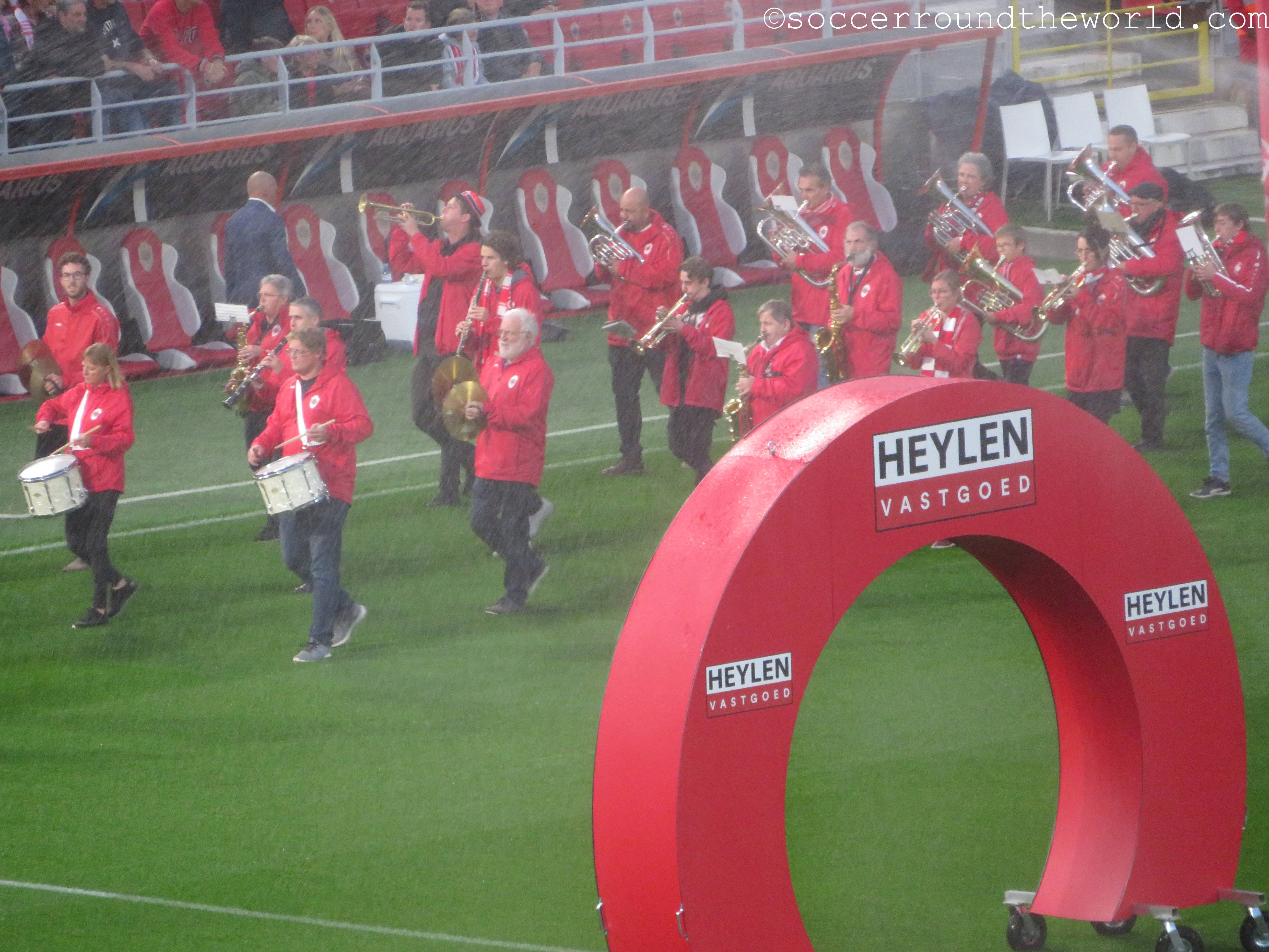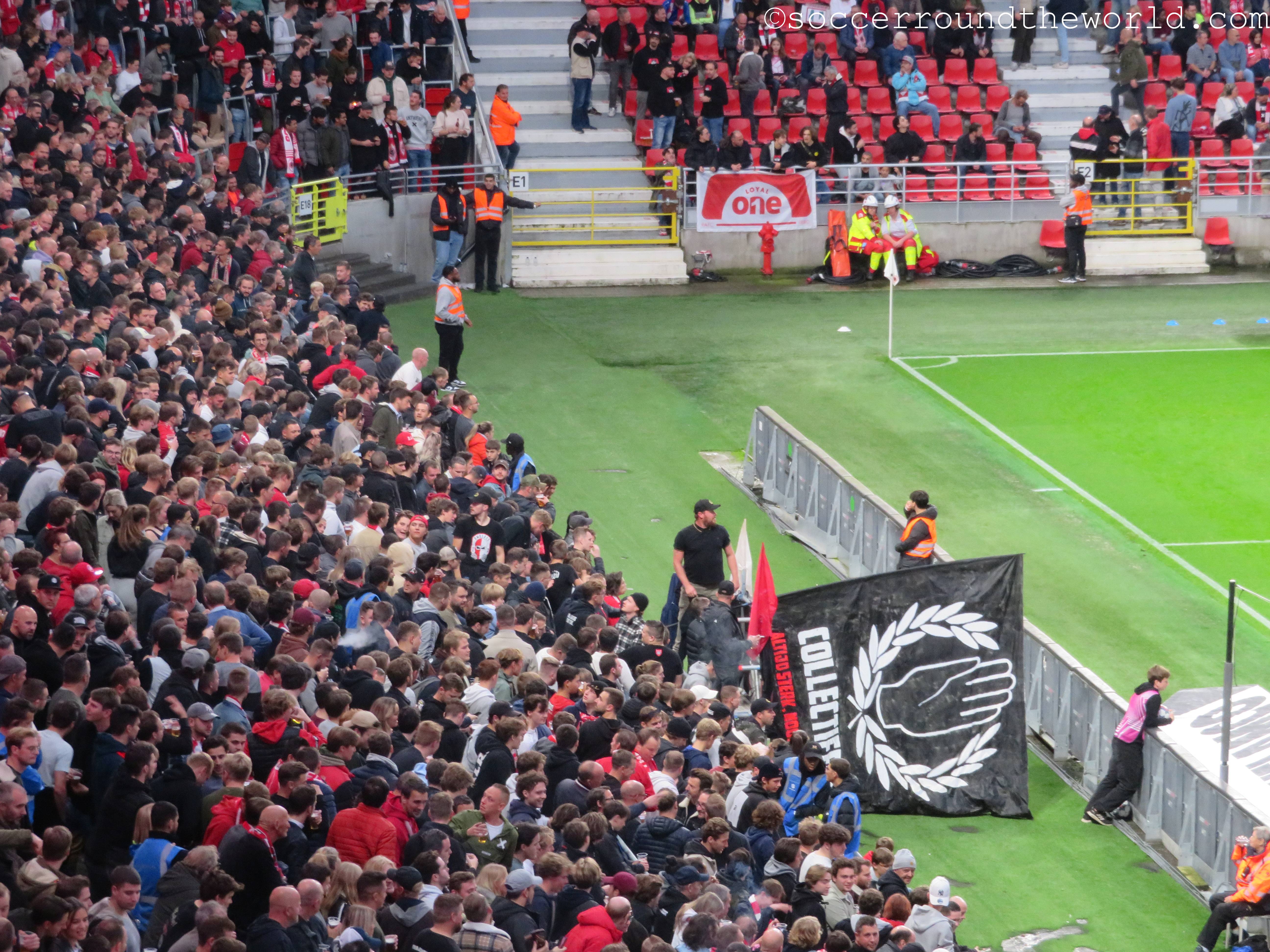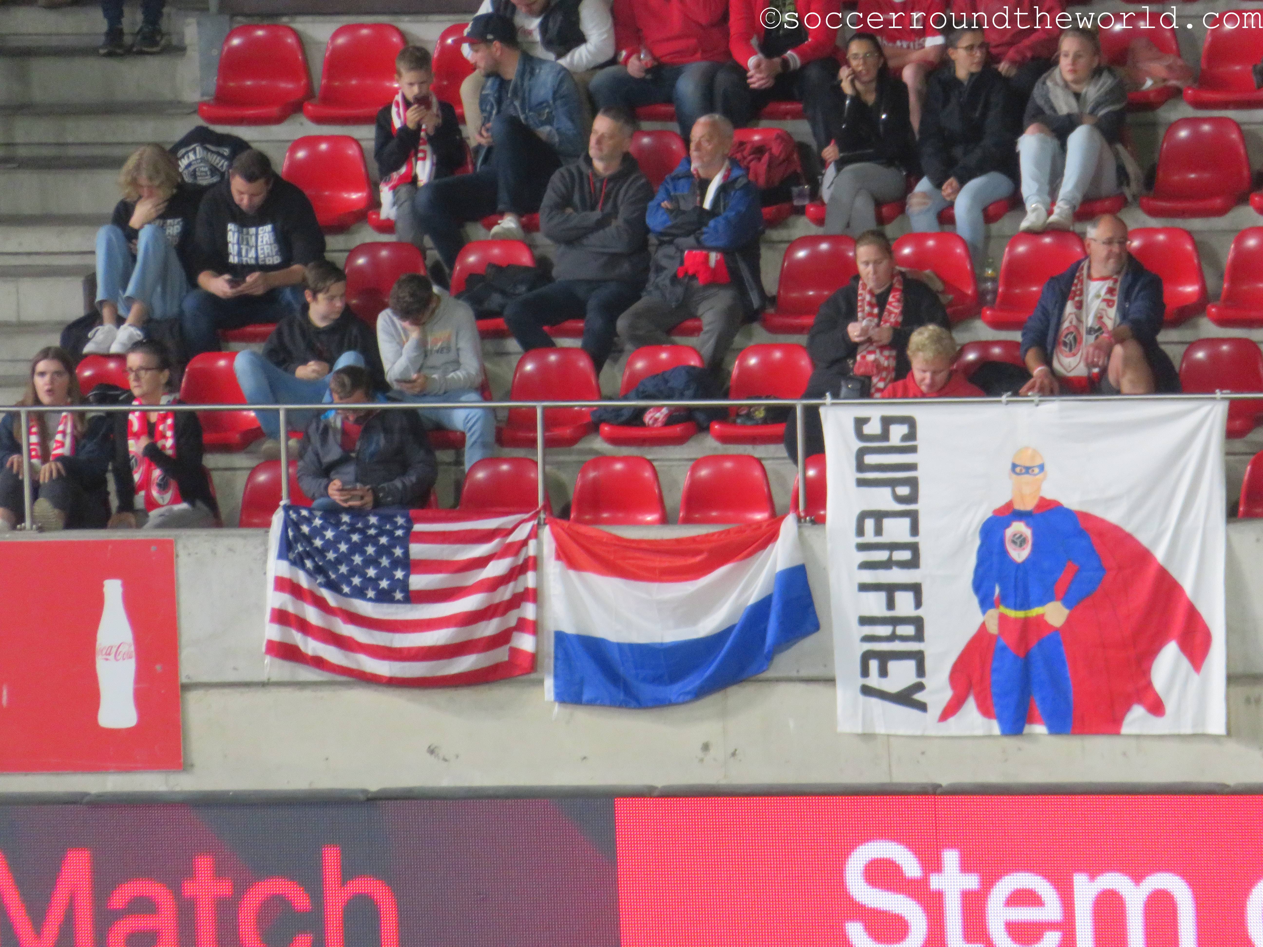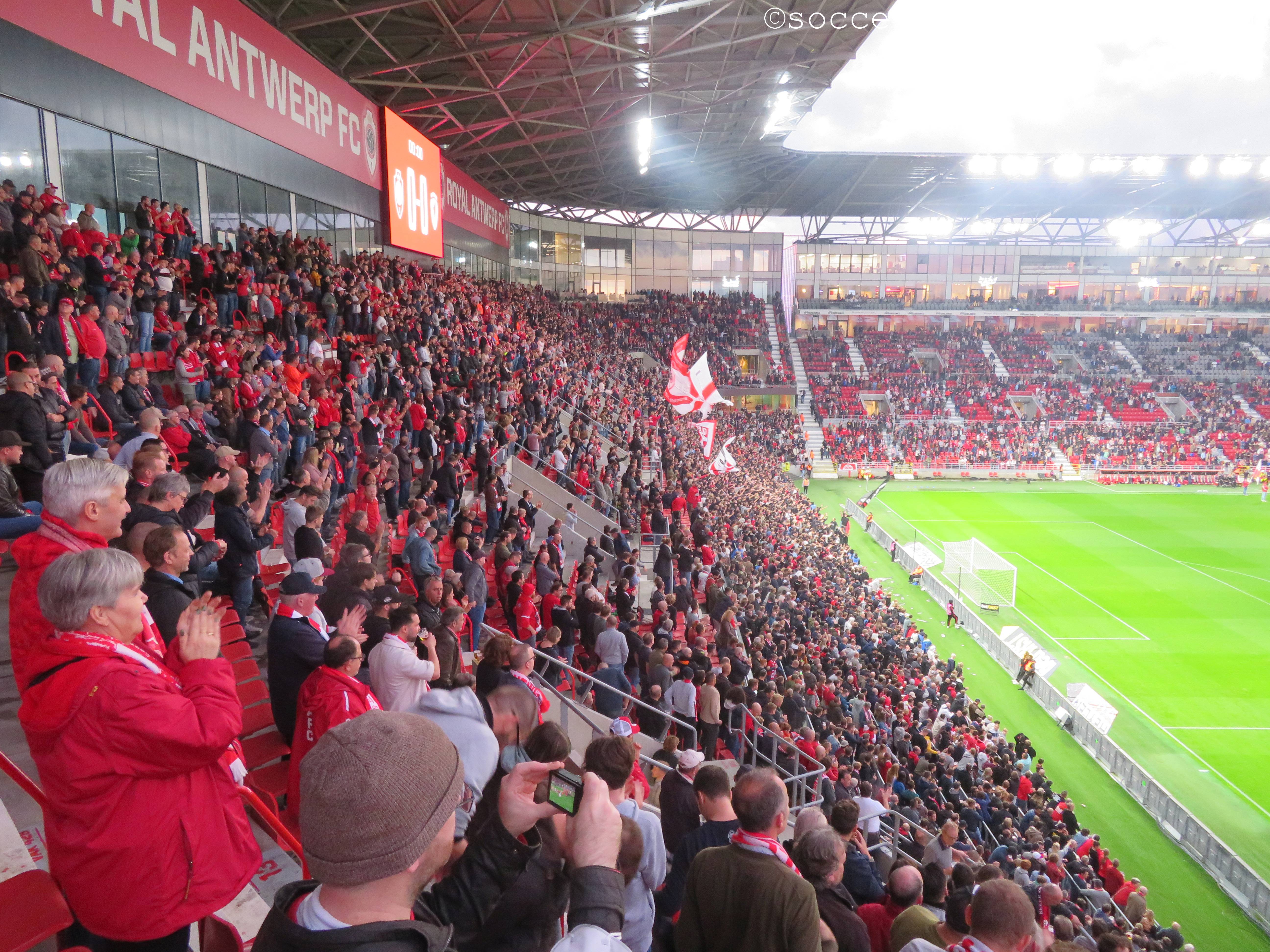 Das heutige Spiel plätschert über weite Strecken relativ anspruchslos dahin. Lediglich der frühe Führungstreffer bringt kurz Fahrt in die Partie. Erst die offenbar zunehmende Müdigkeit der Gäste gegen Ende der zweiten Halbzeit lässt Royal Antwerpen ein dominanteres Spiel aufziehen, das auch noch mit zwei Toren belohnt wird. Die Unterstützung von den Rängen ist dabei durchgängig gut, wenn auch nicht überragend. Dies mag aber auch der gesperrten Tribüne geschuldet sein, weil sich dadurch keine dichte Atmosphäre entwickeln kann.