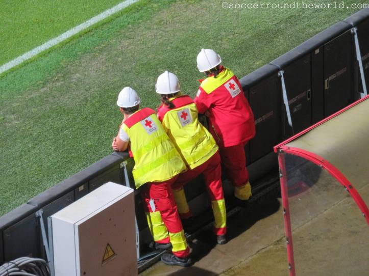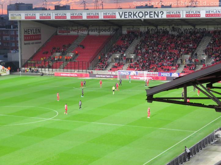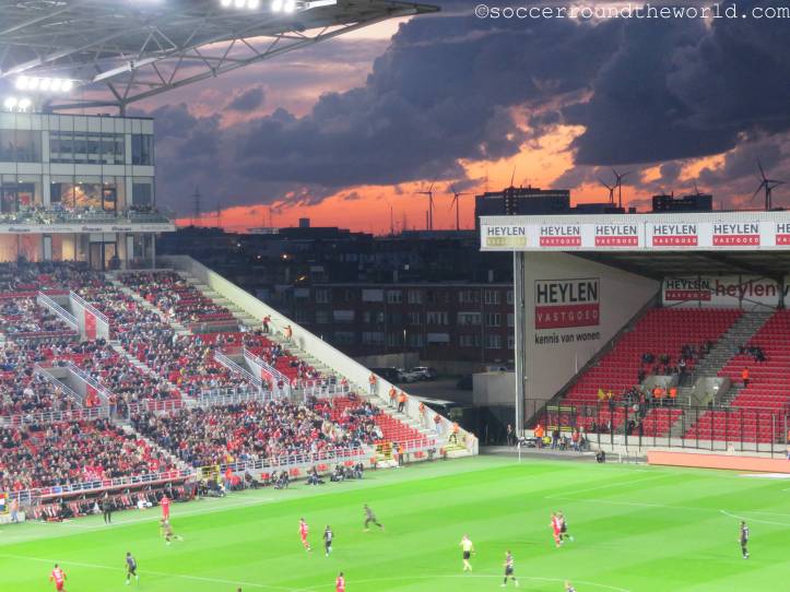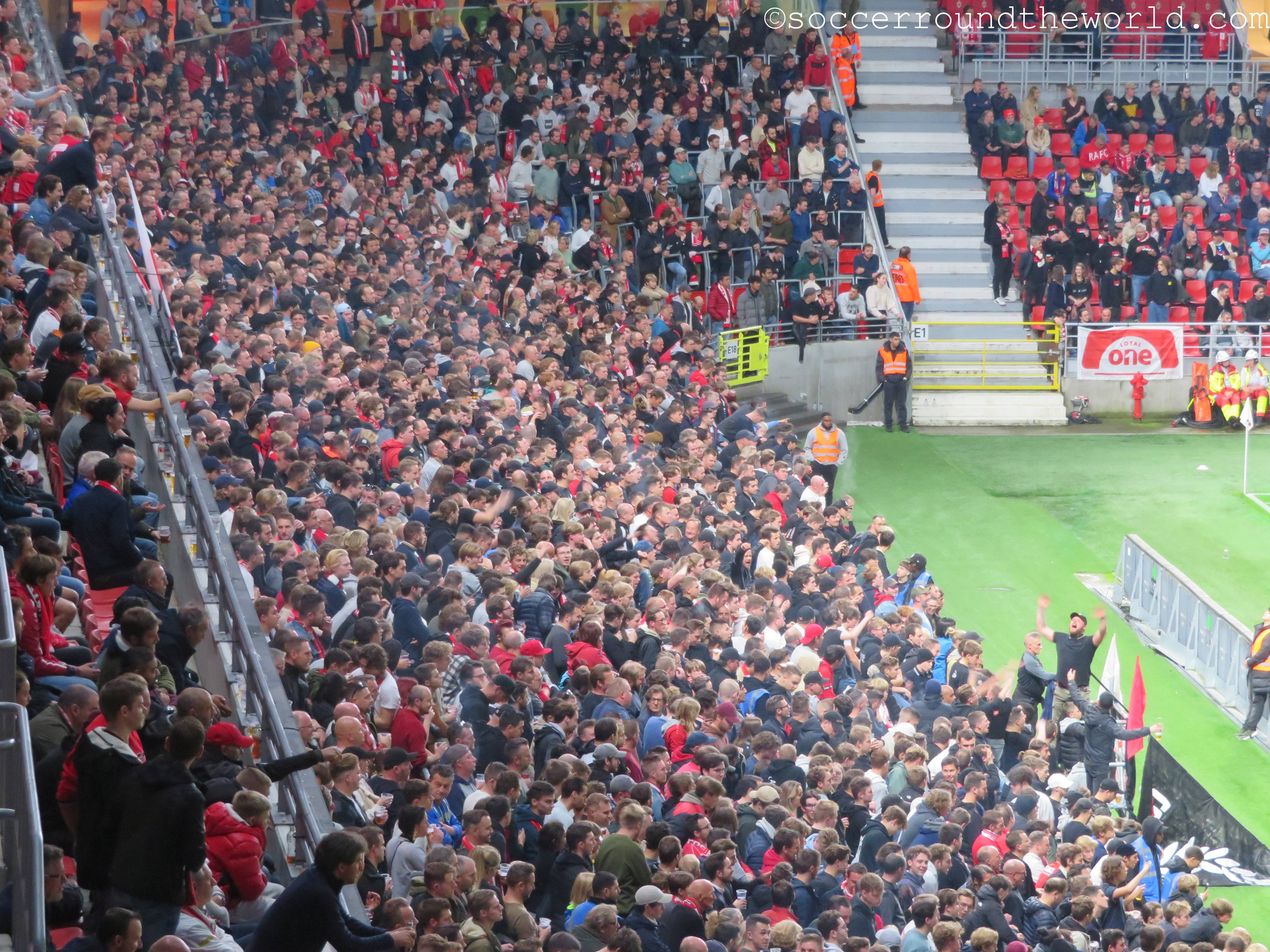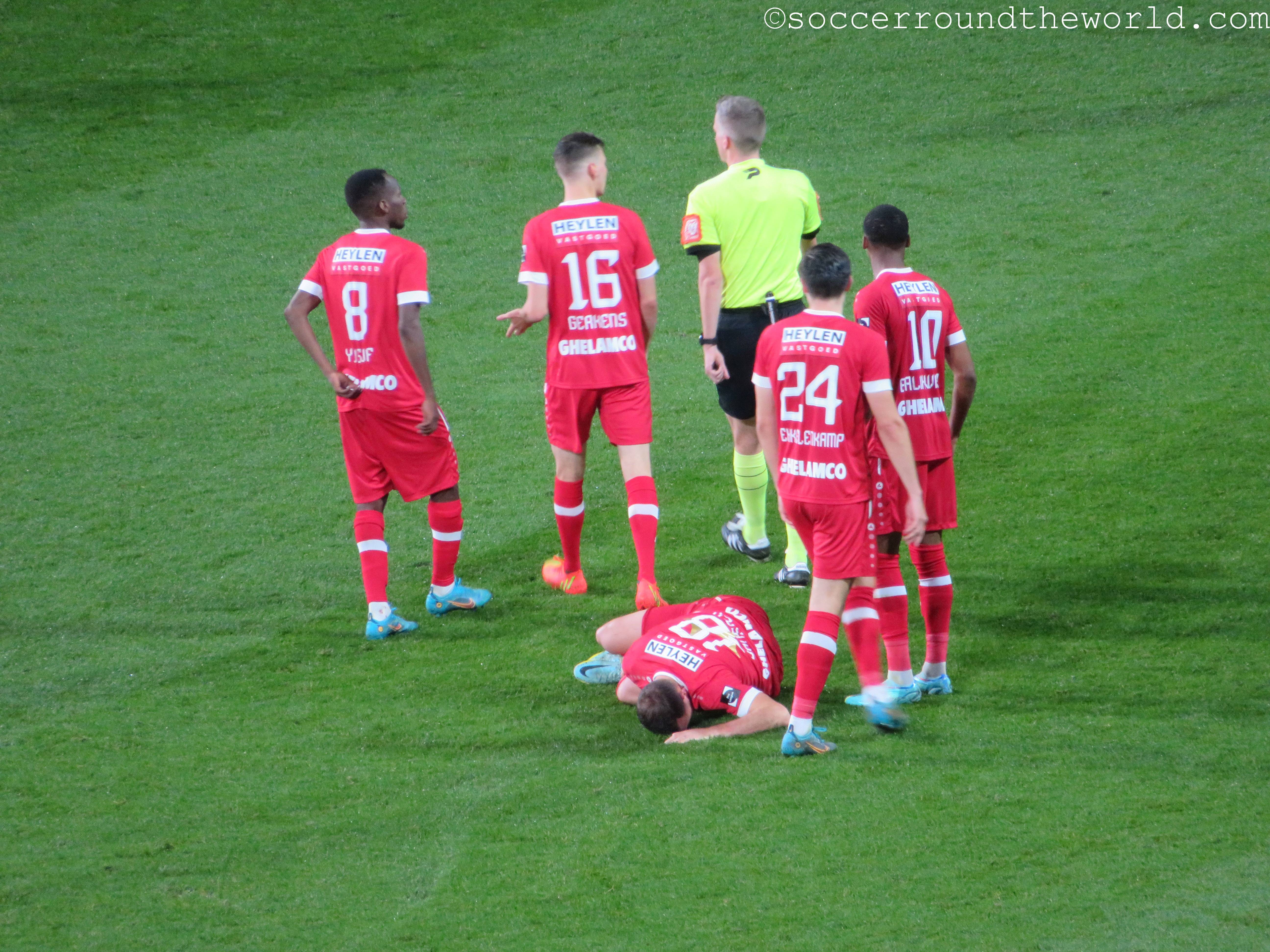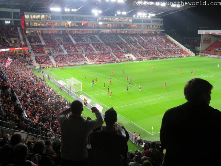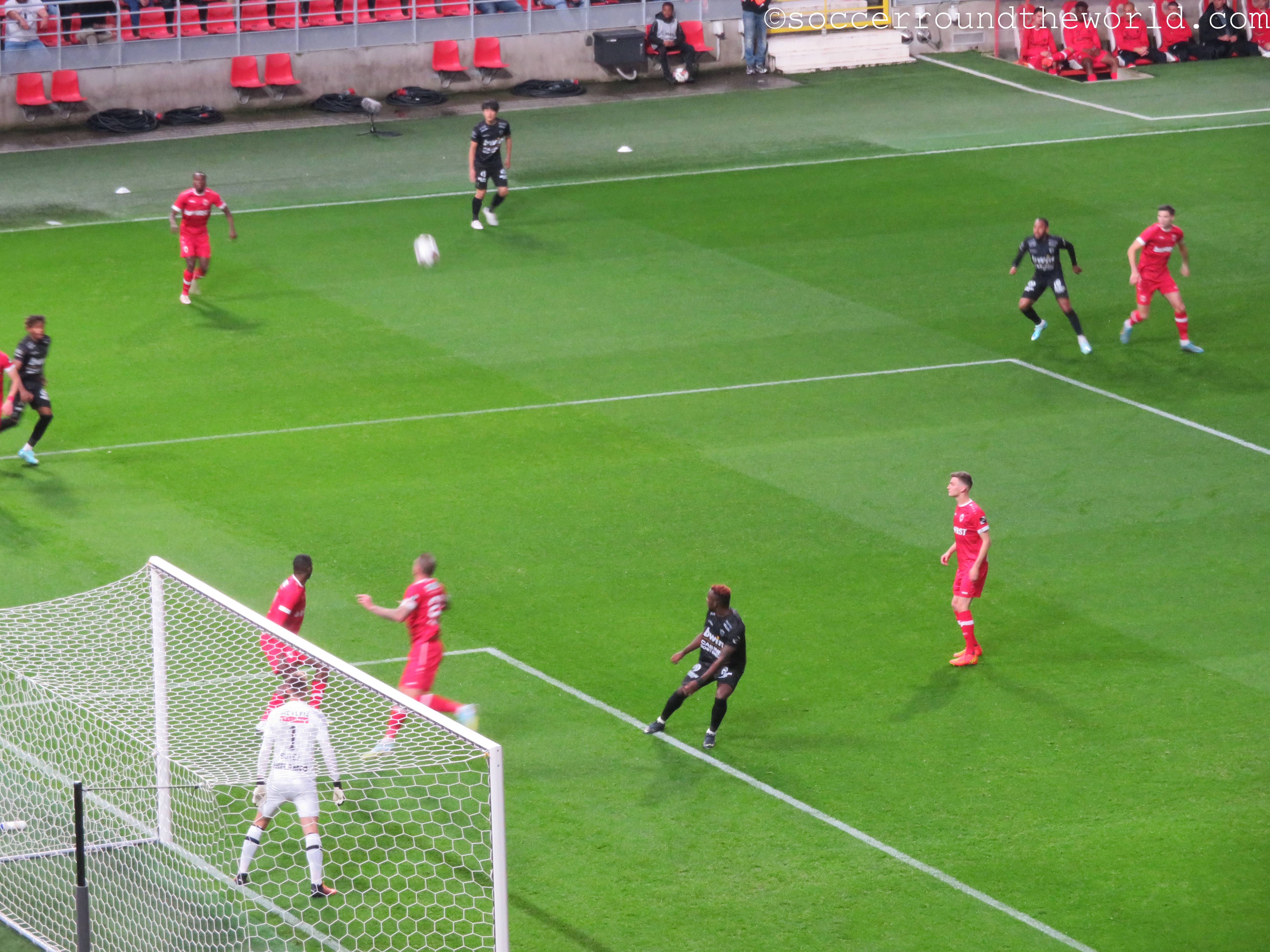 Das heutige Spiel plätschert über weite Strecken relativ anspruchslos dahin. Lediglich der frühe Führungstreffer bringt kurz Fahrt in die Partie. Erst die offenbar zunehmende Müdigkeit der Gäste gegen Ende der zweiten Halbzeit lässt Royal Antwerpen ein dominanteres Spiel aufziehen, das auch noch mit zwei Toren belohnt wird. Die Unterstützung von den Rängen ist dabei durchgängig gut, wenn auch nicht überragend. Dies mag aber auch der gesperrten Tribüne geschuldet sein, weil sich dadurch keine dichte Atmosphäre entwickeln kann.