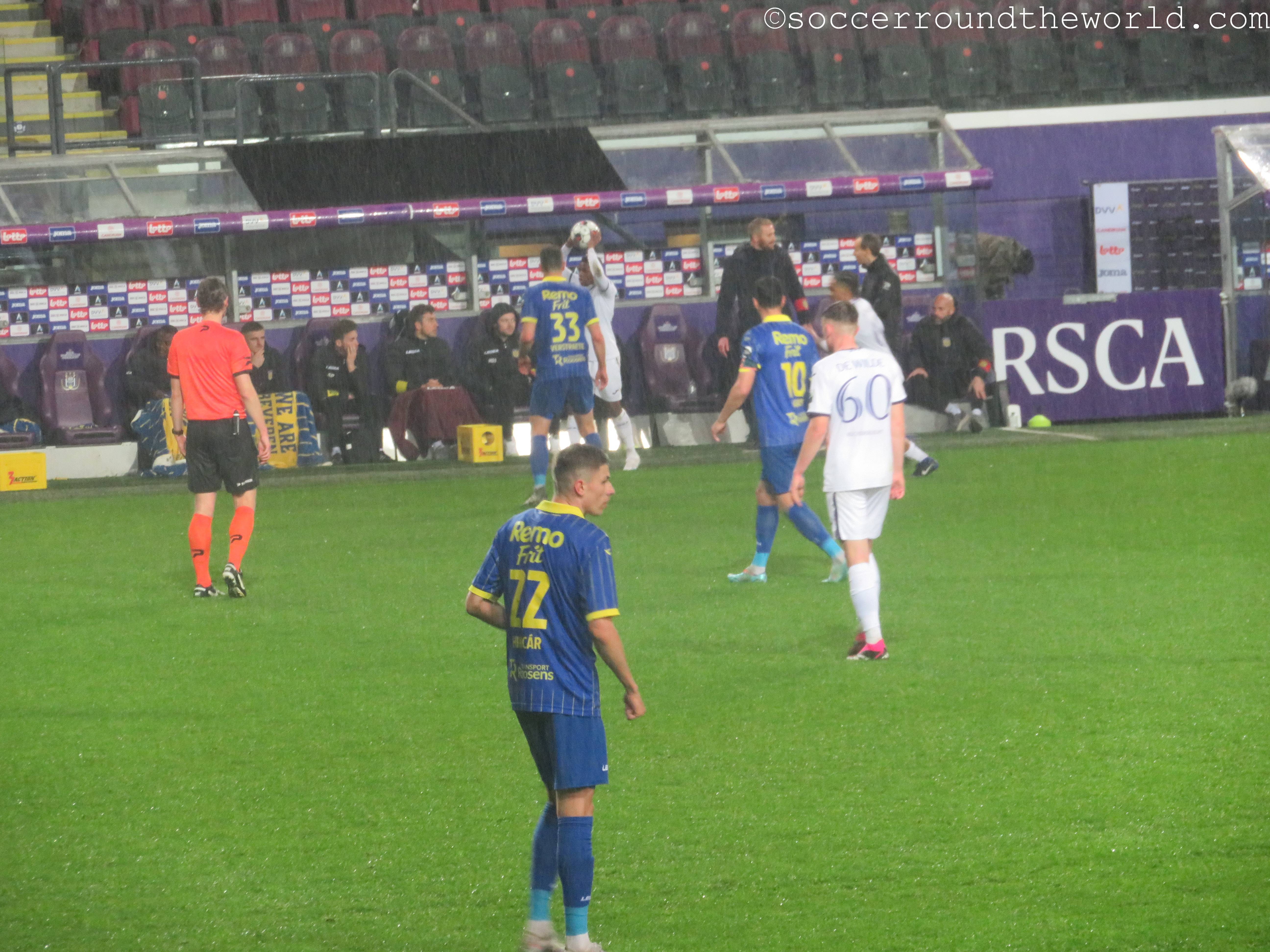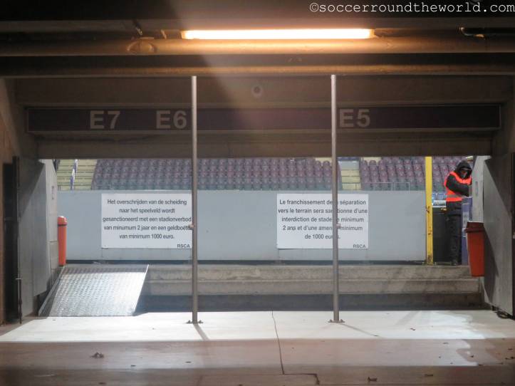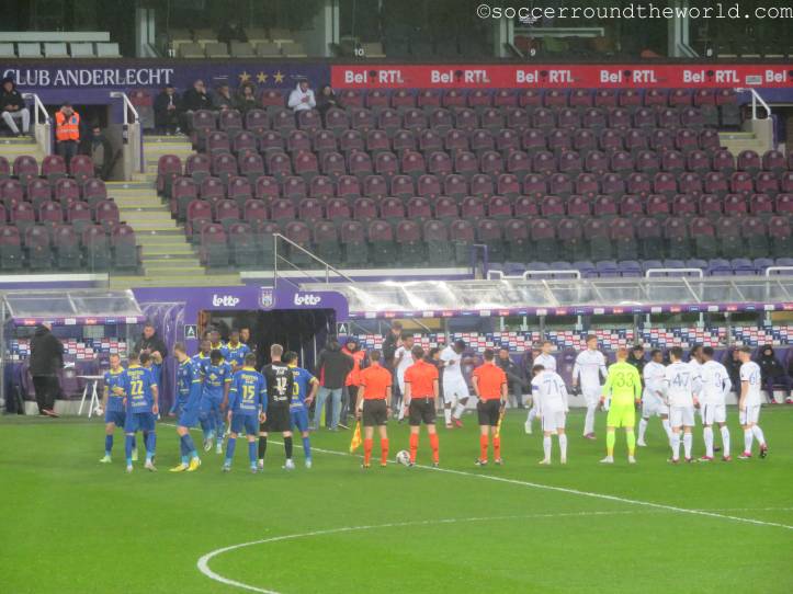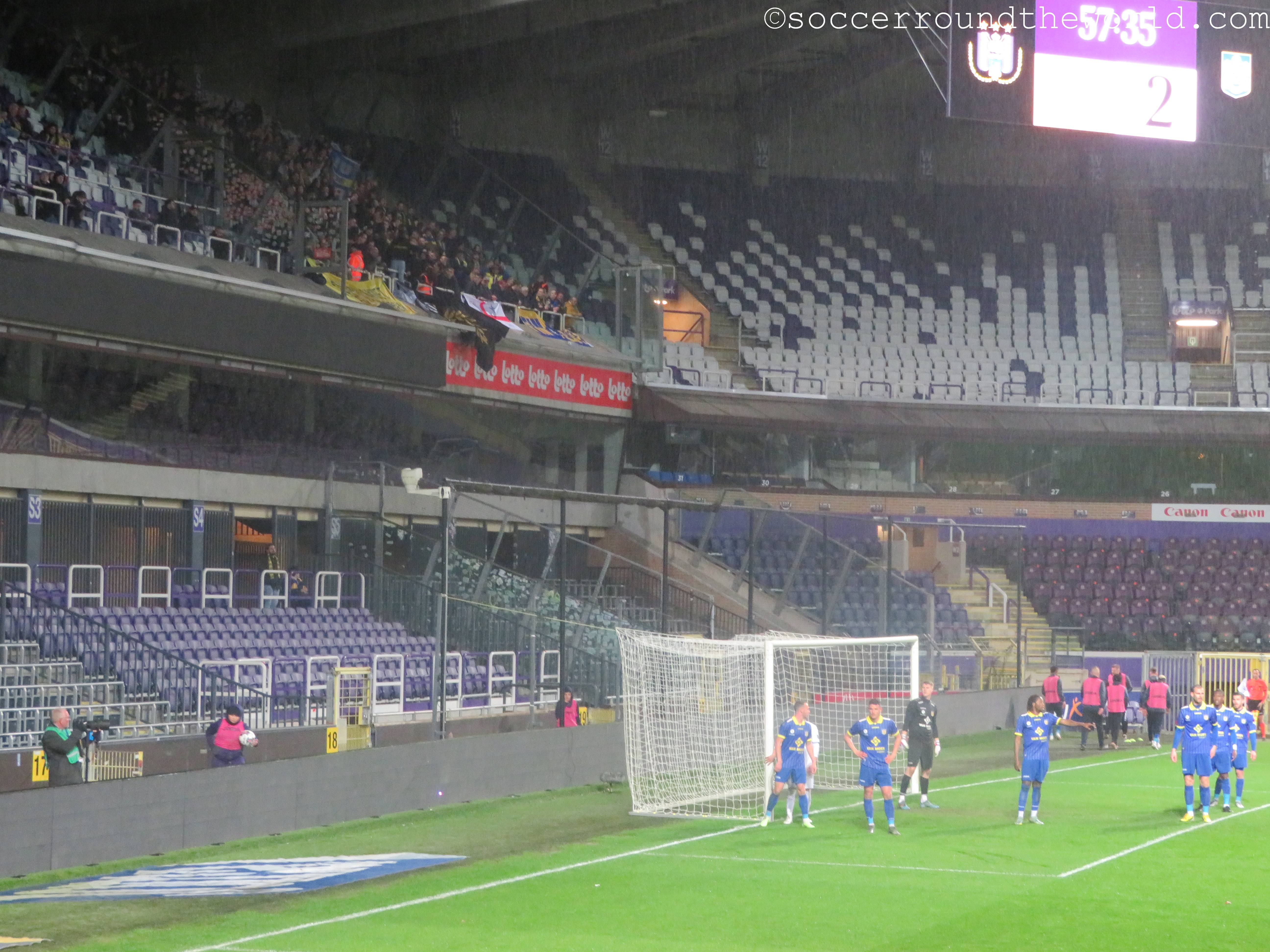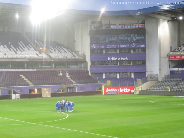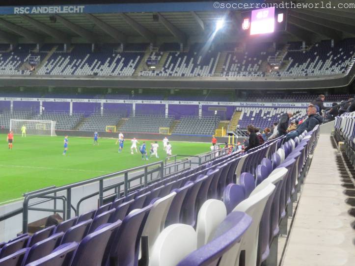 Als Ersatz für Waregem wurde also eine Nacht in Brüssel organisiert und mit RSC Anderlecht eigentlich auch ein sehr traditionsreicher Verein auserkoren. Leider bespielte heute allerdings die Reservemannschaft in der zweiten Liga das für sie viel zu große Heimstadion. Da half es selbst nichts, dass es sich hierbei bereits um ein Match der Aufstiegsrunde handelte. Da die Gäste allerdings noch sehr gut im Rennen für einen Platz in der ersten Liga sind (nur RWD Molenbeek liegt momentan vor ihnen), kamen immerhin aus Beveren einige gesangsfreudige Anhänger mit.