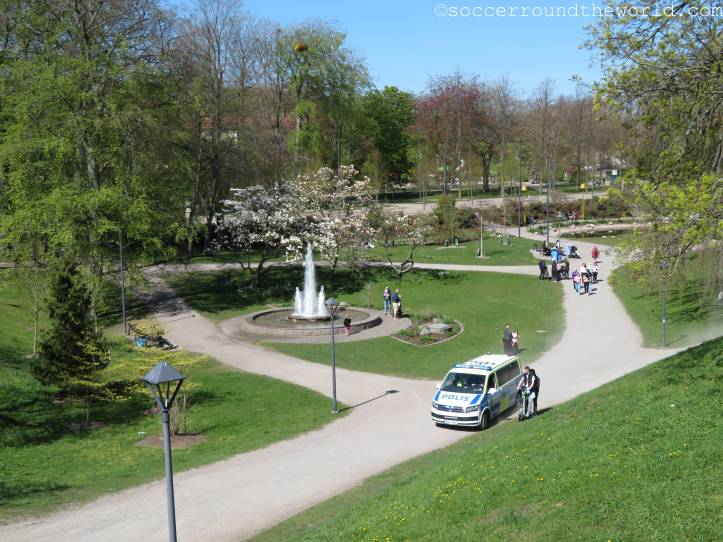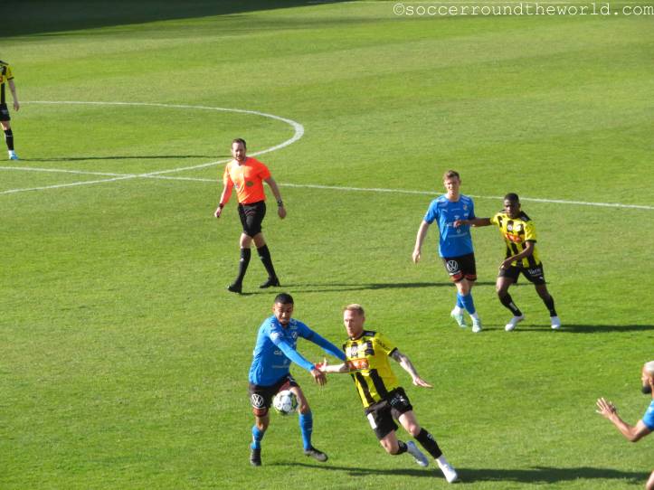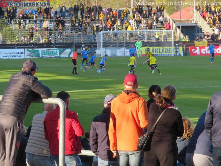 Im Gegensatz zu den letzten beiden Tagen kommt heute in Ansätzen sogar wieder Atmosphäre auf, besonders laut werden aber beide Fanlager nicht. Das mag durchaus auch daran liegen, dass die Partie zwar umkämpft aber nicht besonders hochklassig ist. Der einzige Treffer fällt bereits in der 17. Minute und entsteht mit tatkräftiger Unterstützung durch den Torwart der Gäste. In der zweiten Hälfte kann sich Halmstad zwar zusehends bessere Chancen erarbeiten, das 2:0 gelingt aber nicht mehr.