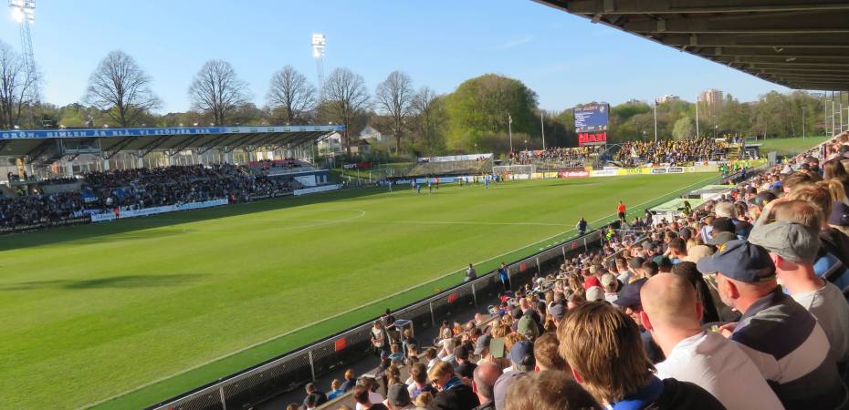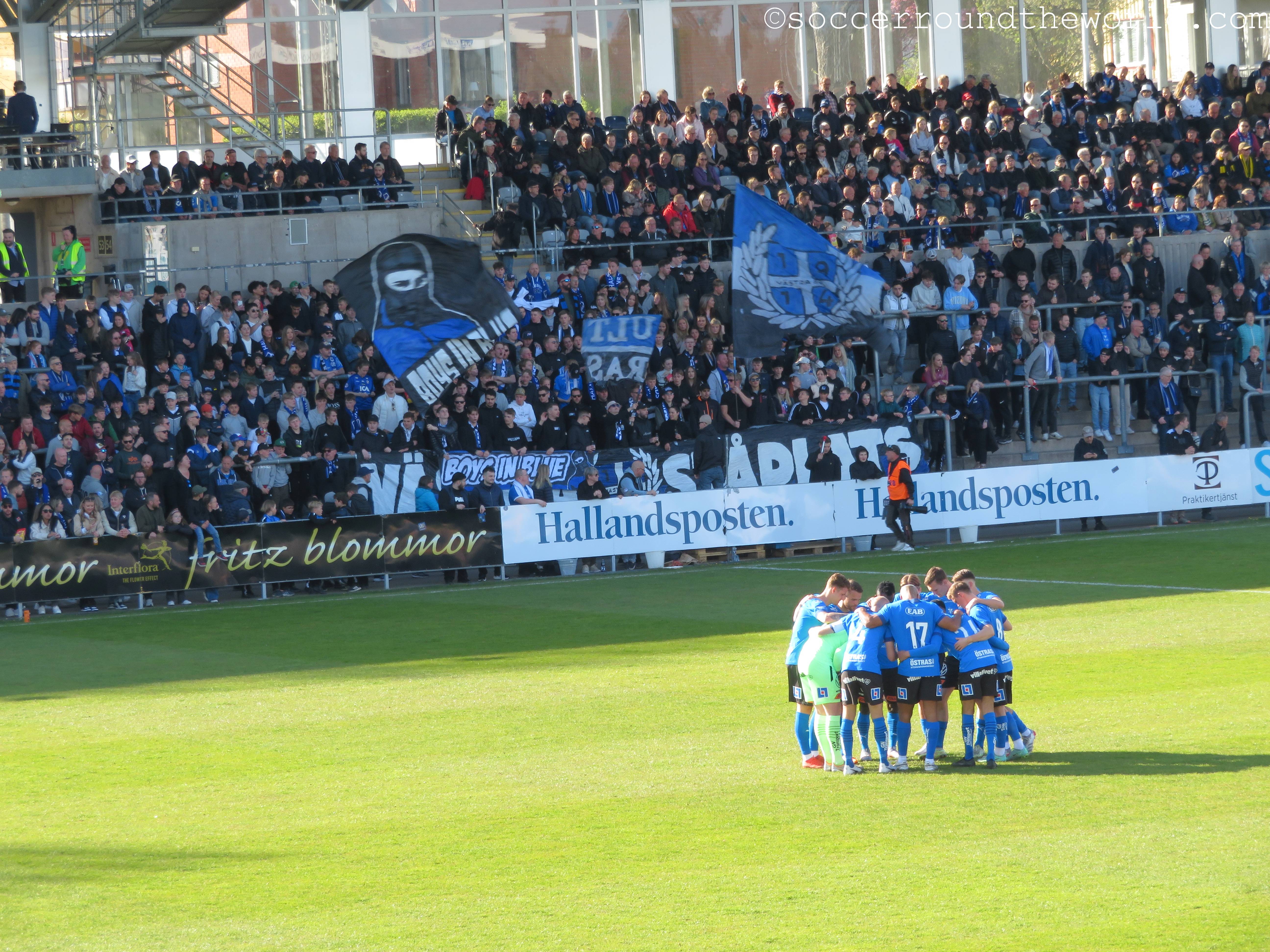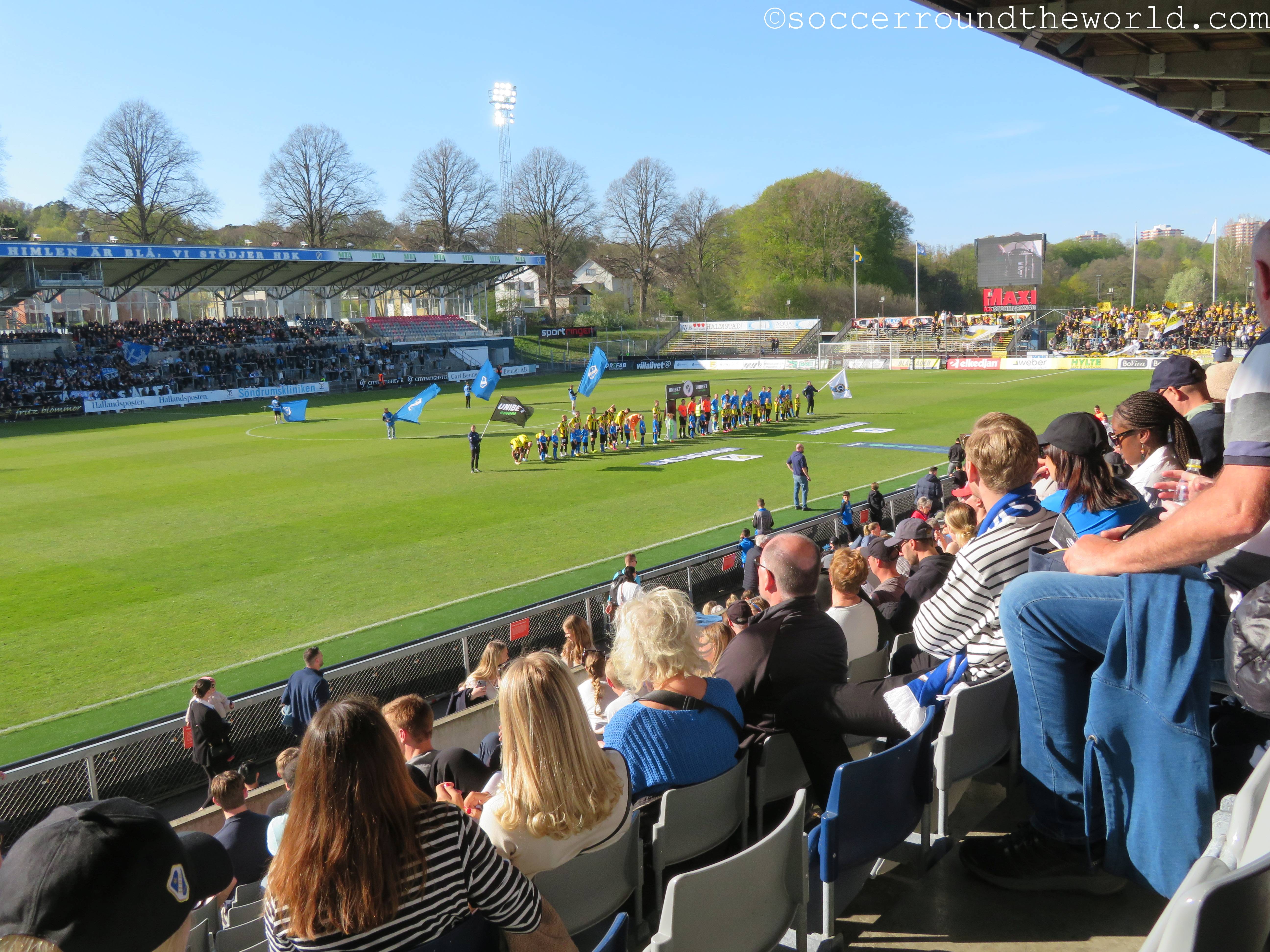 Litt ich in den letzten Tagen noch an dem doch eher kühlen Wind, so ist es mir heute fast schon zu heiß: Im rund zwei Stunden von Malmö entfernt gelegenen Halmstad erwartet mich der erste richtige Frühlingstag auf meiner Reise durch Schweden. Zudem bin ich heut auch erstmals bei einem Spiel, das halbwegs viele Zuschauer anlockt.