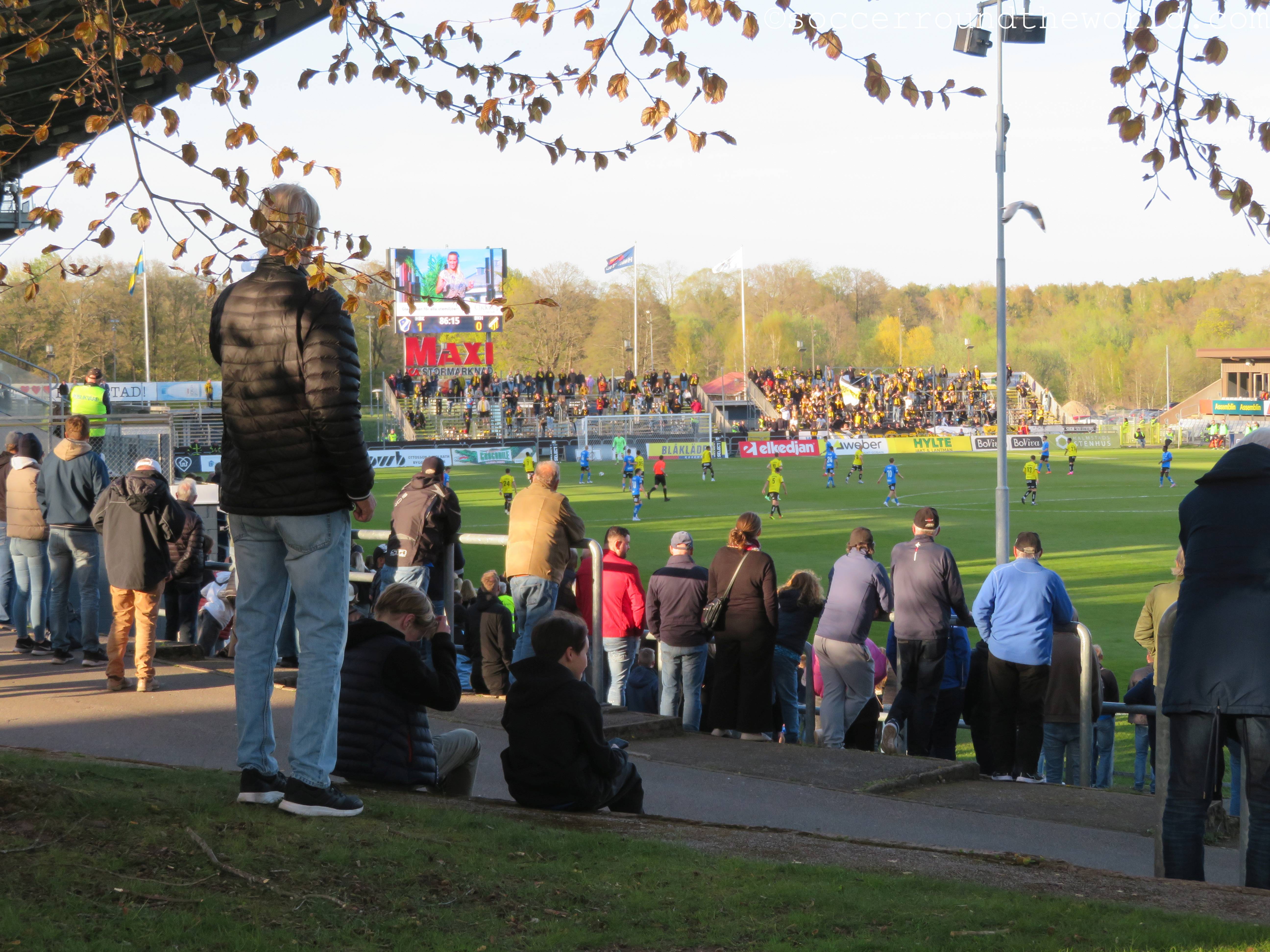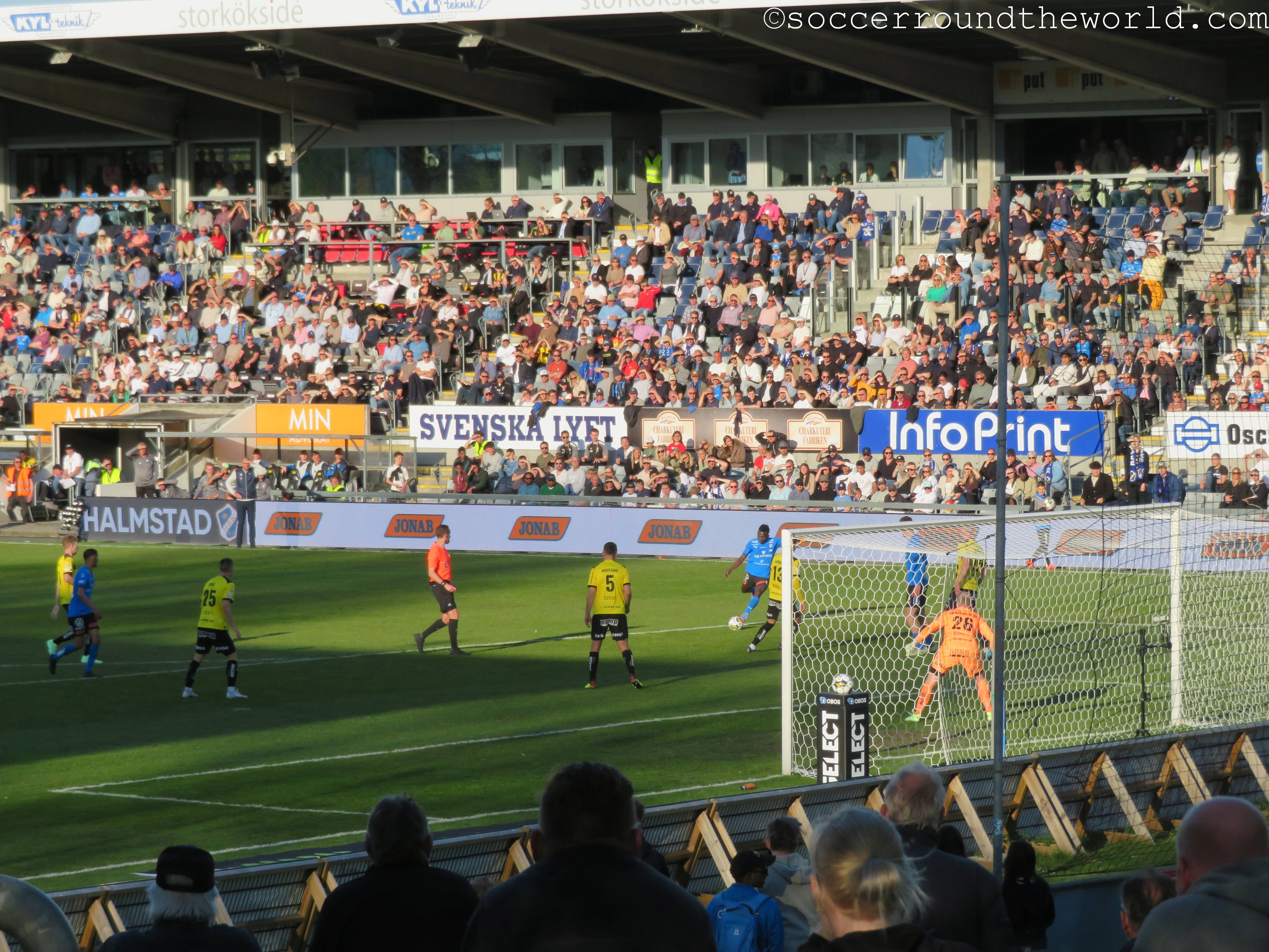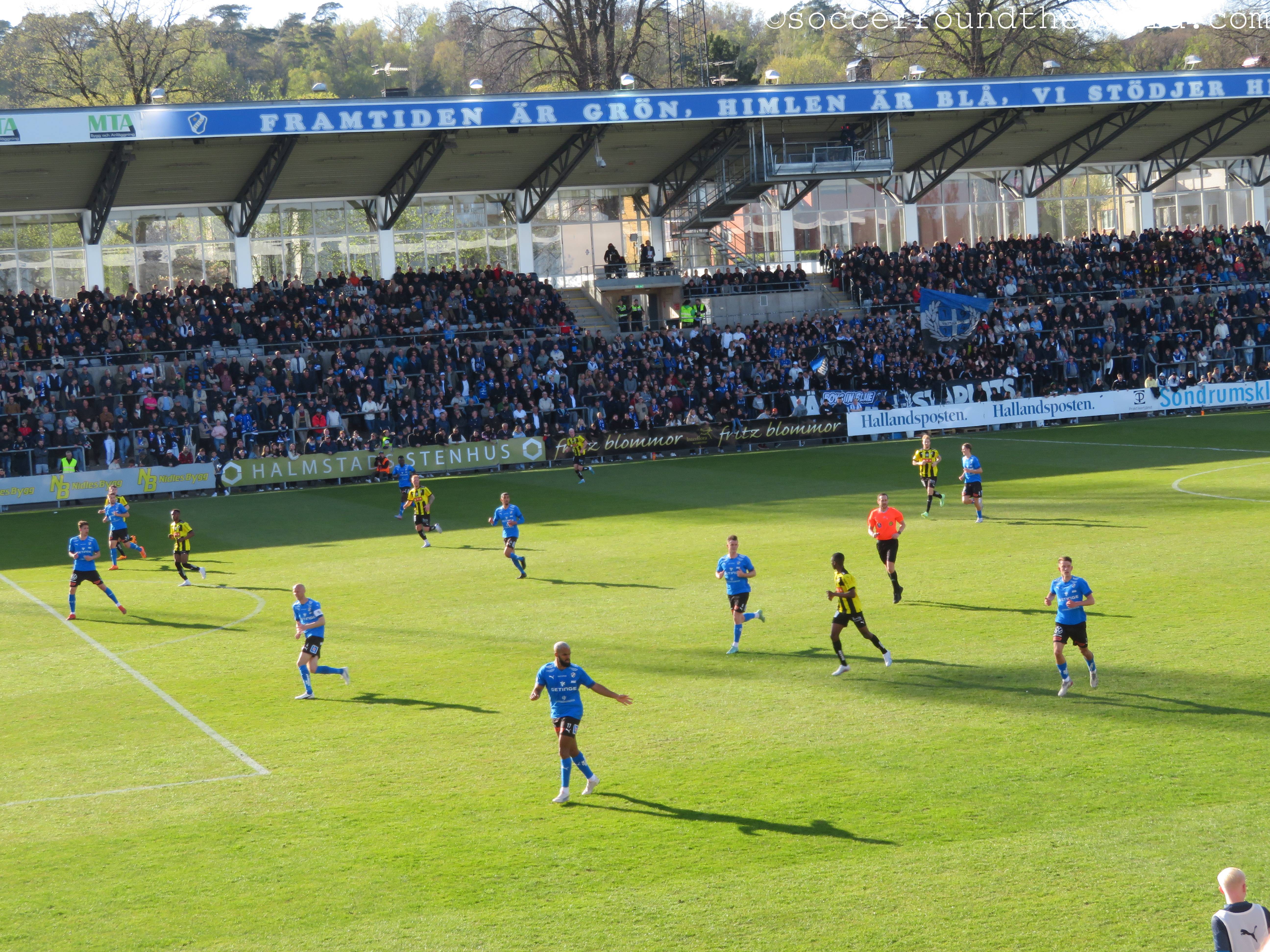 Im Gegensatz zu den letzten beiden Tagen kommt heute in Ansätzen sogar wieder Atmosphäre auf, besonders laut werden aber beide Fanlager nicht. Das mag durchaus auch daran liegen, dass die Partie zwar umkämpft aber nicht besonders hochklassig ist. Der einzige Treffer fällt bereits in der 17. Minute und entsteht mit tatkräftiger Unterstützung durch den Torwart der Gäste. In der zweiten Hälfte kann sich Halmstad zwar zusehends bessere Chancen erarbeiten, das 2:0 gelingt aber nicht mehr.