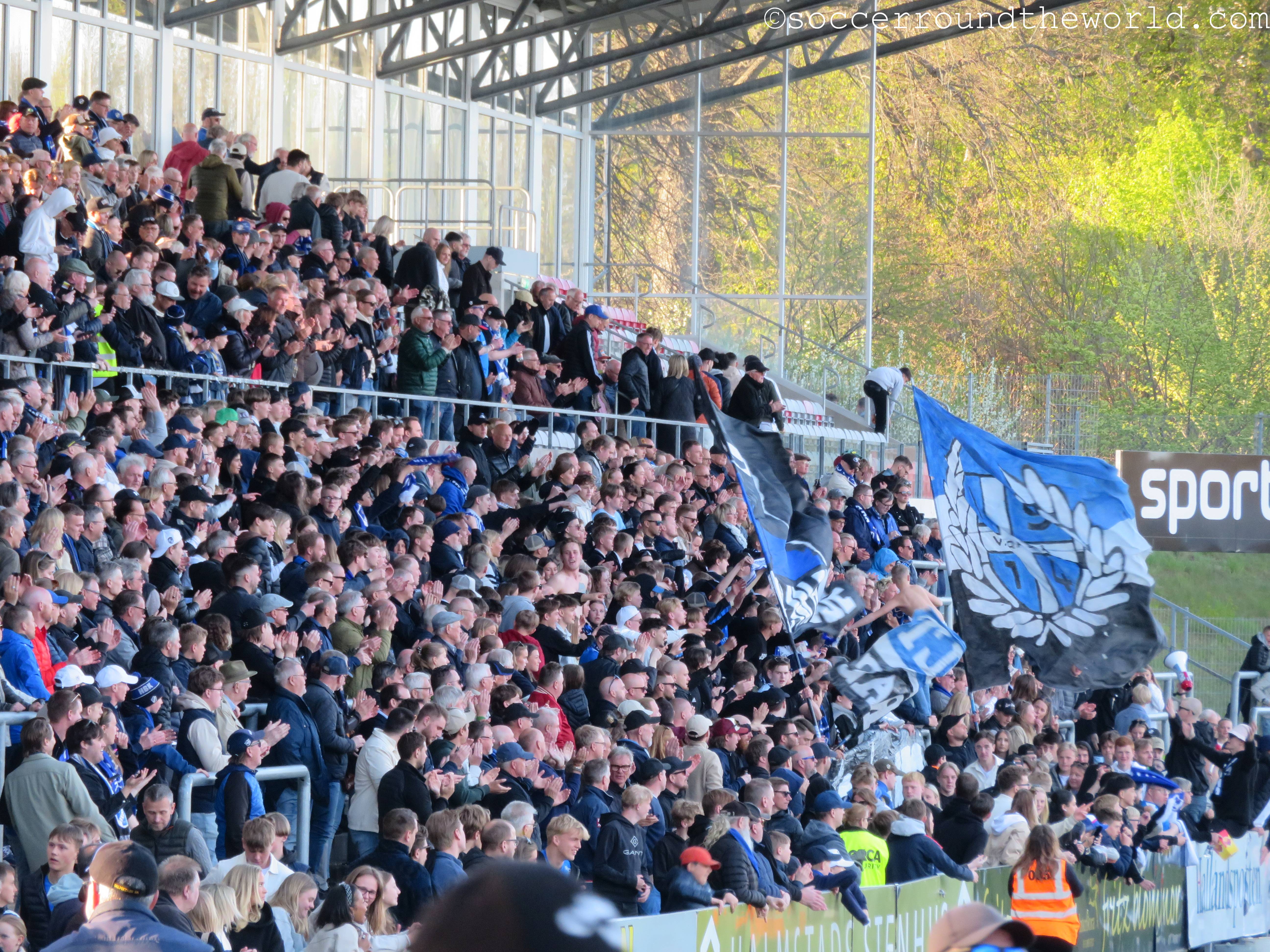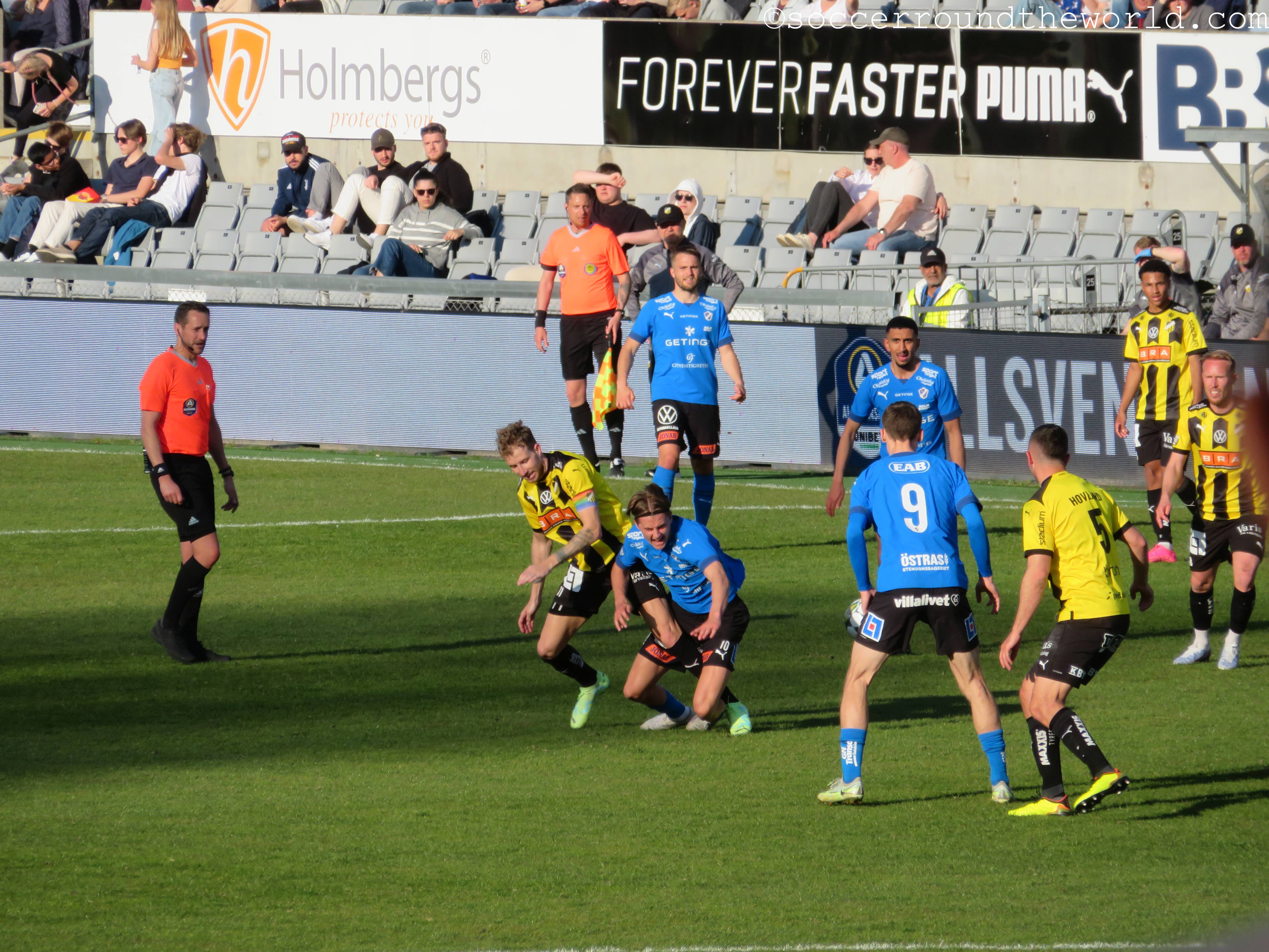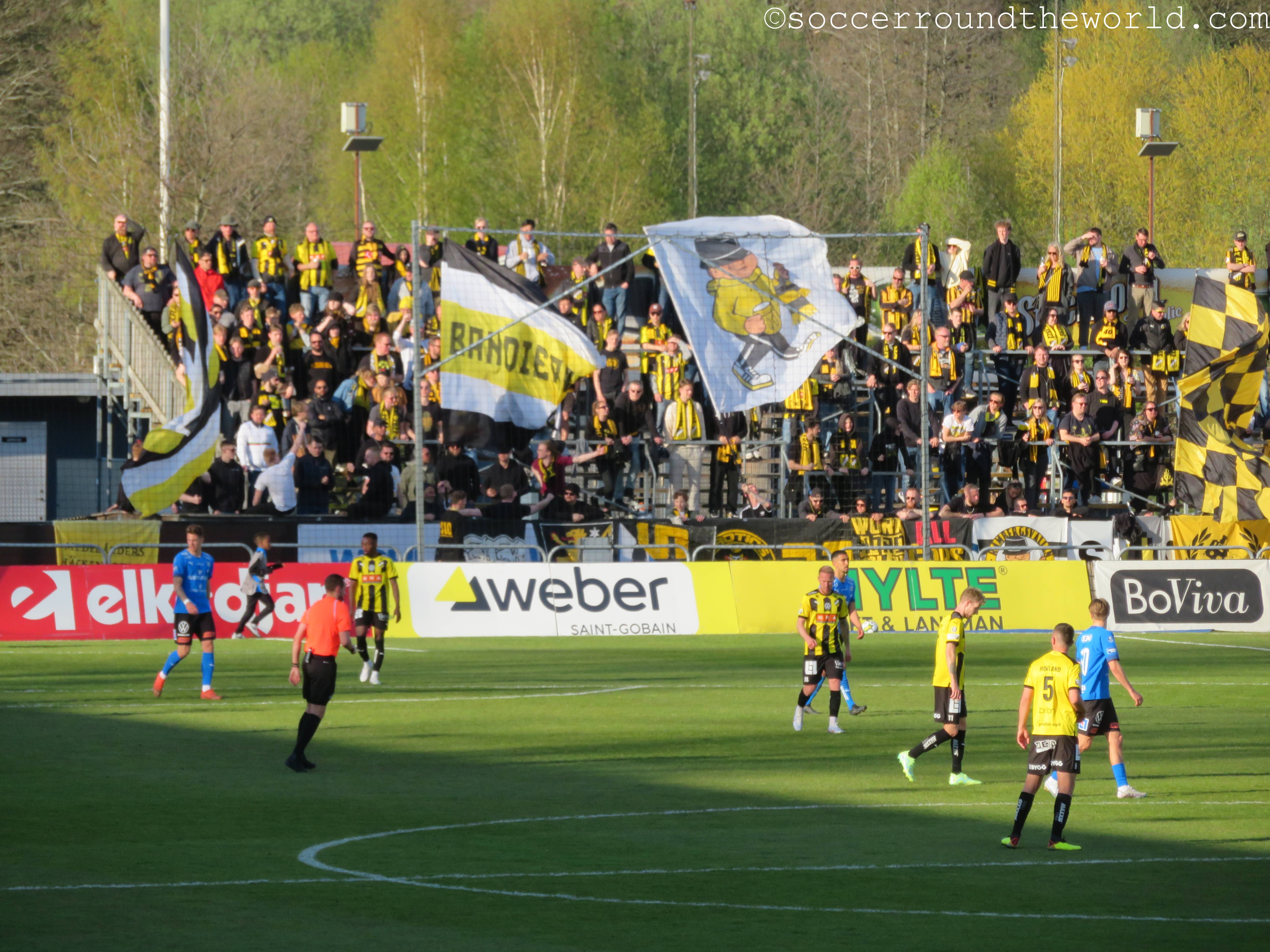 Im Gegensatz zu den letzten beiden Tagen kommt heute in Ansätzen sogar wieder Atmosphäre auf, besonders laut werden aber beide Fanlager nicht. Das mag durchaus auch daran liegen, dass die Partie zwar umkämpft aber nicht besonders hochklassig ist. Der einzige Treffer fällt bereits in der 17. Minute und entsteht mit tatkräftiger Unterstützung durch den Torwart der Gäste. In der zweiten Hälfte kann sich Halmstad zwar zusehends bessere Chancen erarbeiten, das 2:0 gelingt aber nicht mehr.