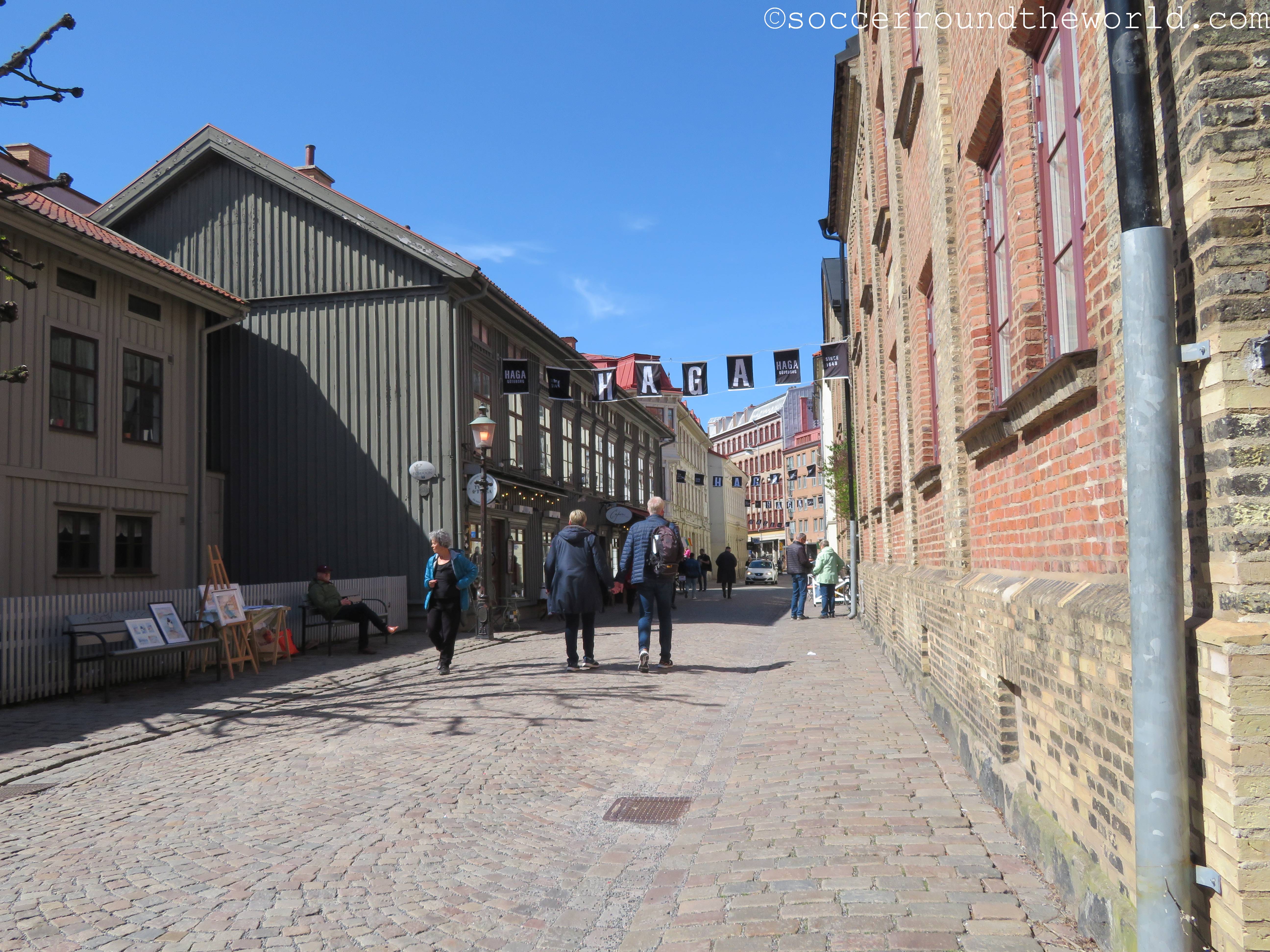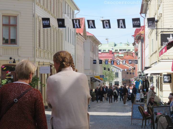 Vor dem Spiel darf ich heute noch das früher eher verruchte und für seine schlechten Lebensbedingungen bekannte Viertel Haga erkunden. Hier dominieren Häuser im aus Göteborg stammenden „Gouverneursstil“: Fundament und Erdgeschoss aus Stein, darüber zwei Stöcke aus Holz. Der Aufstieg des Viertels erfolgte nach umfangreichen Renovierungen in den 80er-Jahren. Heute lockt es mit seinen vielen Kunstgeschäften, Cafes und hippen Boutiquen.