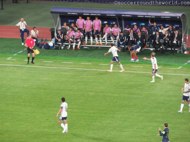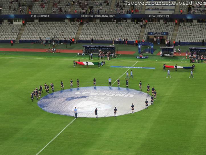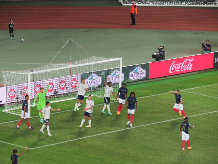 In manchen Winkeln der Arena sind auch deklarierte Anhänger von „Les Bleus“ auszumachen, der Rest besteht aber offenbar aus Neutralen. Diese entscheiden sich auch über die gesamten 90 Minuten nicht wirklich für eine der beiden Mannschaften, sondern jubeln und leiden mit dem Spielverlauf mit. Eine abwechslungsreiche erste Halbzeit bringt je ein Tor auf beiden Seiten, was von den Rängen durchaus mit Wohlwollen goutiert wird. Die zweite Hälfte sieht lange nach einem klassischen Halten des Ergebnisses aus, bis ein kapitaler Abwehrfehler der Italiener den Franzosen doch noch das 2:1 ermöglicht. Die erst spät einsetzende Schlussoffensive bringt außer dem aberkannten vermeintlichen Ausgleich nichts mehr ein.
