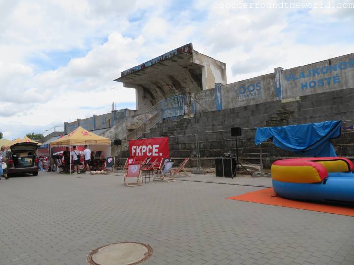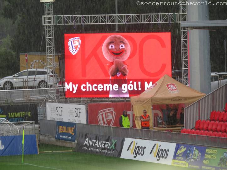 Ich war schon einmal in Pardubice, damals allerdings unter etwas anderen Voraussetzungen. Der in dieser Form erst seit 2008 existierende Lokalverein klopfte vor fünf Jahren in einem Kleinststadion gerade an die Tür der ersten Liga. Mittlerweile hat er diese erreicht, eine neue Heimstätte errichtet – und ein wahres Monster von einem Maskottchen herangezüchtet.