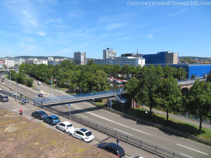 So richtig überzeugend klingt die Rezeptionistin nicht, als sie uns auf das Sightseeing in der Stadt vorbereitet. Ein paar nette Stellen habe Saarbrücken schon, die sie uns auch alle auf der Karte zeigt. Aber soooo besonders seien diese nun auch wieder nicht, und zudem auch alle sehr schnell abgegrast. Zur Ehrenrettung aller Saarländer: Sie selbst kommt aus NRW und ist selbst erst seit ein paar Jahren beruflich in diesem Landstrich. Dennoch können wir ihr nach einem Rundgang durch die Stadt auch nicht so wirklich widersprechen. Denn Saarbrücken wartet zwar mit einigen historischen Gebäuden auf, die durchaus zu gefallen wissen. Aber einen überwältigenden Eindruck hinterlässt es nun wirklich nicht. So wirklich störend ist zudem die Stadtautobahn, die am eigentlich idyllischen Saarufer verläuft und die Stadt brutal entzweit.