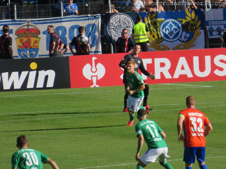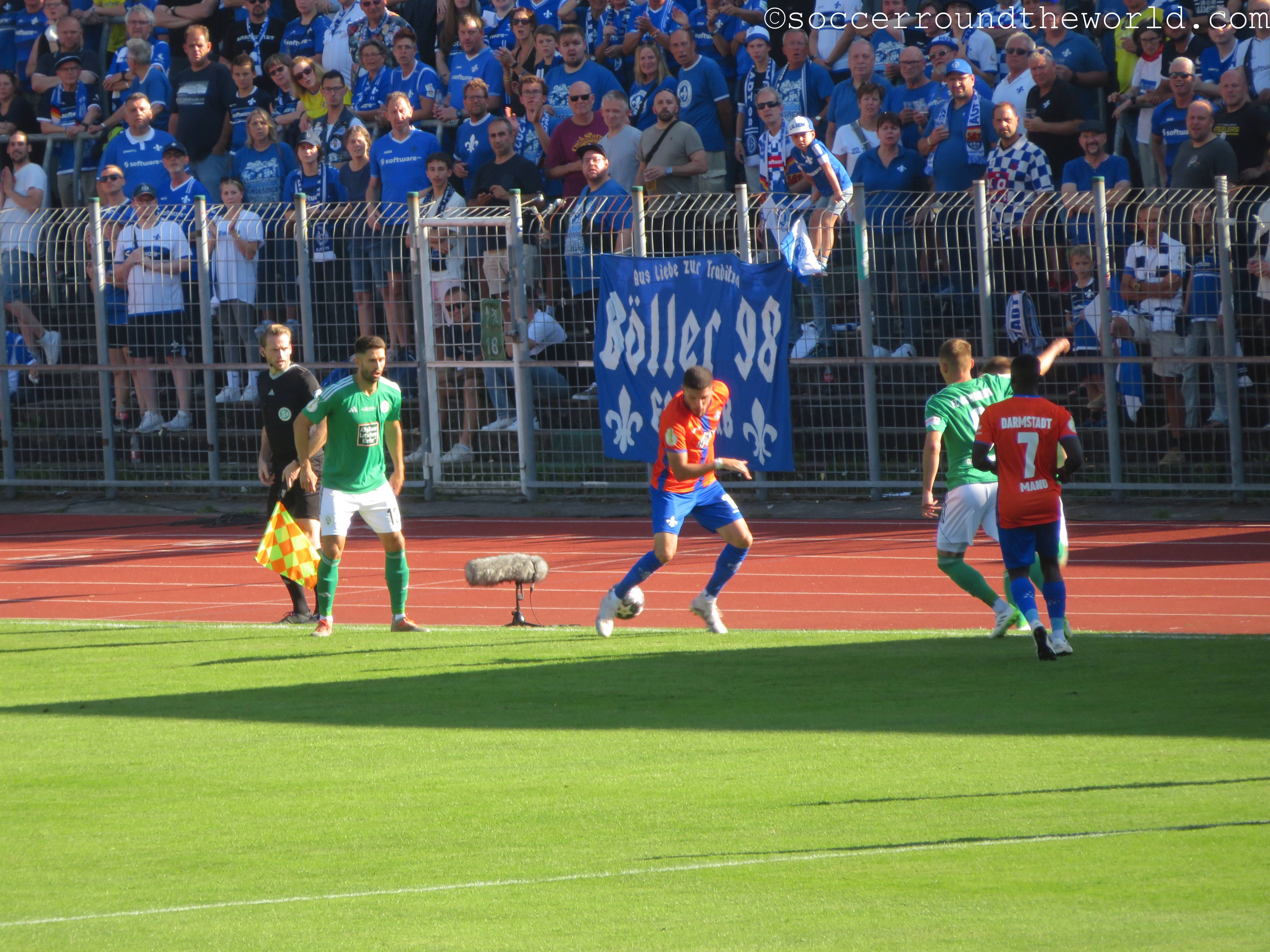 Das Spiel kann kurz zusammengefasst werden: Die Homburger Gastgeber (momentan in der viertklassigen Regionalliga beheimatet) spielen gegen einen extrem ideenlos auftretenden Bundesligaaufsteiger über 90 Minuten intelligent und beherzt und siegen völlig verdient auch in dieser Höhe. Der Höhepunkt des Darmstädter Elends ist ein bereits in der Schlussphase vergebener Elfer, der zumindest das Ergebnis noch beschönigen hätte können.