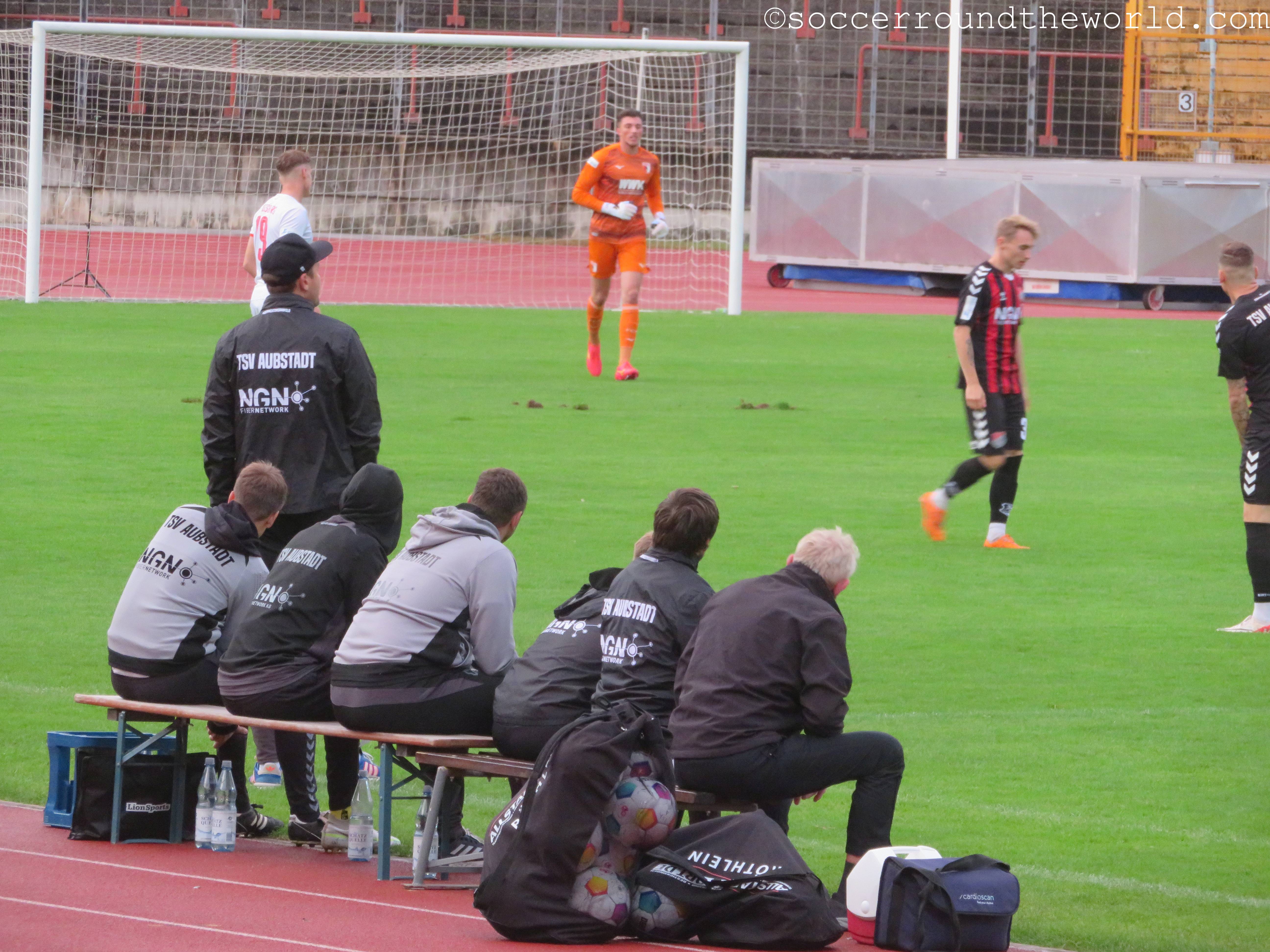 Die Gastgeber zerlegen heute den Tabellendritten der Regionalliga Bayern bereits in der ersten Halbzeit nach allen Künsten. Immer wieder enteilen die jungen Augsburger ihren Bewachern und schließen fünf Mal souverän ab. Die Mitarbeiter an der manuellen Anzeigentafel haben also einiges zu tun. Wesentlich beruhlicher wird hingegen der zweite Durchgang: Aubstadt tritt nun geordneter auf, die Augsburger spielen nicht mehr derart konzentriert. Eine Ergebniskorrektur gelingt den Gästen allerdings nicht mehr.