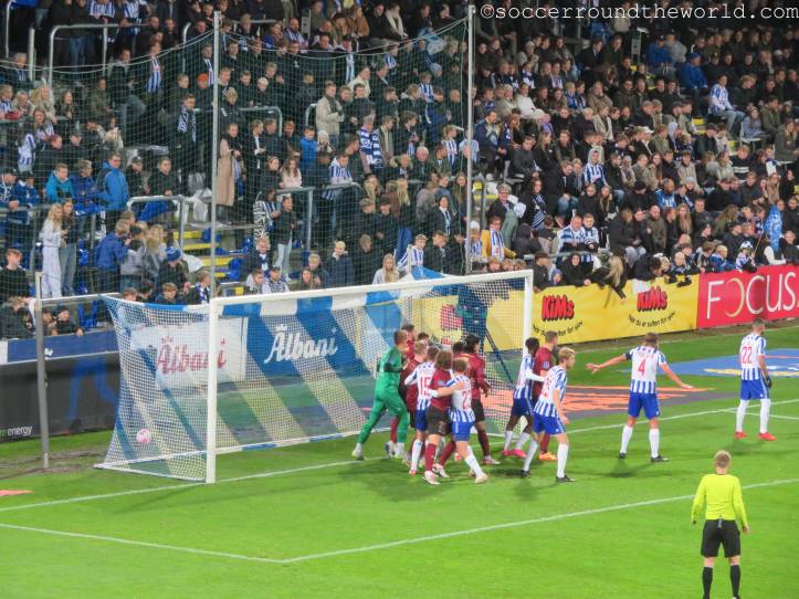 Und auch heuer dürfte der Verein wohl eher nicht um die oberen Plätzen mitspielen können, da helfen auch die kämpferischen Trainingsleiberl mit Odins Gesicht nur wenig. Im Spiel nach vorne wirken die Gastgeber einfallslos und träge, zu viel hängt vom Zufall ab. Der Führungstreffer der Gäste wirkt zwar schwer irregulär (Foul am Torhüter), doch der VAR bestätigt das 0:1 zu meiner Überraschung und zum Entsetzen der heimischen Fans. Eine längere Prüfung muss dann auch der Ausgleich kurz vor der Pause überstehen – warum auch immer, und er wird schließlich auch gegeben. Die zweiten 45 Minuten sind dann wirklich mühsam, bis Midtjylland noch einmal einen Gang höher schaltet und fast im Minutentakt Chancen kreiert. Aus einer fällt dann auch der Siegestreffer.