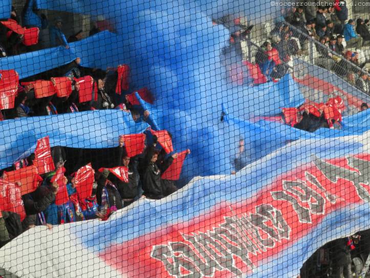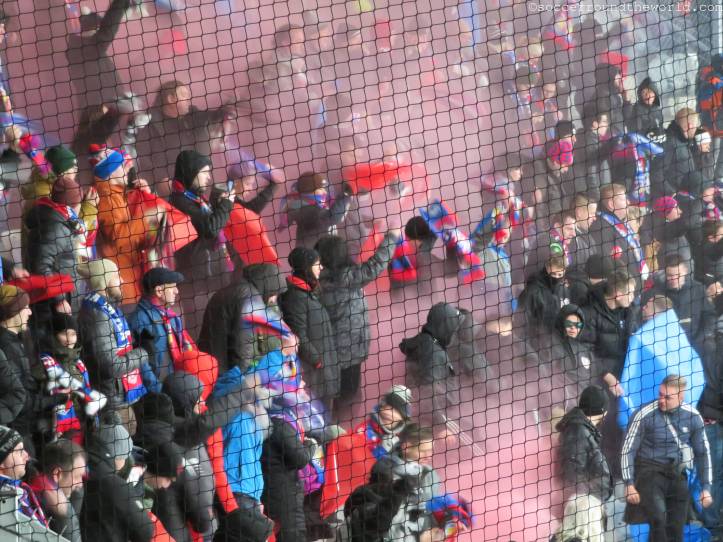 Wirklich in Ekstase geraten die Heimfans nur bei der frühen Führung ihrer Mannschaft, die eher in eine Druckphase des Gästeteams fällt. Danach bekommen die Schwarz-Weißen das Match tatsächlich auch mehr unter ihre Kontrolle. Der immer wieder einsetzende Schneefall trägt zudem zusätzlich dazu bei, dass die Angriffe von Viktoria nicht mehr sonderlich energisch vorgetragen werden. Dennoch gelingt in der zweiten Hälfte dann noch der – insgesamt auch wohlverdiente – Ausgleich, mit dem wohl auch das in der Tabelle eher im unteren Drittel befindliche Heimteam leben kann.