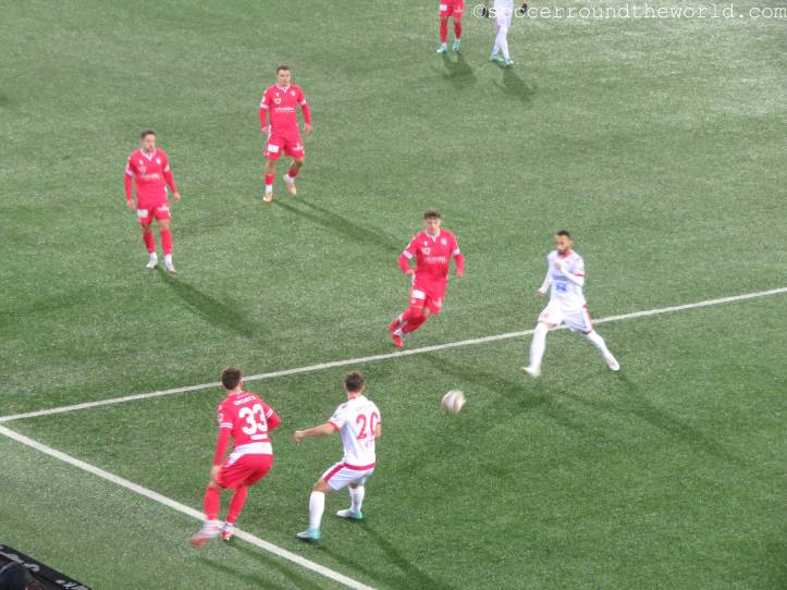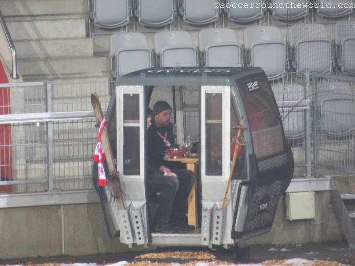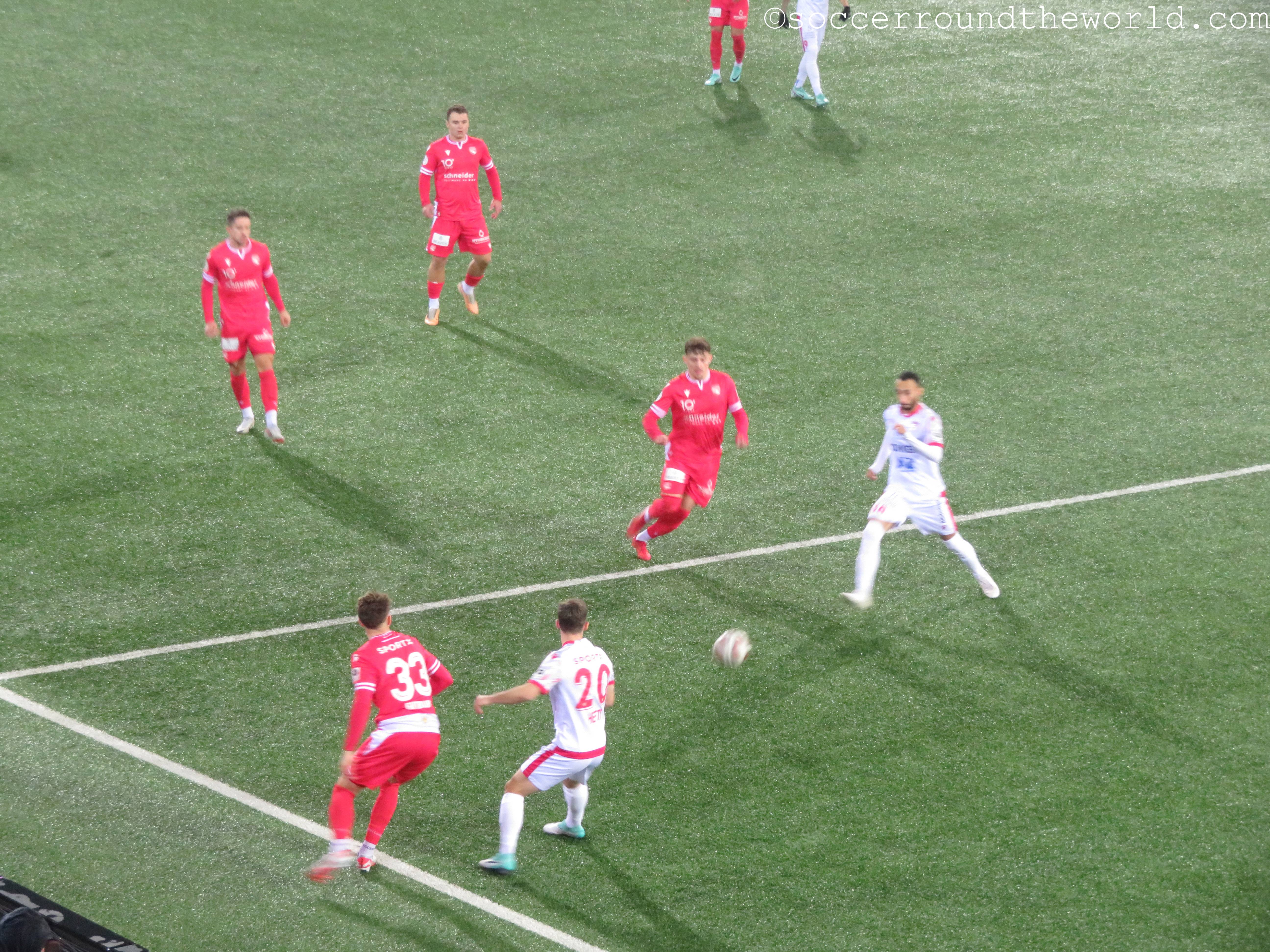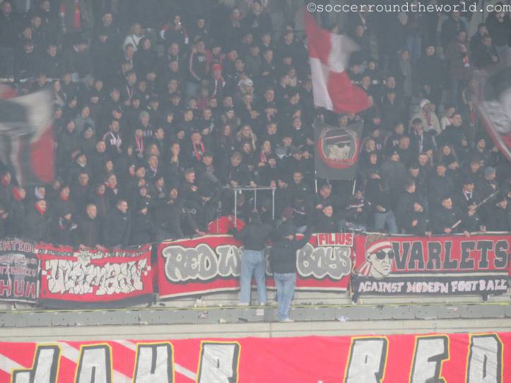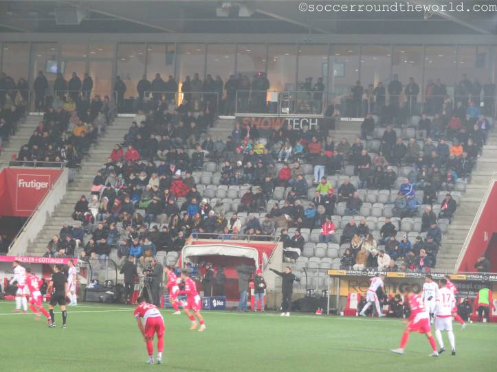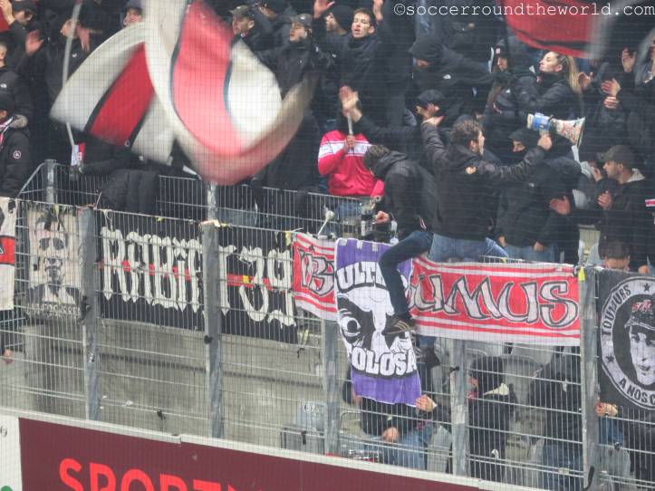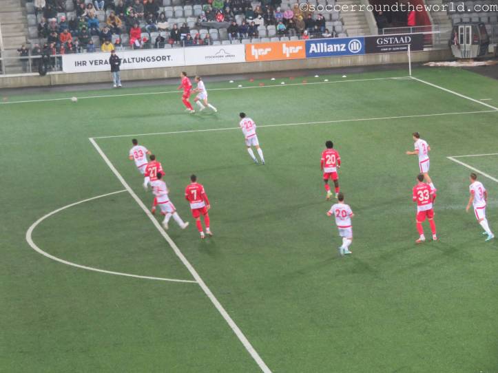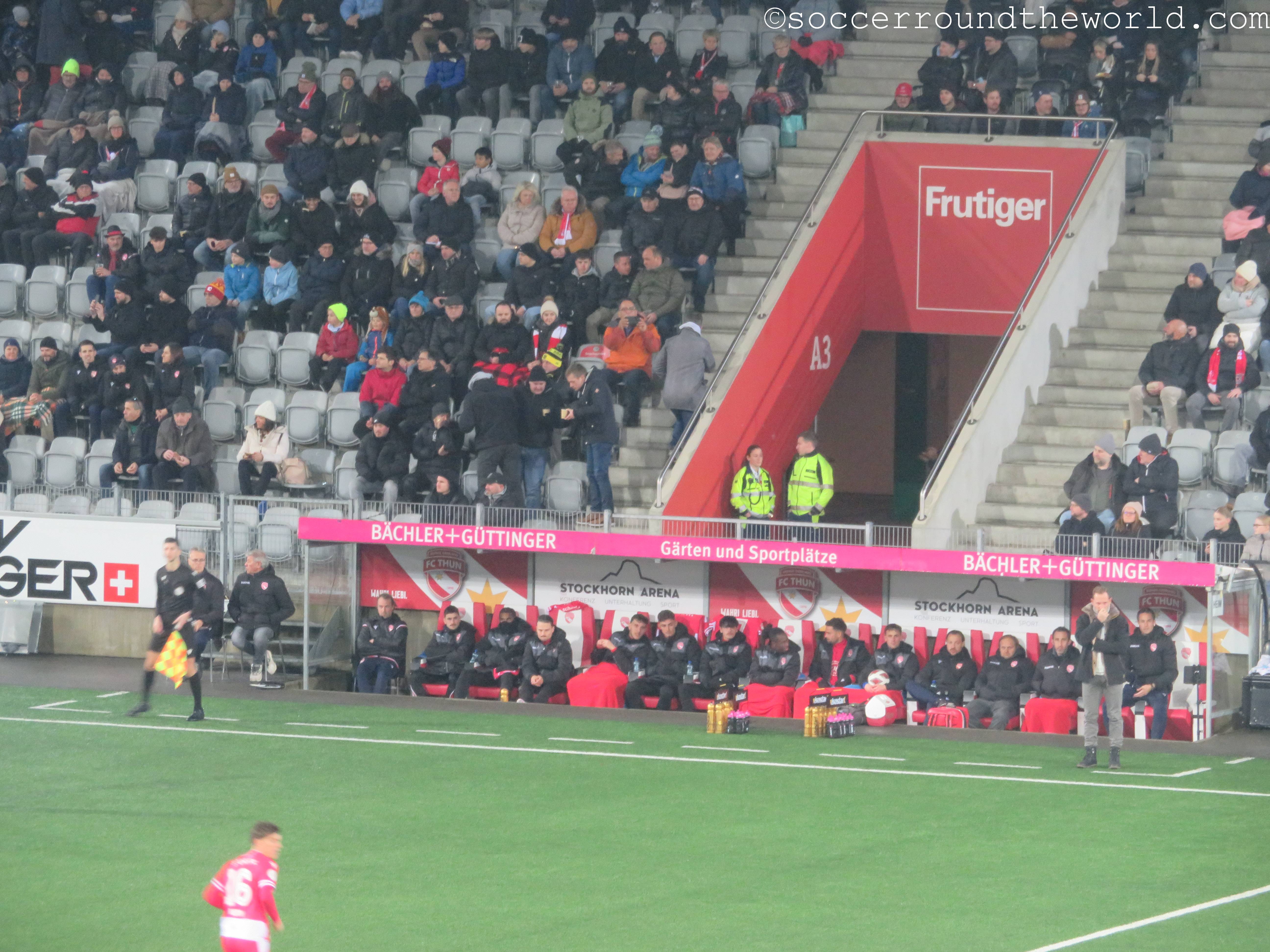 Vom gesanglichen Repertoire und der Lautstärke haben meiner Meinung nach eindeutig die französischsprachigen Anhänger aus Sion die Nase vorne – auch wenn sie als Tabellenführer mit dem 1:1 sicher auch die meiste Freude haben können, während Thun mit dem Remis die Übernahme der Ligaspitze verabsäumt. In beiden Kurven wird allerdings ein beeindruckender pyrotechnischer Aufwand betrieben, wobei mit den Bildern davon ganze Fotoalben gefüllt werden können. Gerade in Hälfte zwei lenken sie damit immerhin vom doch eher eintönigen Geschehen auf dem Spielfeld ab.