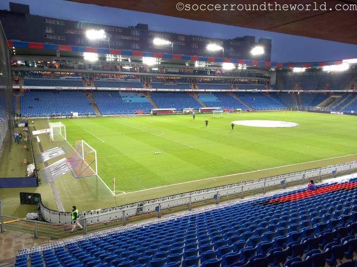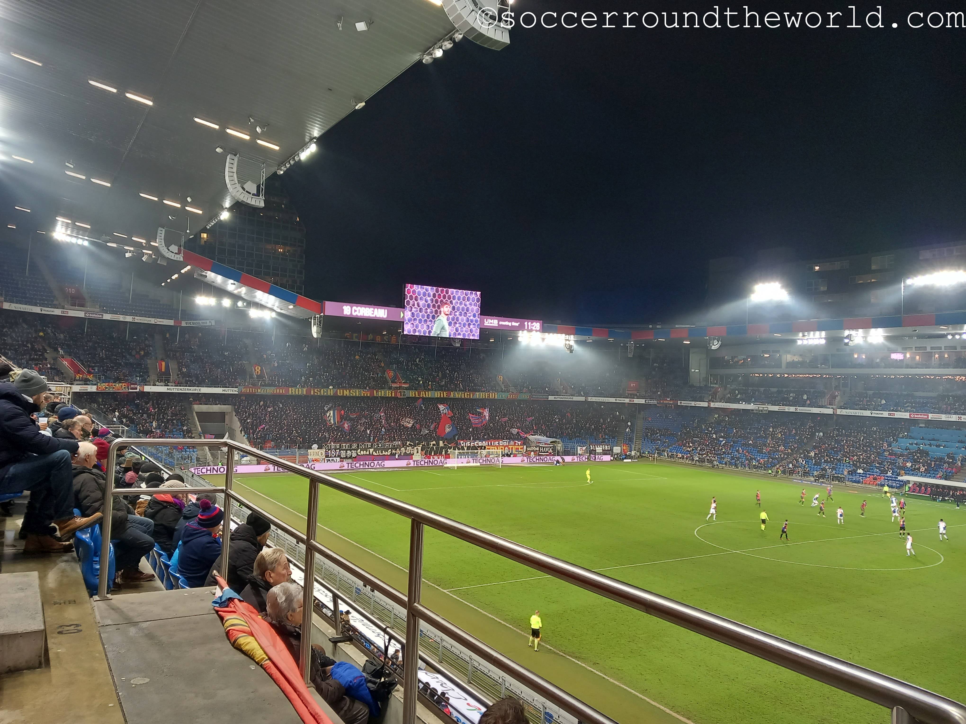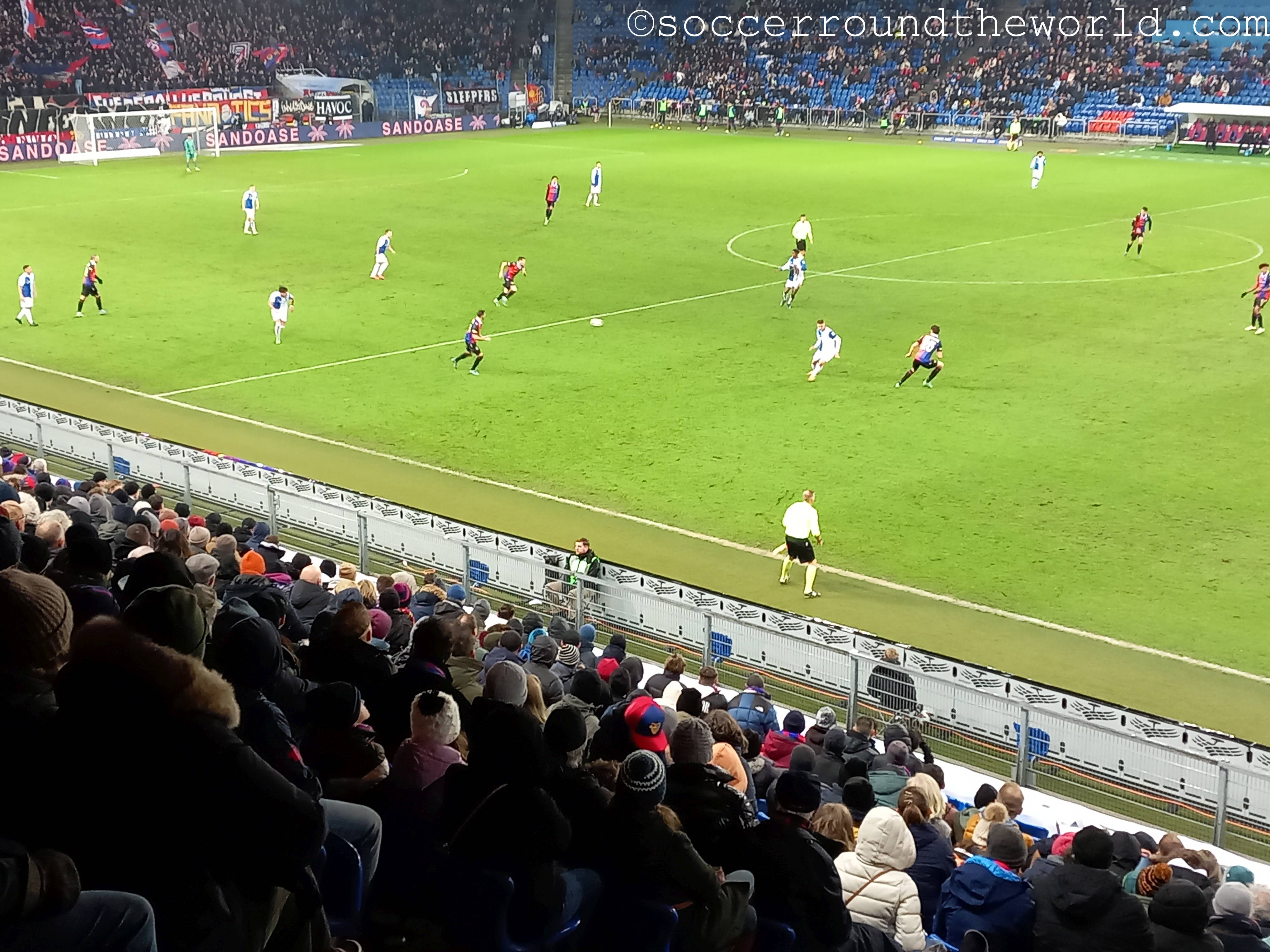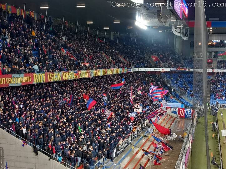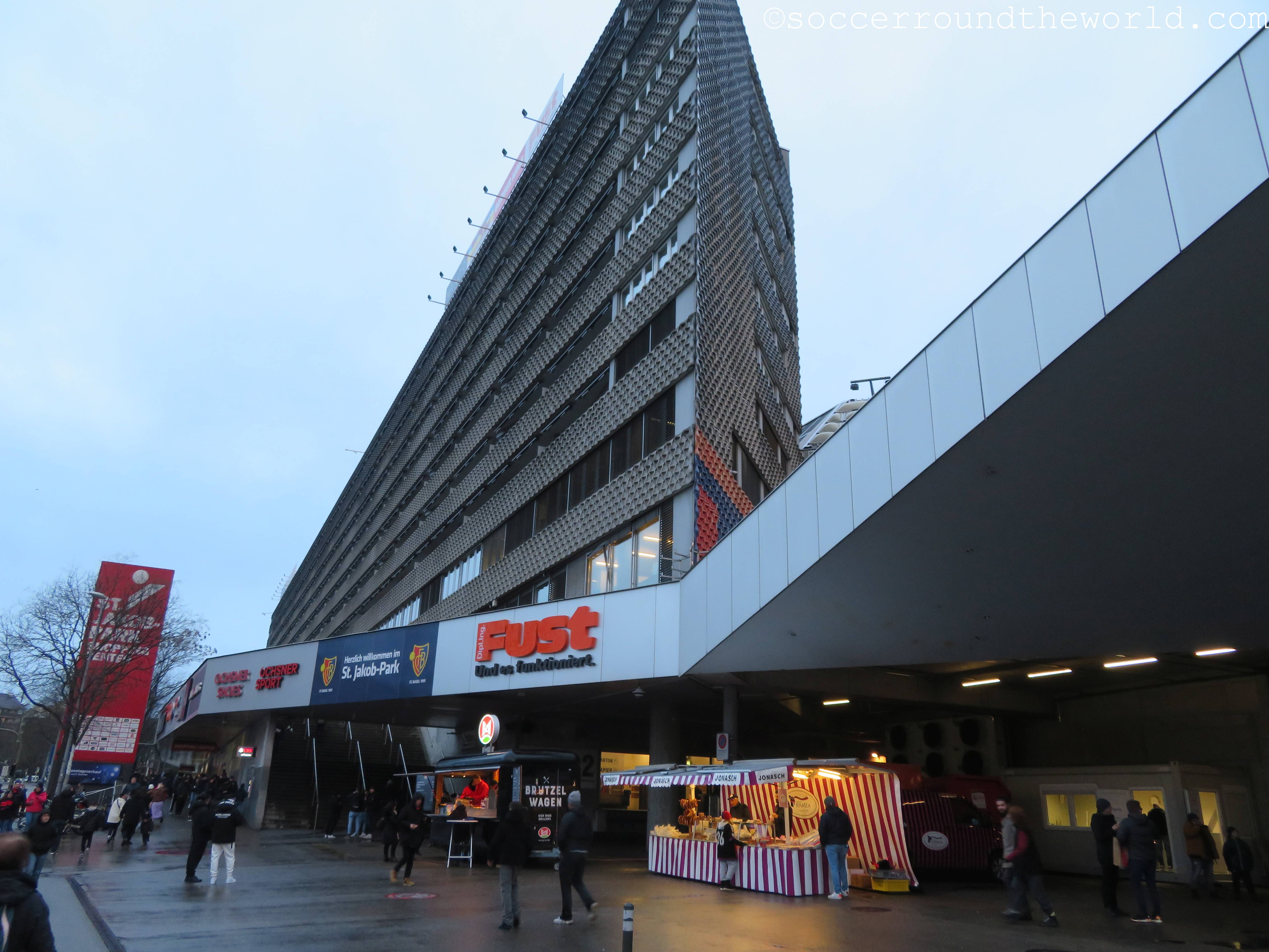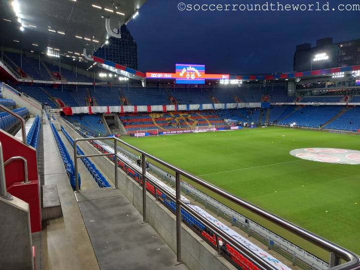 Der umgangssprachlich „Joggeli“ genannte St. Jakob-Park ist von außen eher nicht als Stadion erkennbar, dafür sorgt ein direkt davor errichtetes großes Einkaufzentrum samt Büroturm. Eine ähnlich erschütterte Fassade nimmt mein Gesicht bei der Eingangskontrolle ein, wo mir ein Ordner mitteilt, dass meine (Kompakt)Kamera nicht erlaubt sei. Zwar spricht die Stadionordnung ausdrücklich nur von „professioneller Fotoausrüstung“ und sieht ganz nebenbei bis heute auch noch eine zwingende Maskenpflicht vor. Als ich dies doch noch nachlese, hatte ich allerdings die kleine Fototasche bereits an einer Sammelstelle abgegeben. Dass ich danach fast nicht mehr ein zweites Mal durch die Einlasskontrollen komme, ist dabei nur noch als Treppenwitz zu betrachten.