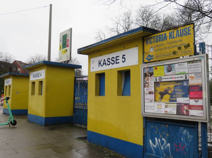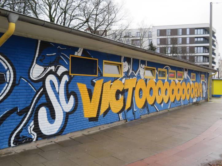 SC Victoria wurde 1895 gegründet und zählte am 28. Jänner 1900 zu jenen 86 Vereinen, die den DFB ins Leben riefen. Erfolgreiche Zeiten erlebte der Verein allerdings vor allem vor dem Zweiten Weltkrieg, seit der Saison 1953/54 ist kein erstklassiger Fußball mehr im Stadtteil Eppendorf zu sehen. Das spiegelt sich auch im Zuschauerinteresse wieder. An diesem nasskalten Februartag verlieren sich nur knapp über 100 Menschen im an sich 8.000 Zuschauer fassenden Stadion. Rund 40 davon verlassen die „Victoria-Klause“, ein gemütlich warmes Vereinslokal im Inneren der Tribüne, die gesamten 90 Minuten nicht.