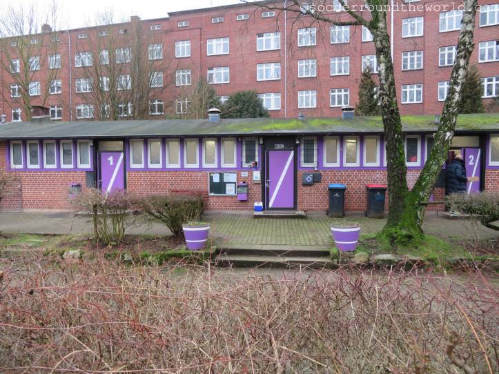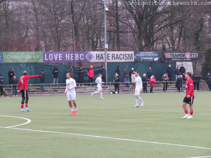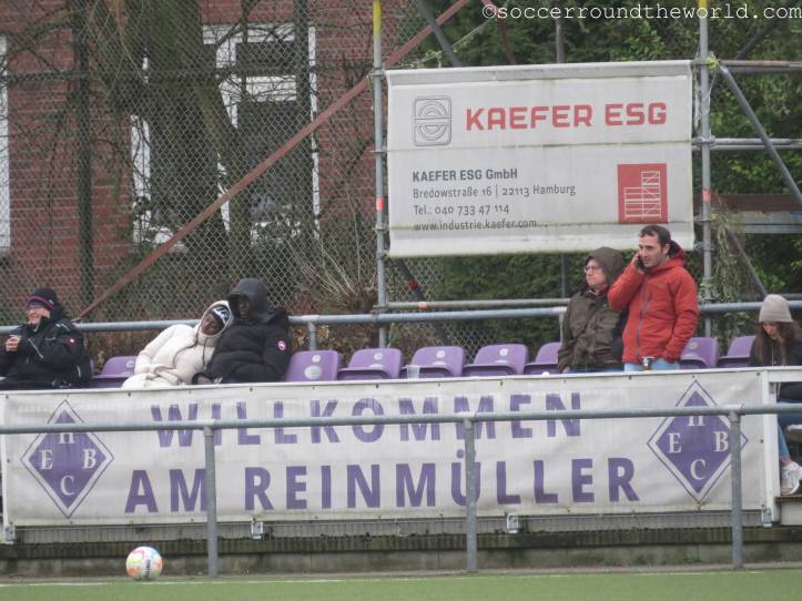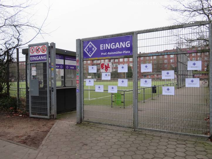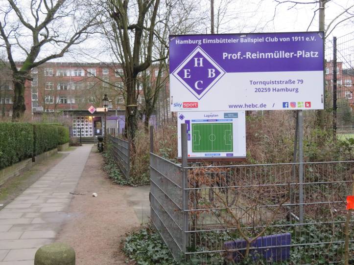 Der Hamburg-Eimsbütteler Ballspiel-Club (HEBC) wurde 1911 gegründet und spielt traditionell in violett-weiß. Die Heimstätte des Vereins, der Professor-Reinmüller-Platz, mag heute etwas unscheinbar wirken, hat aber in seiner Geschichte durchaus große Kracher erlebt. 1953 spielte der HEBC hier vor ausverkauftem Haus (heißt: über 5.000 Zuschauer) im DFB-Pokal gegen Werder Bremen.