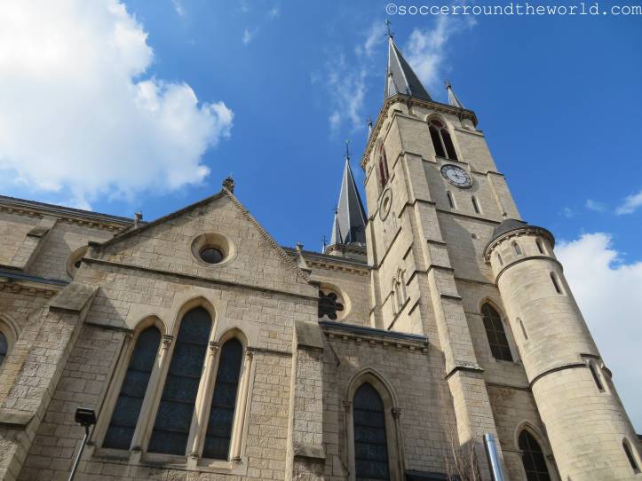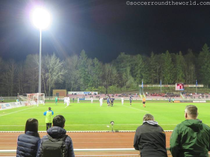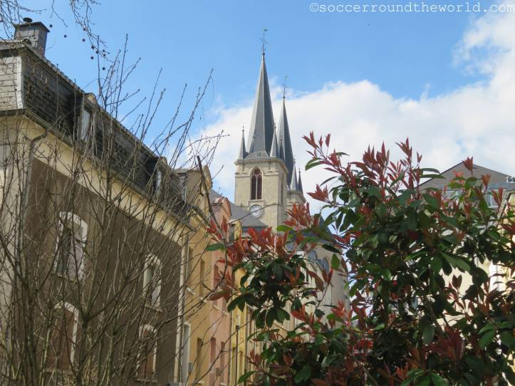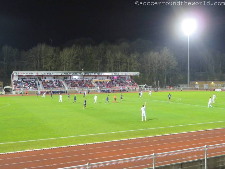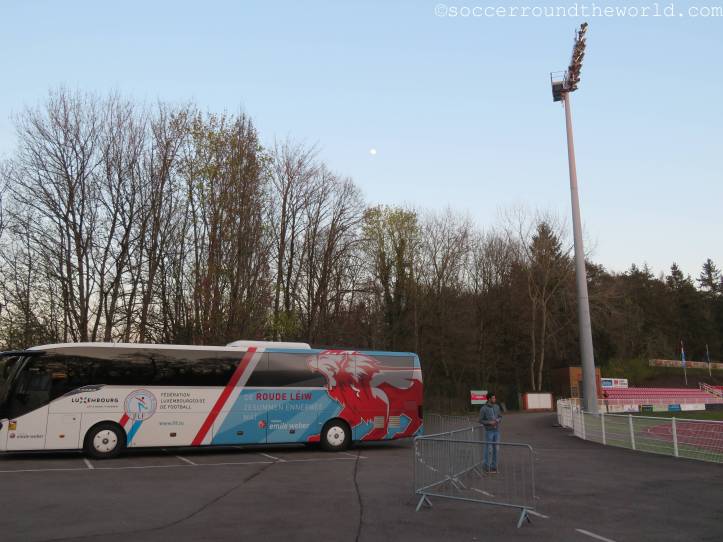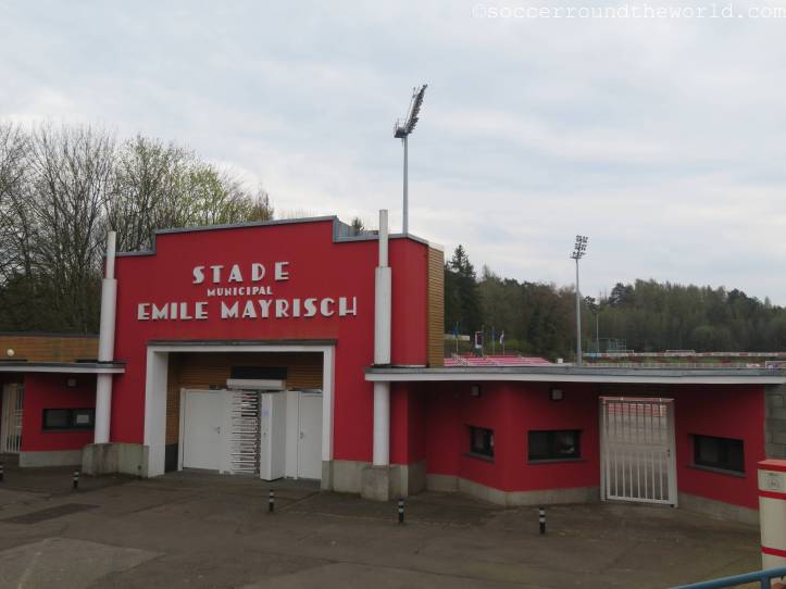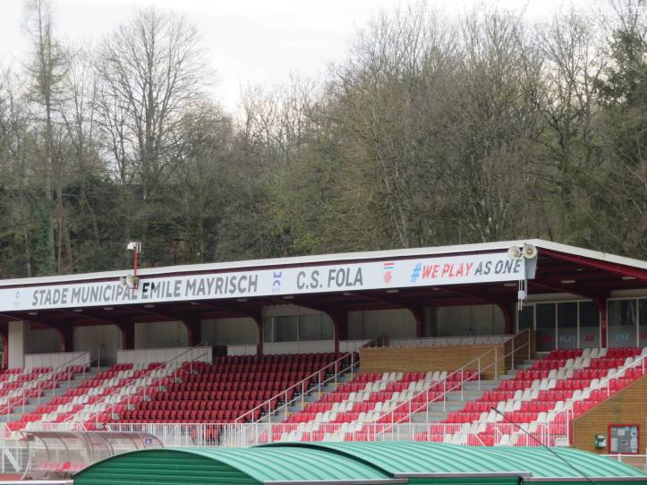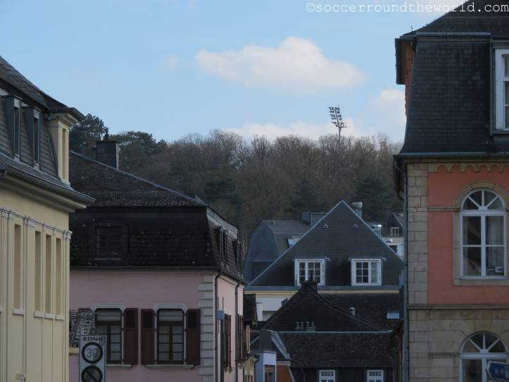 Das heutige Spiel in der EM-Qualifikation der U21-Mannschaften wird in der Heimstätte von CS Fola Esch ausgetragen. Neben dem Lokalrivalen AS Jeunesse ist dies die kleinere bzw. zumindest erfolglosere Mannschaft der Stadt. Direkt hinter dem Bahnhof liegt es auf einer kleinen Erhöhung, von der man einen schönen Ausblick auf das Zentrum und das Umland erhaschen kann.