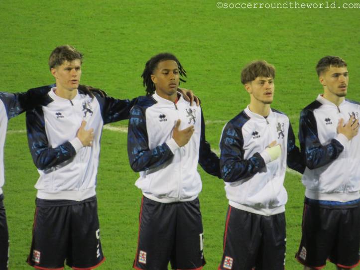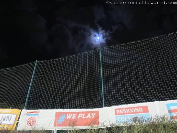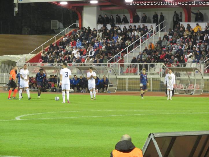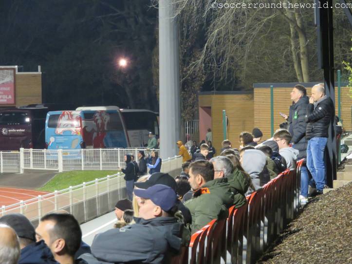 Zu Beginn sieht alles nach einem Heimspiel für die Gastmannschaft aus, denn die Fans aus Serbien nehmen (zumindest) gefühlt die gesamte Haupttribüne in Beschlag. Die luxemburgischen Anhänger sind hingegen fast ausschließlich auf der Gegengeraden zu finden. Allerdings habe ich die Rechnung dabei nicht mit der Rasselbande an Jugendspielern gemacht, die sich im Verlauf immer stärker Gehör verschafft und bald durchaus für die bessere Stimmung im Stadion sorgt.