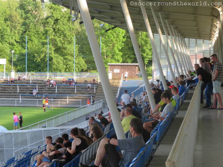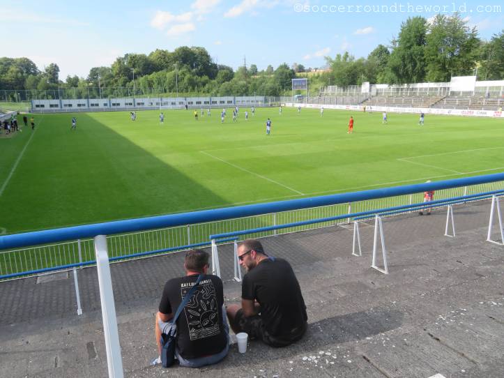 Das – mit Sicherheit! – schönste Stadion dieser Tour erlebe ich dann nach der direkten Weiterreise in der – höchstwahrscheinlich – schönsten Stadt des Wochenendes. Ganz will ich dabei aber die Wundertüte Tschechien noch nicht abschreiben, nachdem die Reise ja erst morgen zu Ende geht.