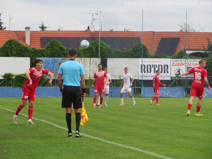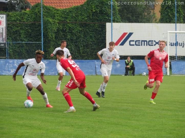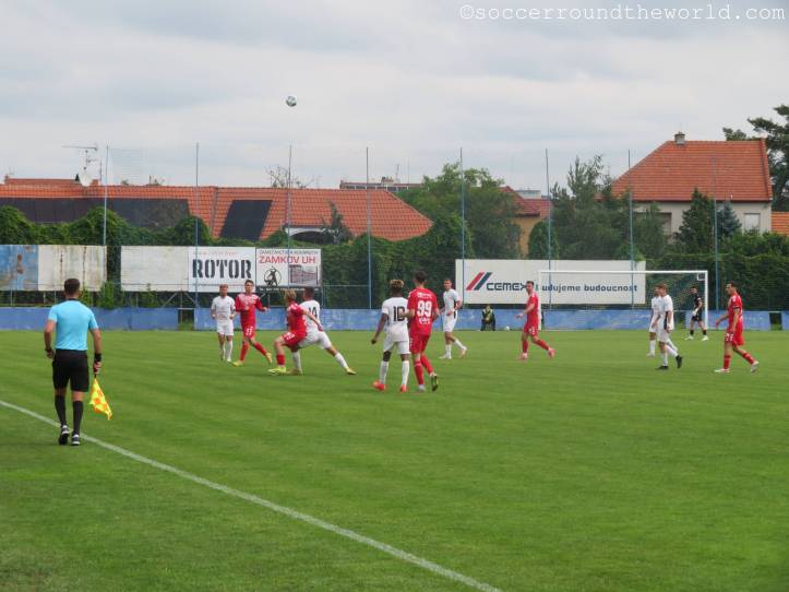 Auf dem Platz dominieren die Gastgeber bei extrem schwülen Bedingungen über lange Zeit, könnten bereits zur Halbzeit weit höher als 2:0 in Führung liegen. Doch gegen Ende des Spiels entschließt sich Start Brno doch noch, mit dem Fußballspielen zu beginnen und wird dafür mit dem Anschlusstreffer kurz vor Beginn der Nachspielzeit belohnt. Eine verzweifelte Schlussoffensive bringt dann allerdings mehr Konfusion und Hektik als den – gesamt völlig unverdienten – Ausgleich.