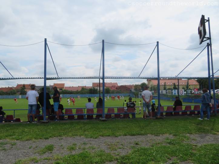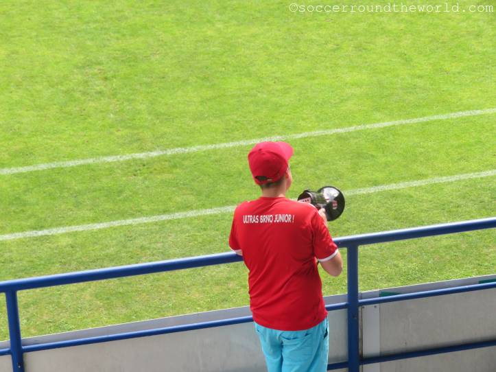 Neben dem heimischen FK bespielt auch die Zweitmannschaft des FC Slovacko das Stadion in Kunovice. Nur wenige Einheimische nutzen dies allerdings für einen sonntäglichen Fußballausflug. Dafür hat Start Brno einige seiner treuesten Anhänger mitgenommen – und leider auch seine nervigsten. Gut zwei Handvoll sind voll eingekleidet erschienen, machen über die gesamten 90 Minuten Stimmung (bzw. was sie dafür halten), die fünf (!) Megaphone sind allerdings doch etwas zu viel des Guten und heben die Qualität des Gesangs auch nicht automatisch.