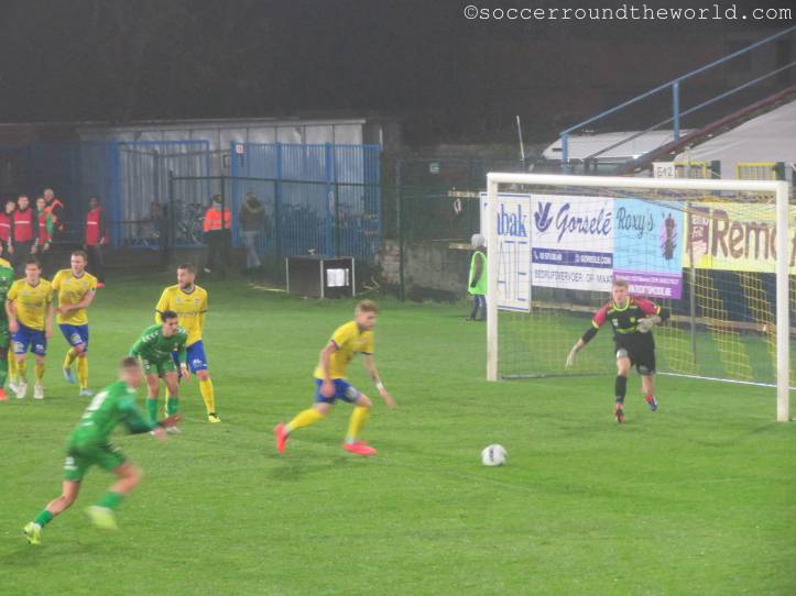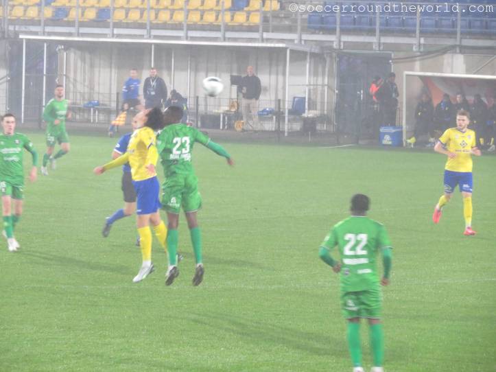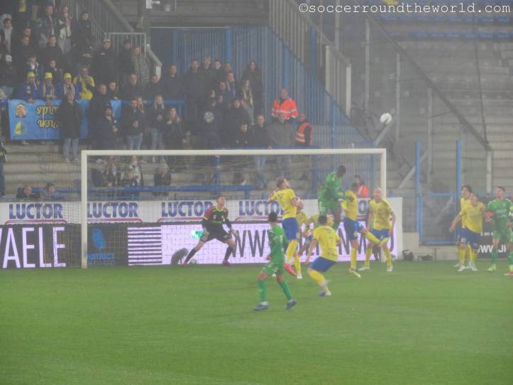 Das Auftreten der in der Tabelle abgeschlagenen Gäste aus dem wallonischen Hennegau ist heute nicht gerade darauf angelegt, diese Ruhe aus dem Gleichgewicht geraten zu lassen. Zwar ist das Spiel ähnlich vogelwild wie gestern: Dem Mittelfeld wird von beiden Mannschaften wenig bis gar keine Aufmerksamkeit geschenkt. Lieber halten sie sich nach langen Pässen gleich direkt am Strafraum auf. Im Gegensatz zu Francs Borains wissen die Blau-Gelben aus Beveren das aber auch entsprechend zu nutzen. Bereits zur Pause führen sie mit 3:0, kurz danach fällt auch noch der Siegtreffer. Erst danach schaltet SK zurück und verwaltet die klare Führung bis zum Schluss.