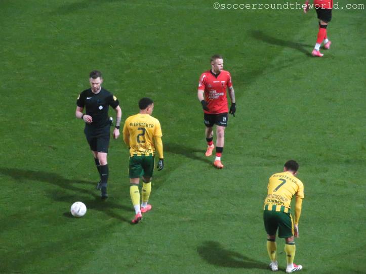Die unterhaltsame Partie heute steht mehr auf des Messers Schneide, als das Ergebnis vermuten lassen würde. Die Gastgeber, bereits ab der 28. Minute mit einem Mann weniger auf dem Platz, schaffen es aber recht gut, immer dann zu treffen, wenn die Gäste gerade in eine Druckphase kommen. So gehen sie bereits nach knapp über einer Viertelstunde in Führung. Und auch das 2:0 fällt in einer eigentlichen Drangperiode von Helmond. Nur der gleich nachgelegte dritte Treffer sorgt dann dafür, dass das späte Anschlusstor ADO nicht mehr unter Zugzwang bringt.