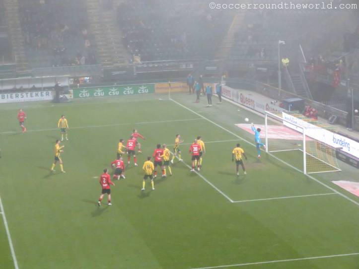 Ursprünglich war hier der Besuch von Sparta geplant. Doch nachdem bereits das Hotel gebucht war, wurde deren Heimspiel noch auf den Sonntag verschoben. Umplanung Nummer 1 spuckte immerhin ADO Den Haag als Möglichkeit aus, deren Spiele in der Vergangenheit oft für Außenstehende de facto nicht zu besuchen waren (Stichwort: Bewegungsfreundliche Niederländer). Die Verspätung gestattete es allerdings nicht, auch noch am selben Tag die Stadt anzuschauen. Ich lege meine Prioritäten also auf den Fußball – zumindest vorerst.