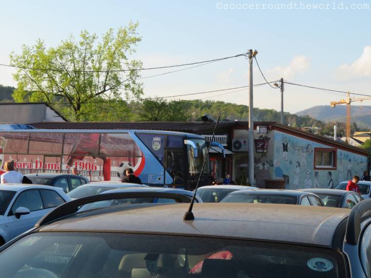 Die Koffer dann also doch noch sicher verstaut, geht es direkt per Taxi weiter zum ersten Spiel des Wochenendes. Kostusija, so erzählt uns der Fahrer, ist dabei Experimentierfeld und Zuchtlabor eines reichen Mannes, der dort seine, bei ihm unter Vertrag stehenden, jungen Spieler parkt, um sie dann lukrativ weiterverkaufen zu können – meist über die Zwischenstation Dinamo Zagreb. Unter anderem soll auch Dani Olmo, mittlerweile beim FC Barcelona, unter seinen Fittichen stehen (Anm.: Nach einiger Recherchehilfe einer Freundin ist nun auch klar, dass es sich dabei um Andy Bara handelt).