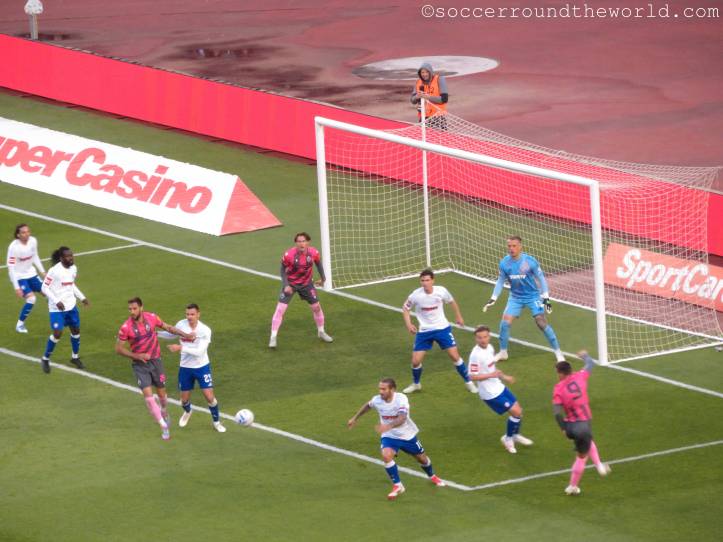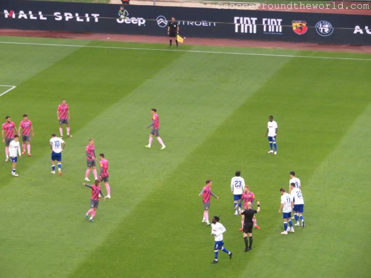 Ob es daran liegt, dass das Match heute an den Gastgebern eher vorbeiläuft, wird wohl nicht mehr zu klären sein. Jedenfalls spielt Split nicht gerade wie jemand, der heuer unbedingt Meister werden will. Wenig Ideen, träger und langsamer Fußball – und den Gästen aus Zagreb eigentlich immer einen Schritt hinterher. Erschwerend hinzu kommt dann auch noch, dass der in Wien geborene Hajduk-Torhüter Ivan Lucic nach einem Handeinsatz außerhalb des Strafraums die Rote Karte sieht. Und das, nachdem Lokomotiva bereits in der Nachspielzeit der ersten Halbzeit mit 1:0 in Führung gegangen war.